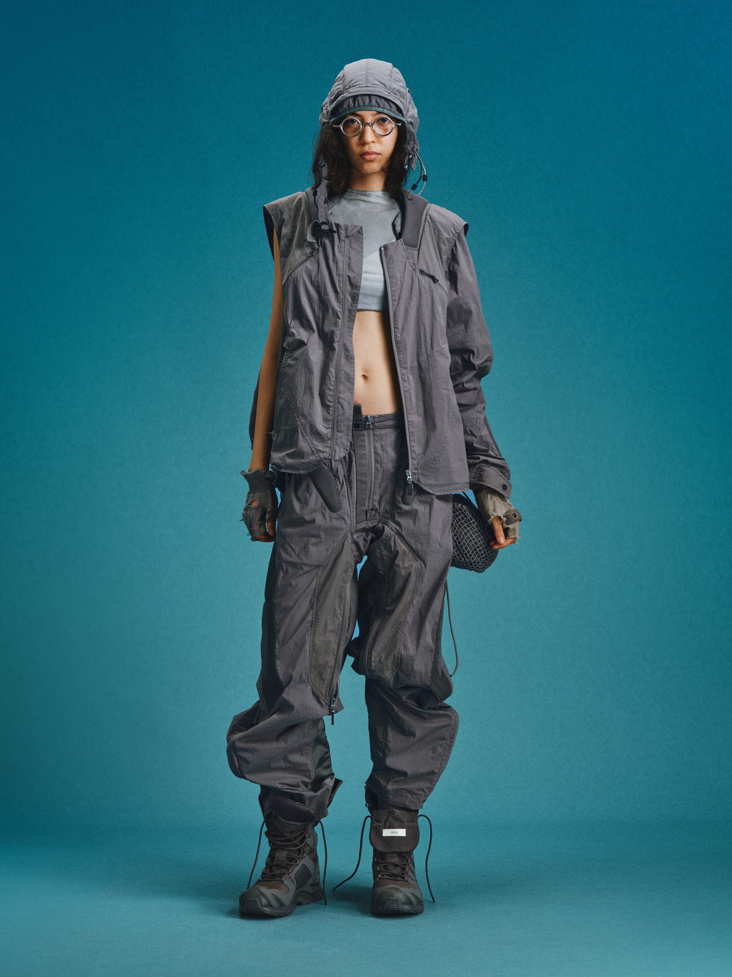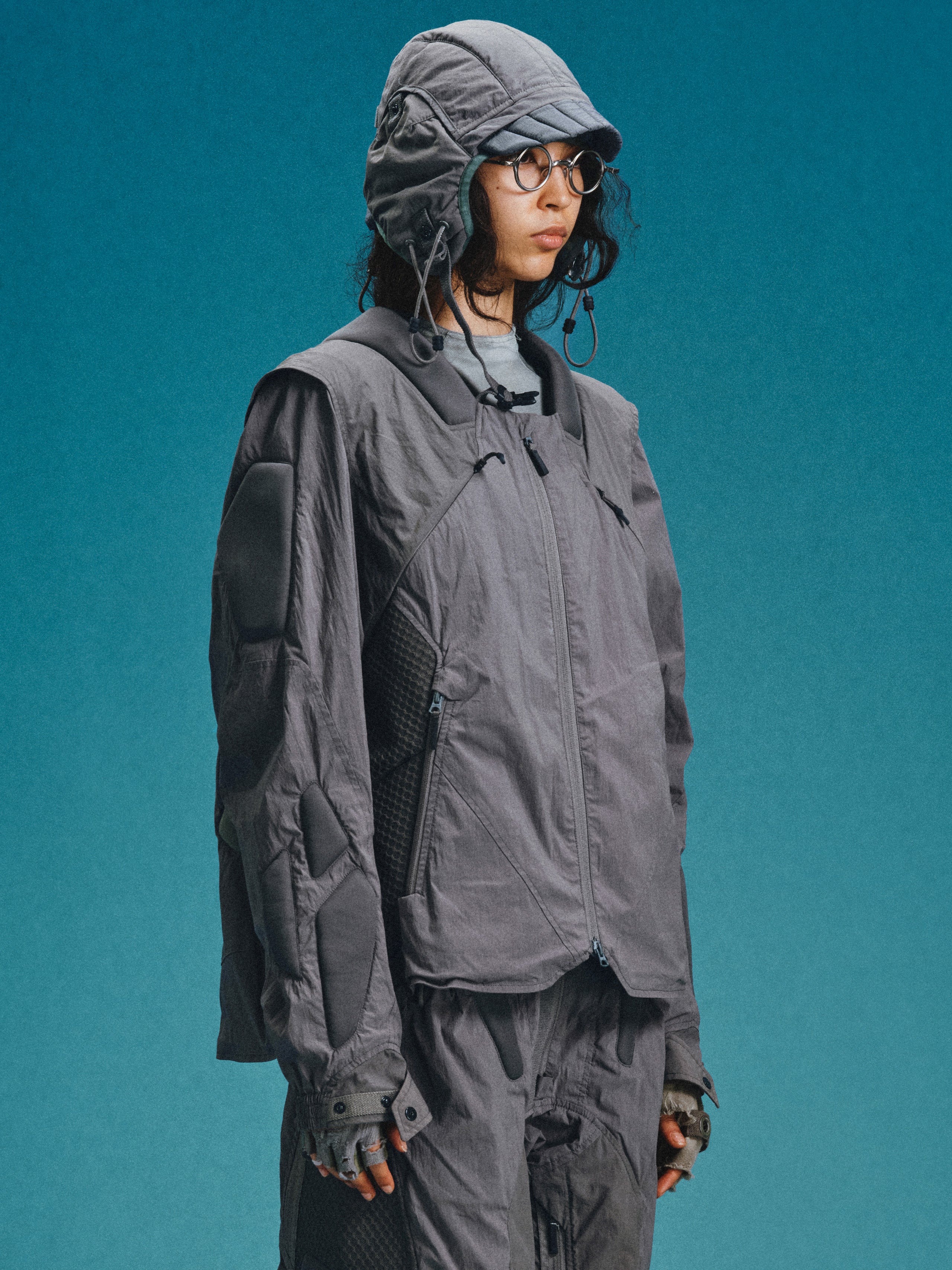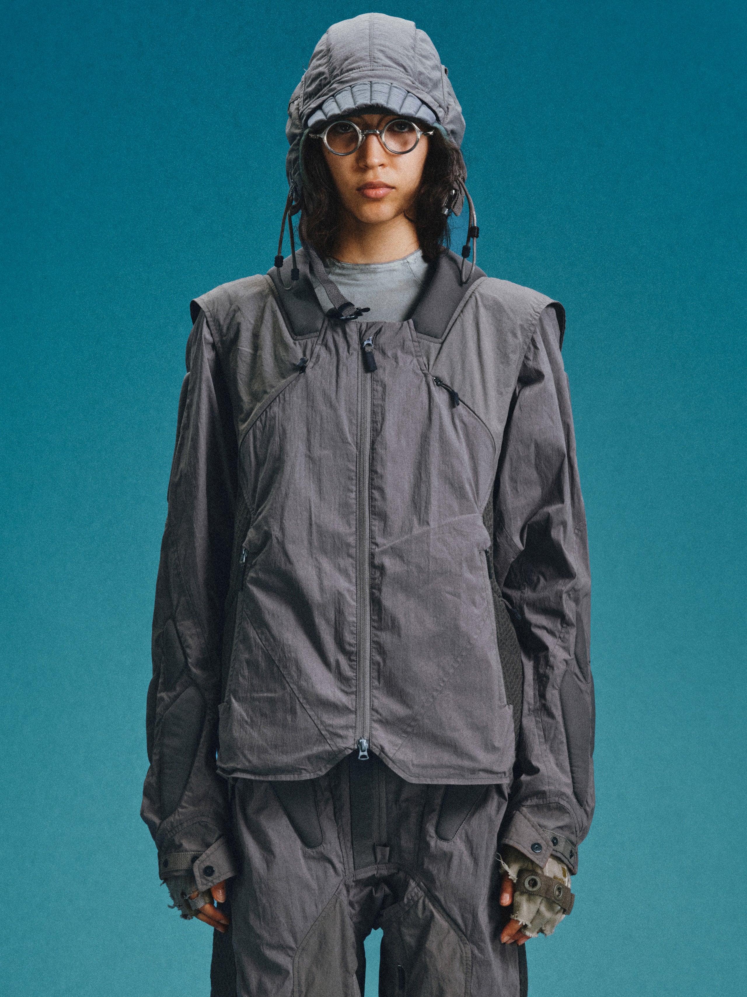 _The detachable long sleeves is connected to the clip ring via a zipper, allowing for style interchange between long-sleeve jacket and sleeveless vest to adapt to different environments.