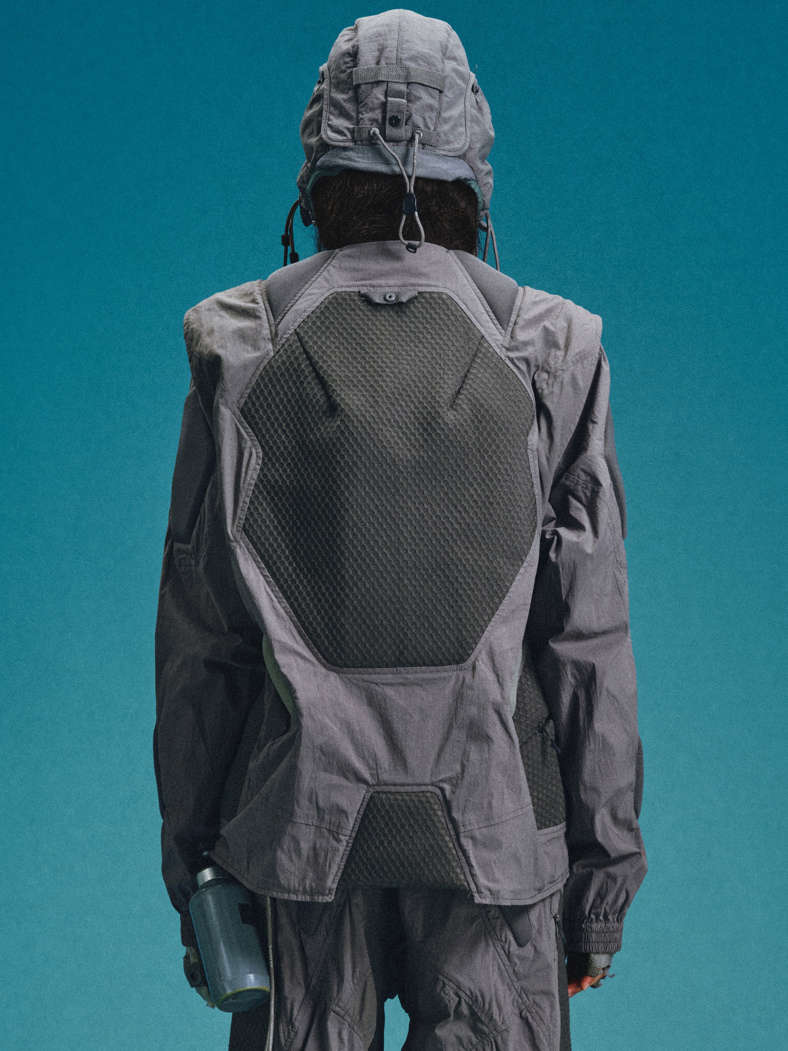 _Multiform tactical modular system converts between vest and jacket to adapt to various environmental conditions.