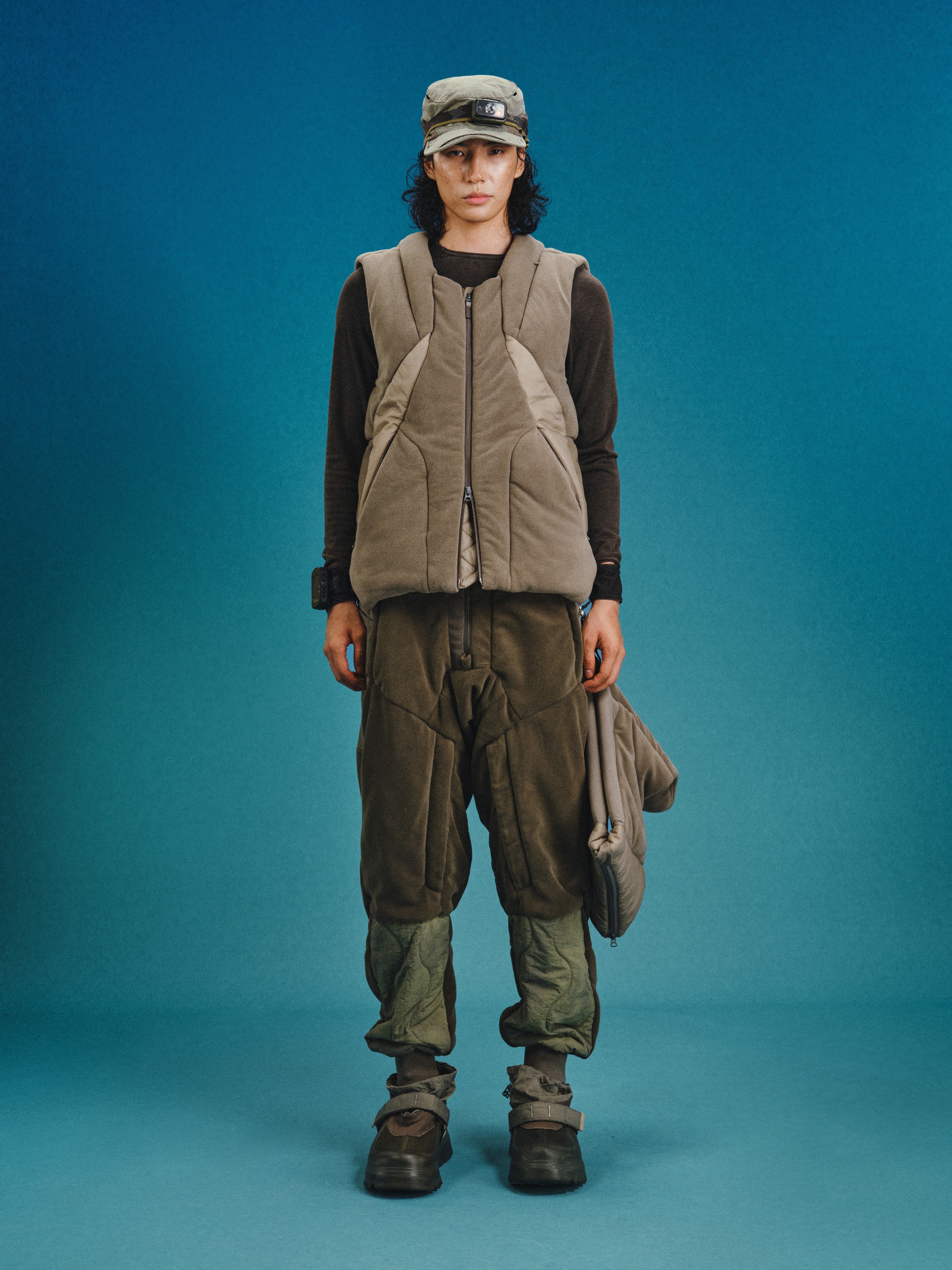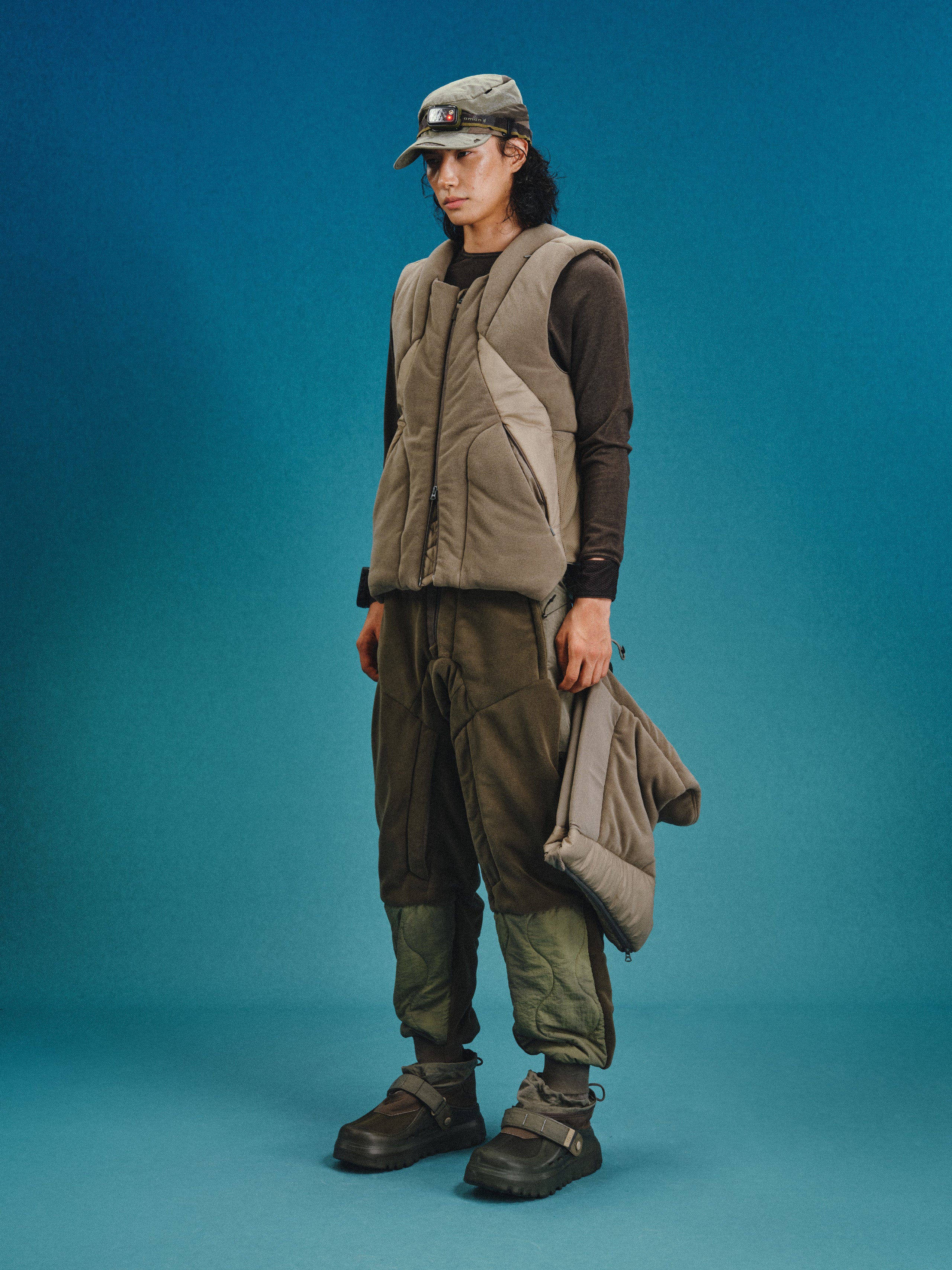 _Suede fabric panels with calabash cotton padding and quilted THERMOLITE® Micro insulation.