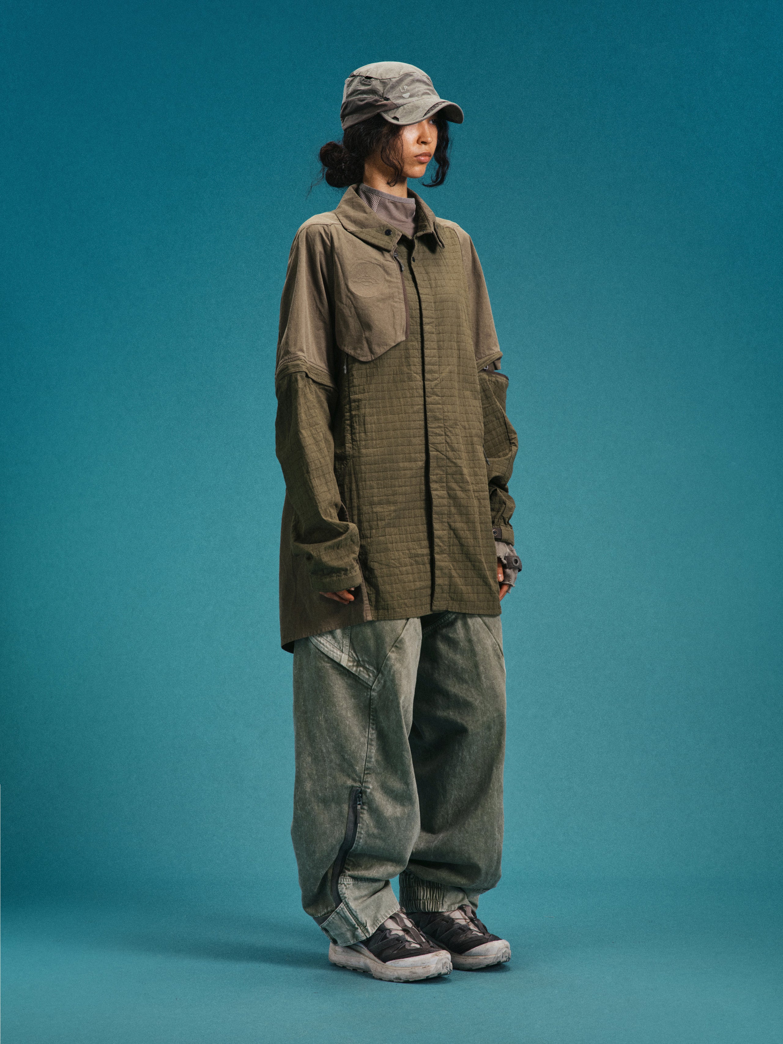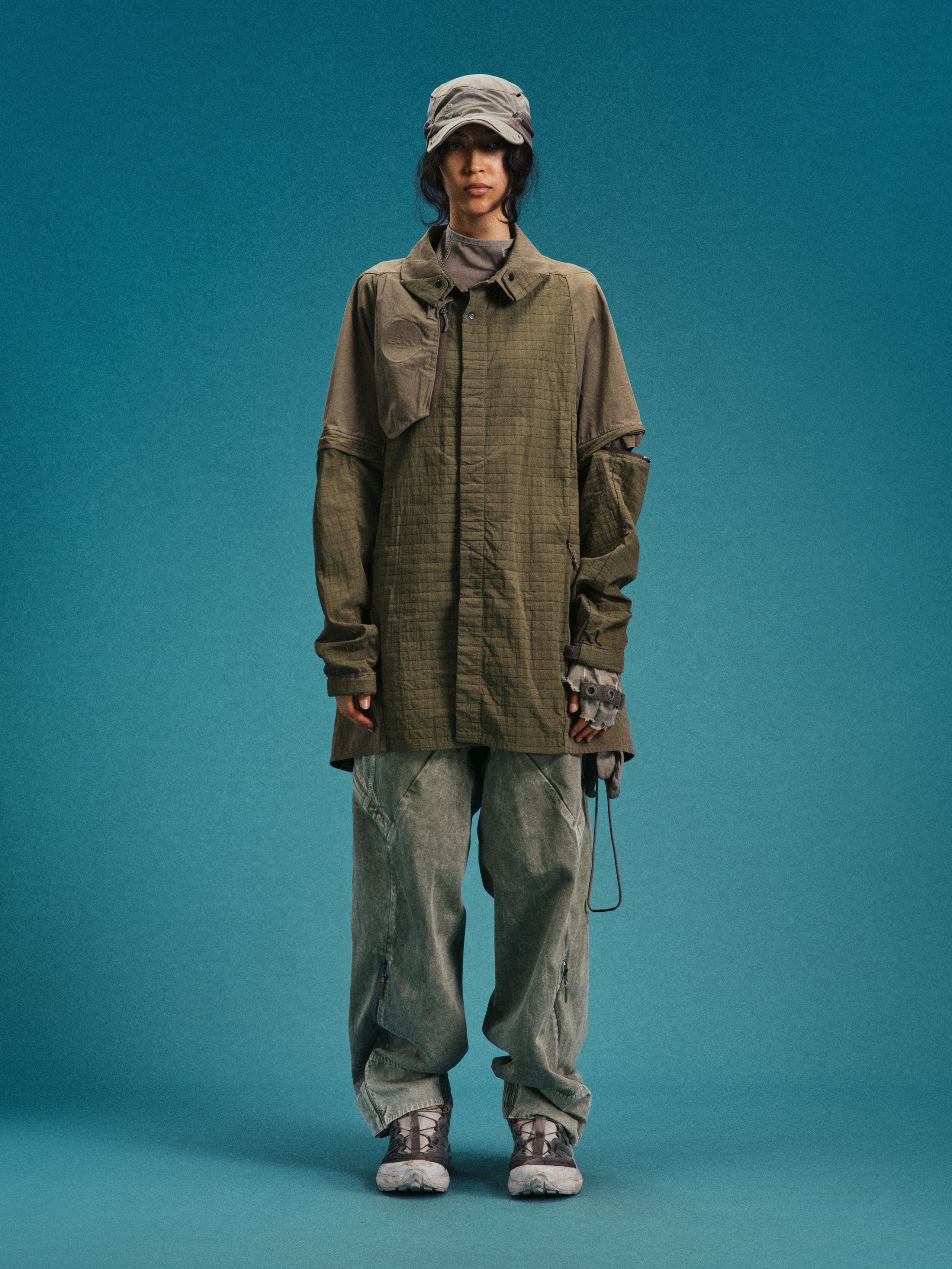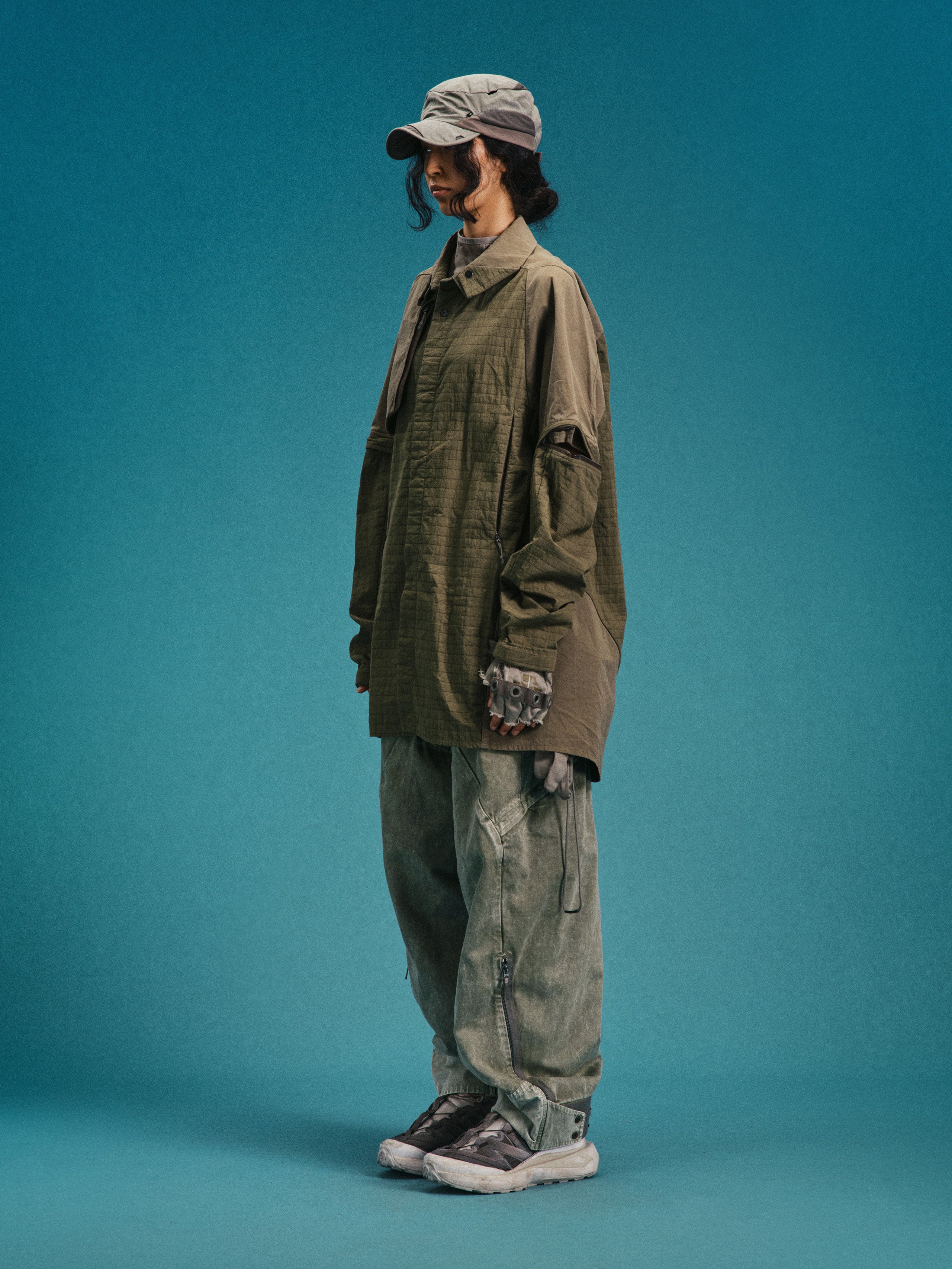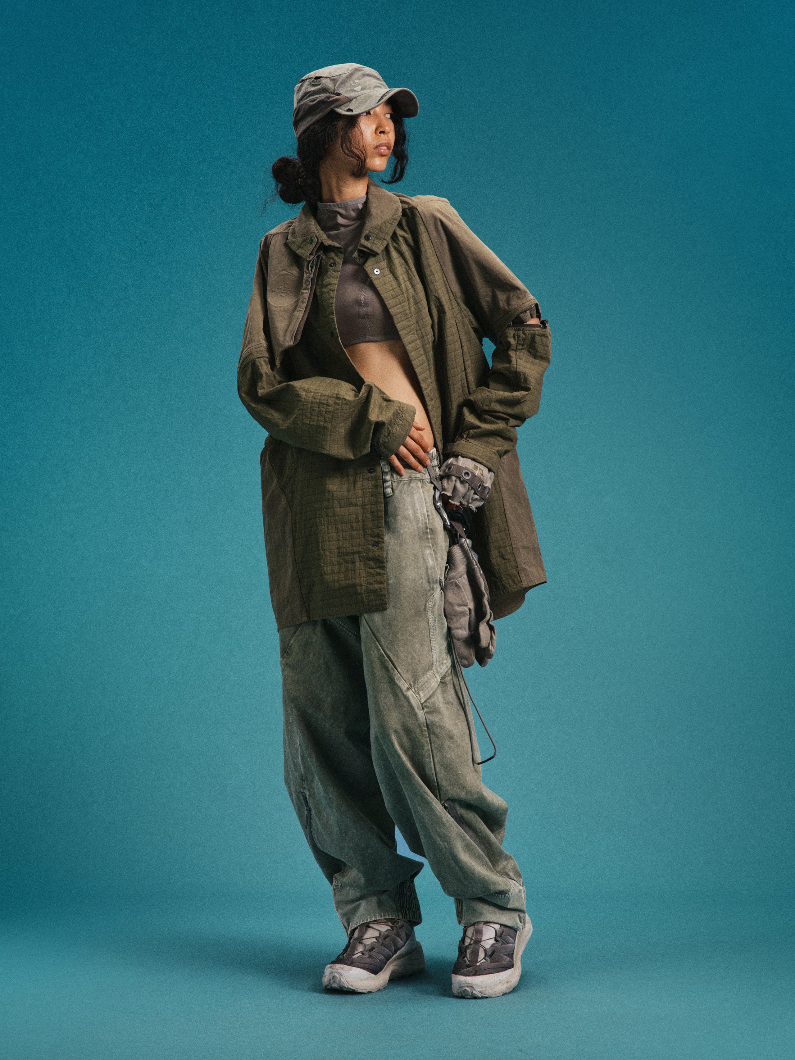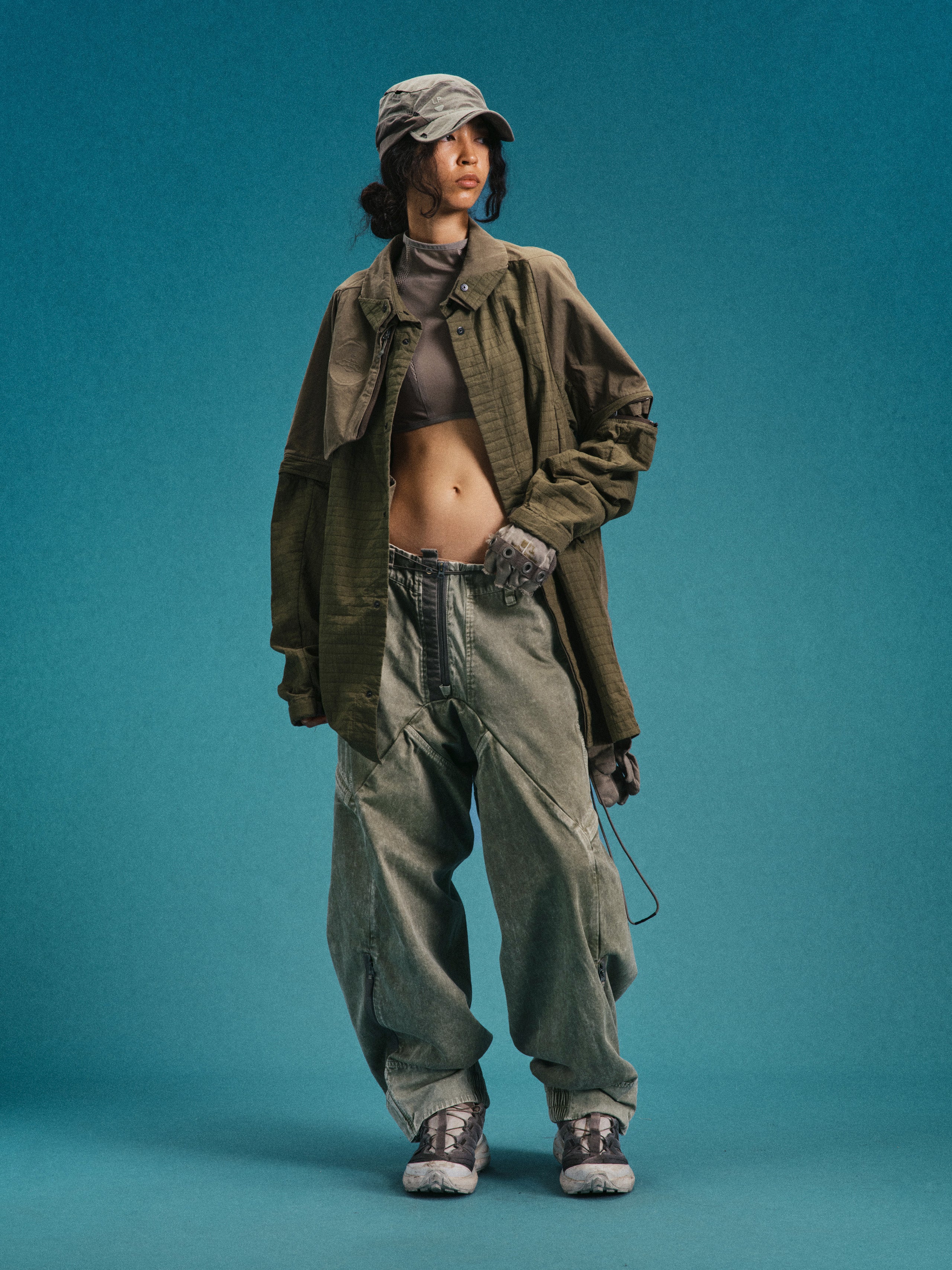 _Foot openings features zipper opening to expand cuff circumference, with snap-secured flaps for tapering the leg cuffs.