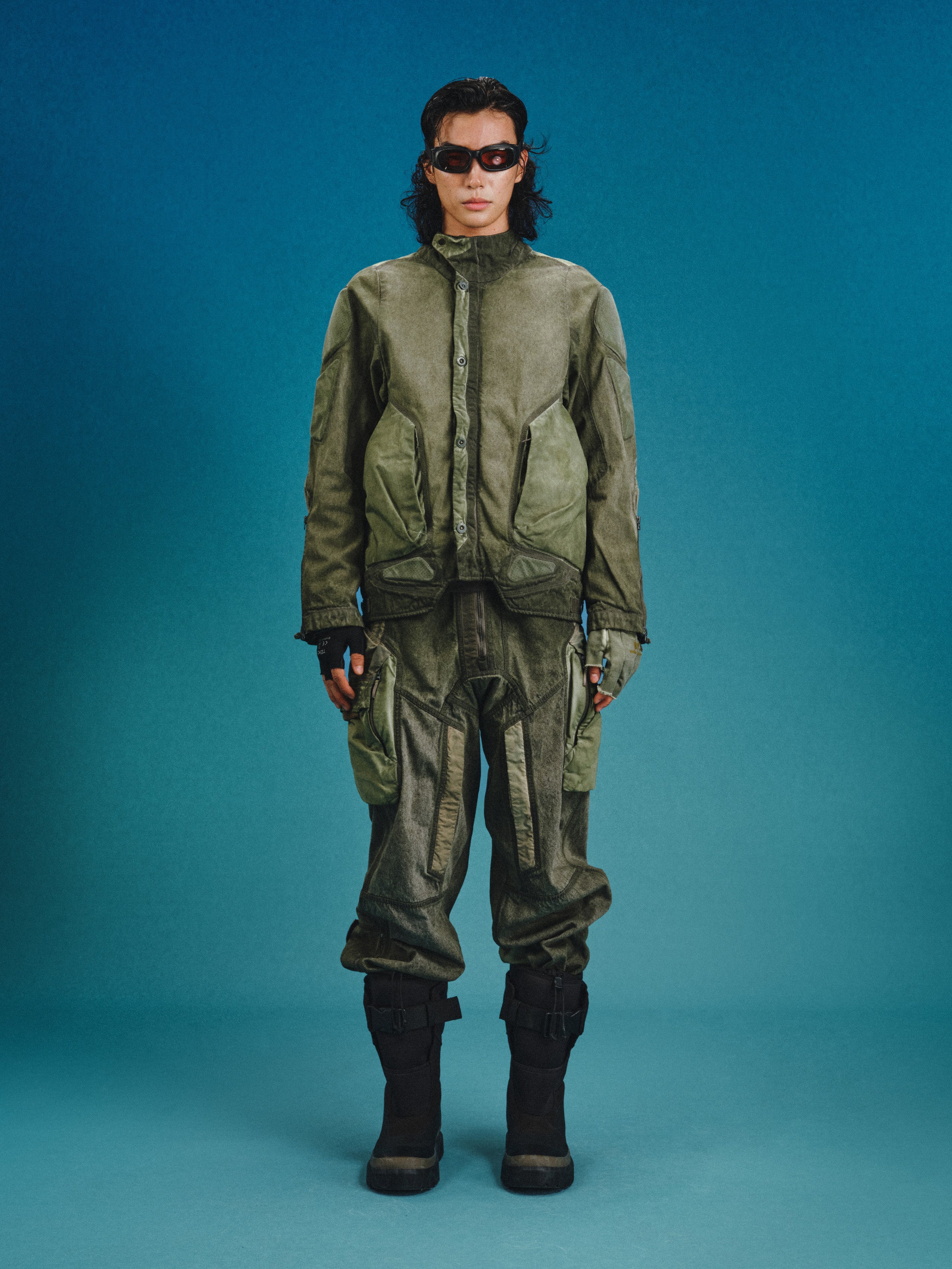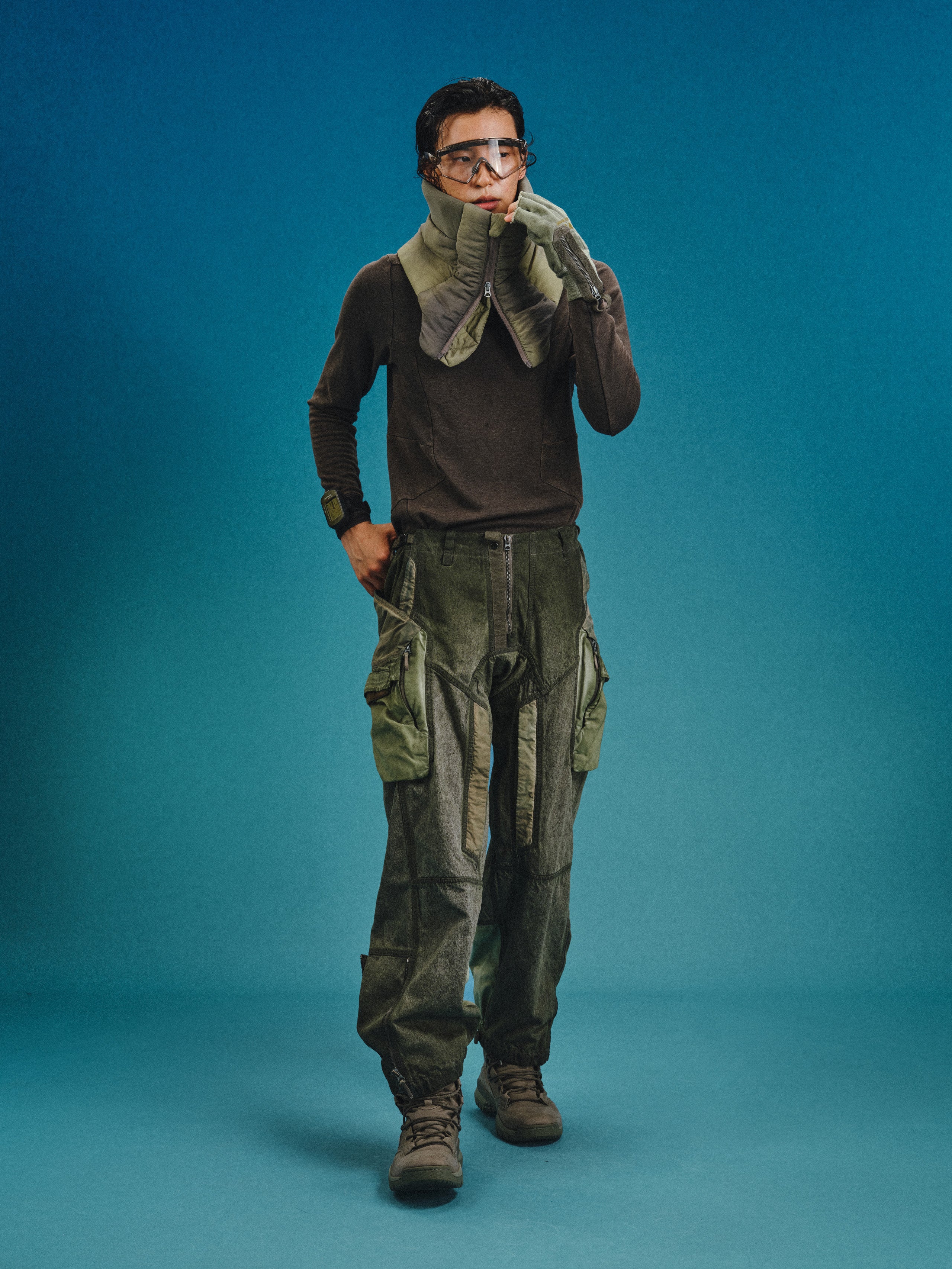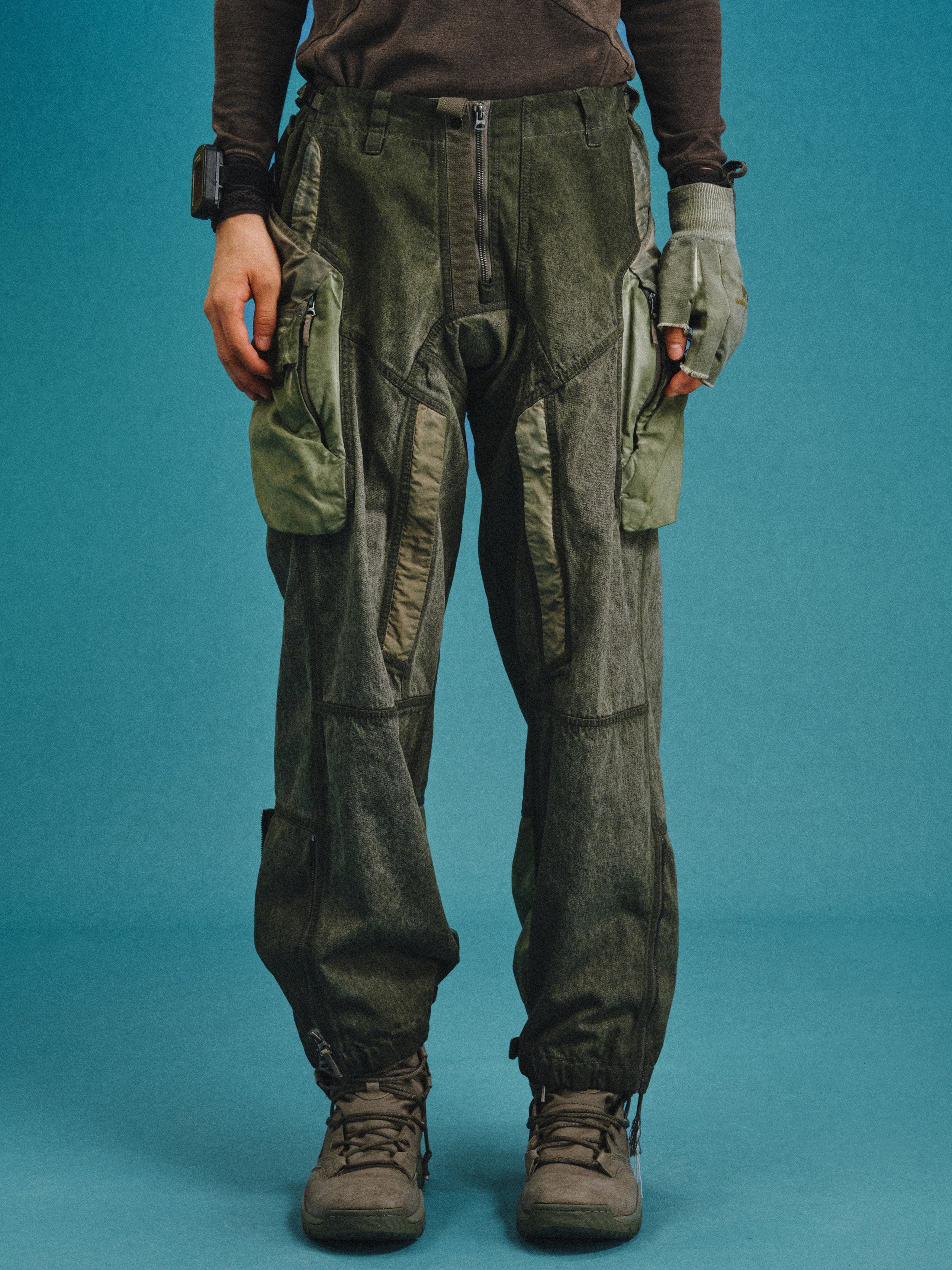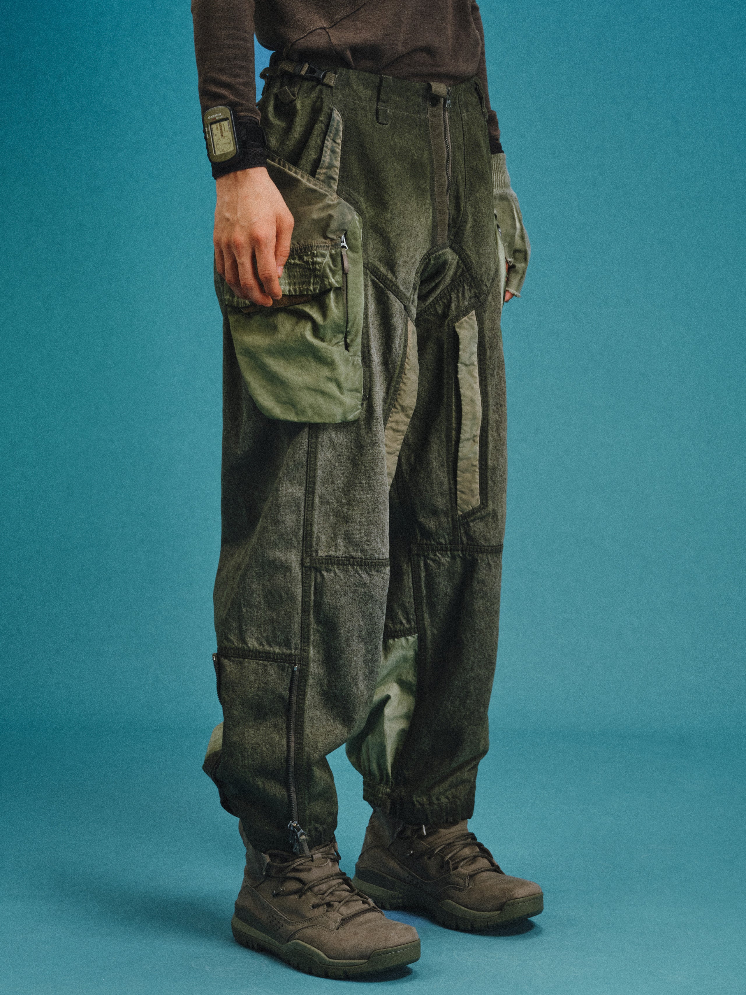 _Cargo pocket panel on each thigh, featuring a stacked configuration of hook-and-loop flap cargo pocket above vertical zippered pocket.