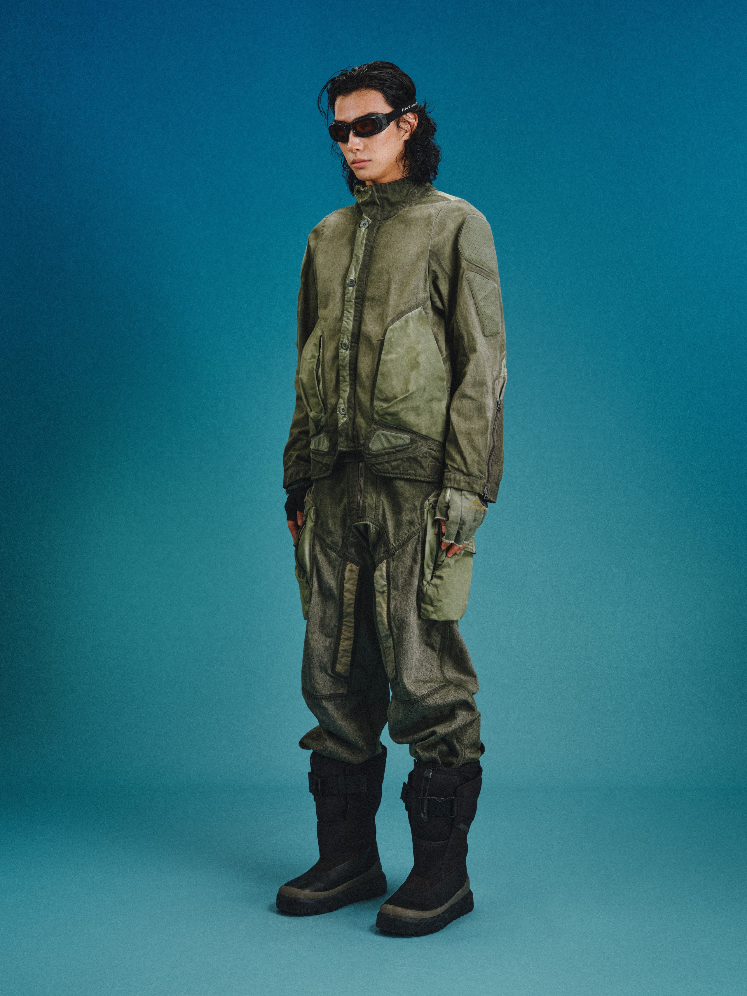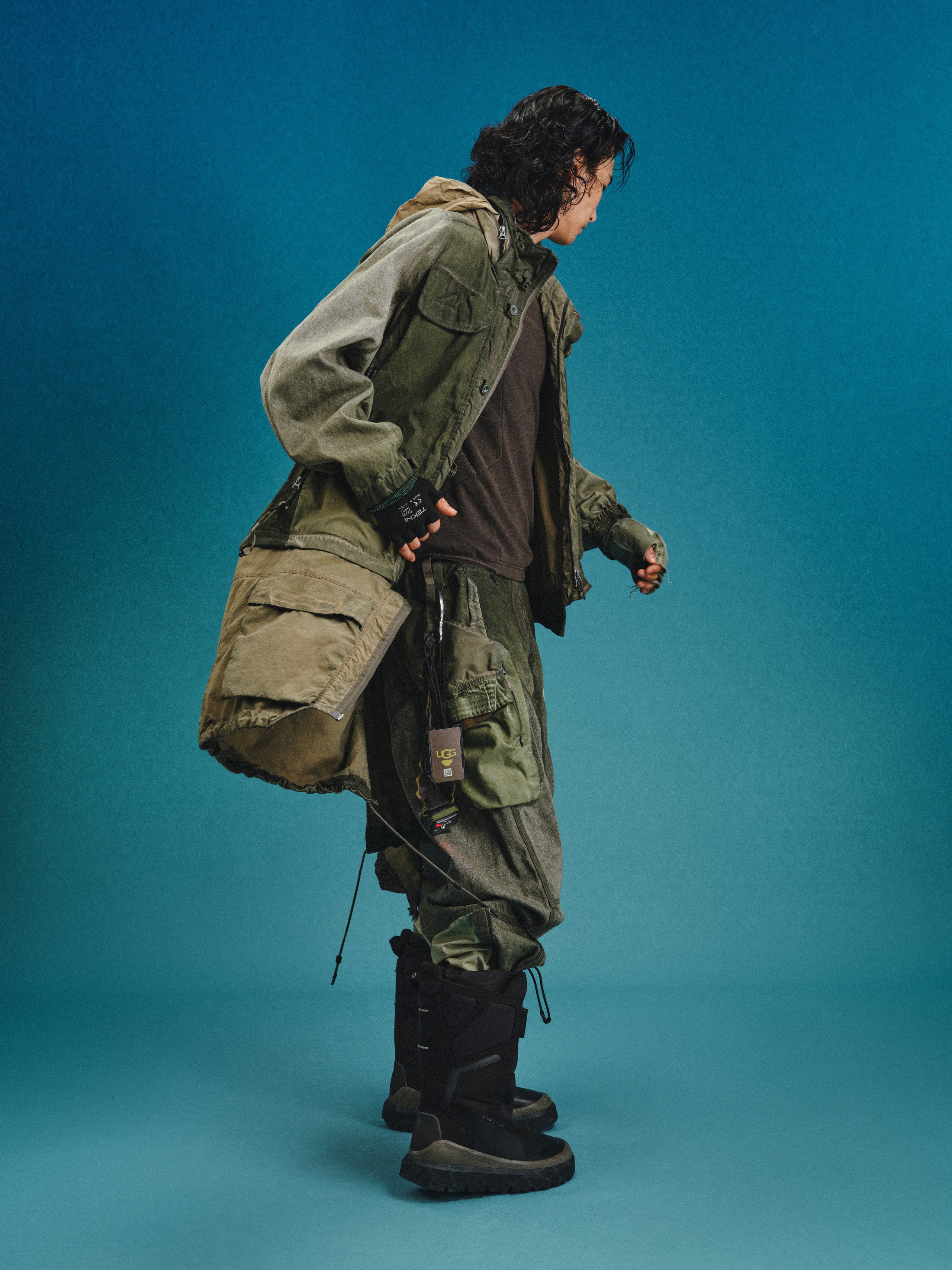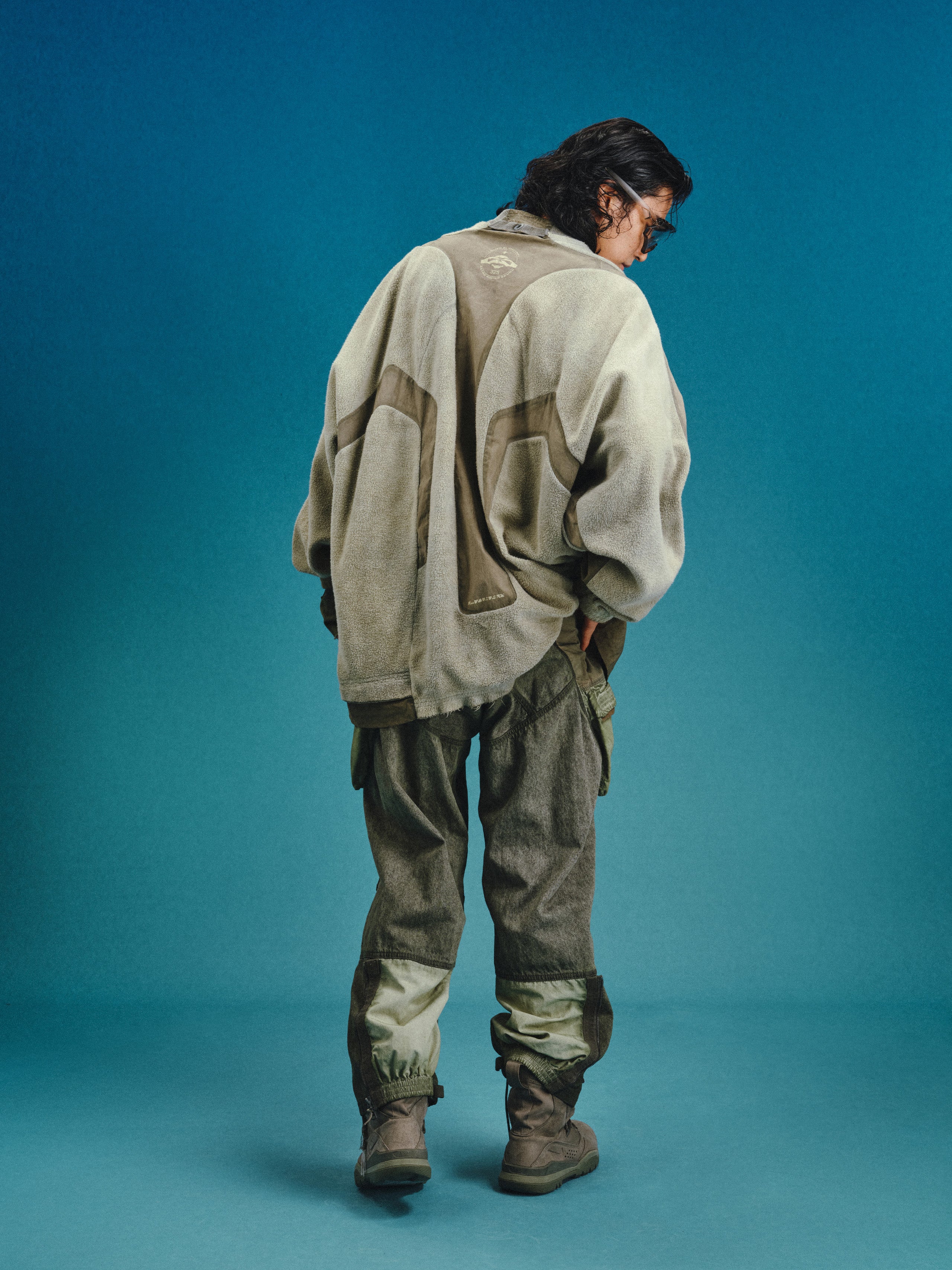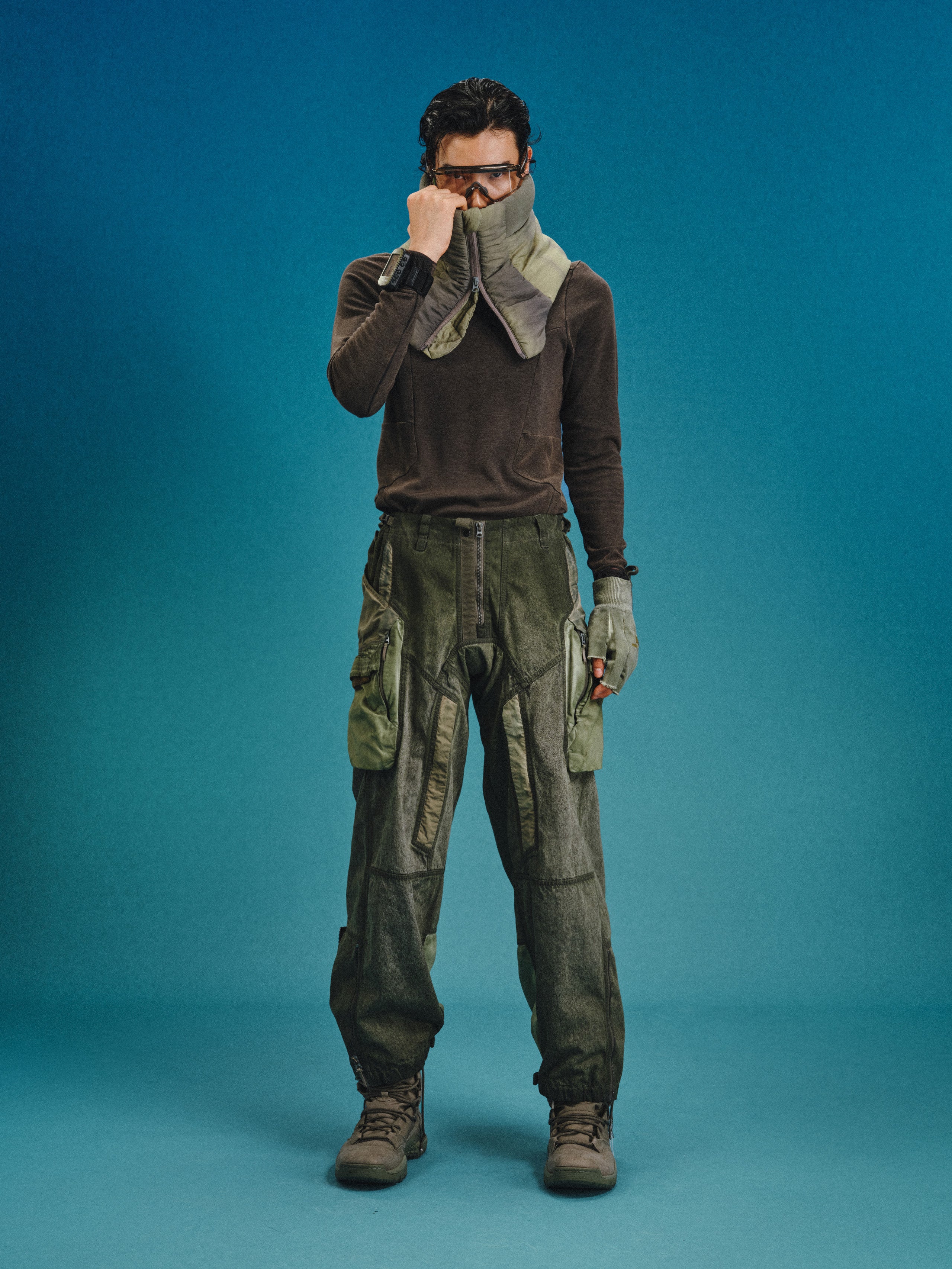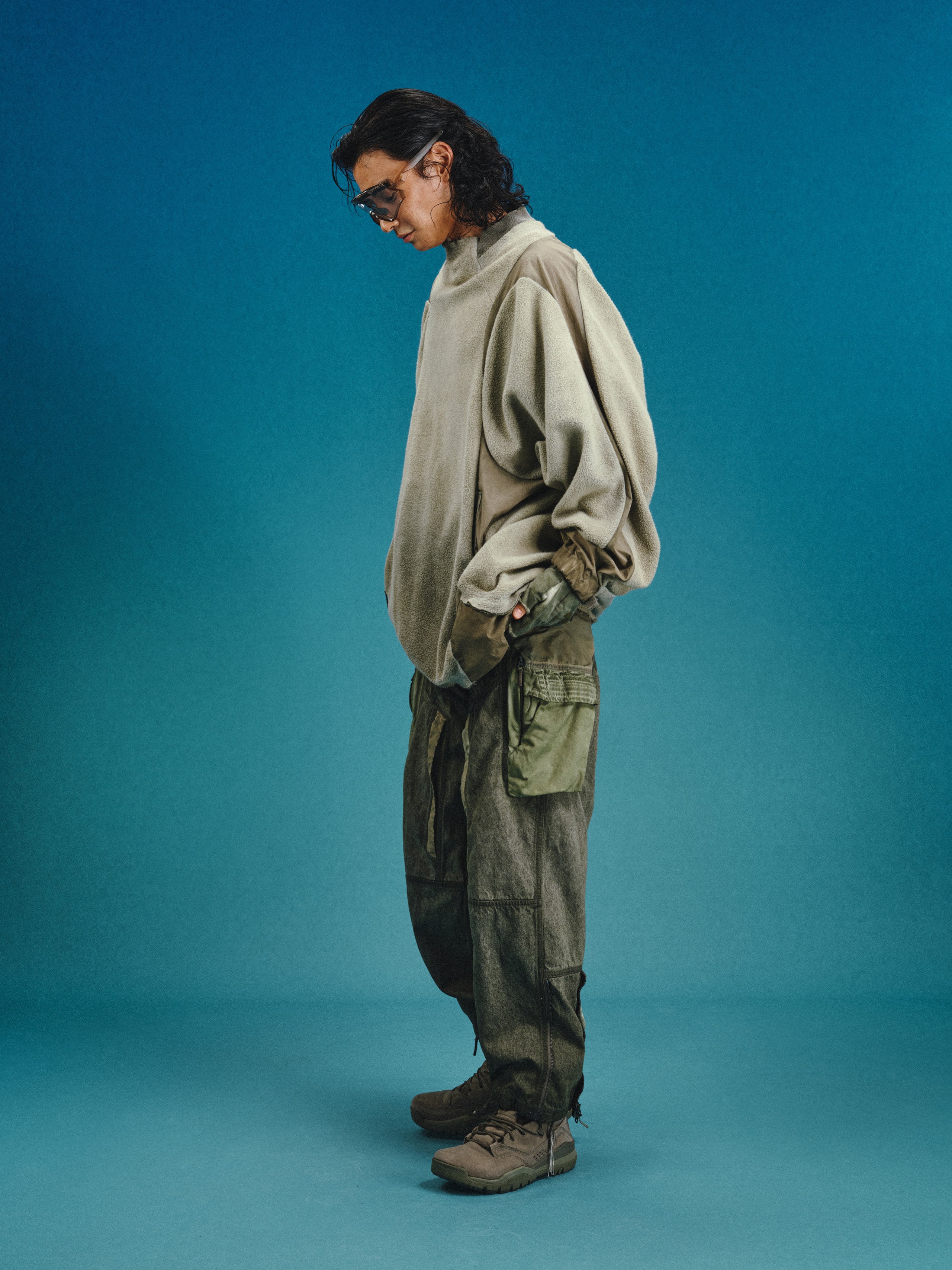 _Cargo pocket panel on each thigh, featuring a stacked configuration of hook-and-loop flap cargo pocket above vertical zippered pocket.