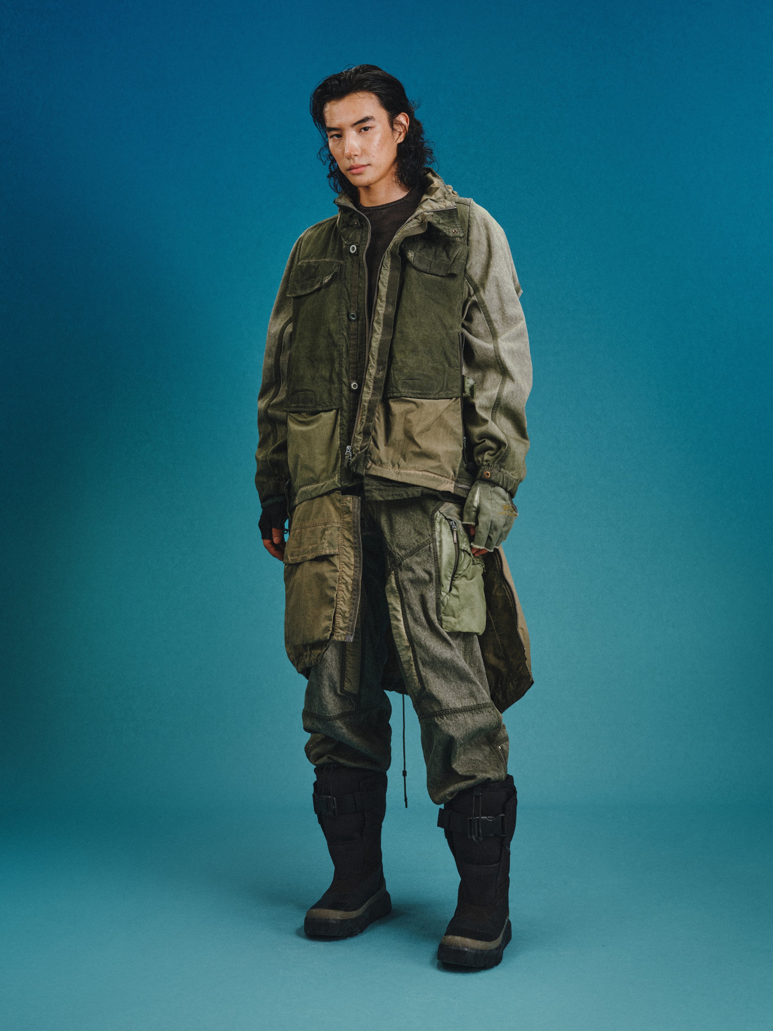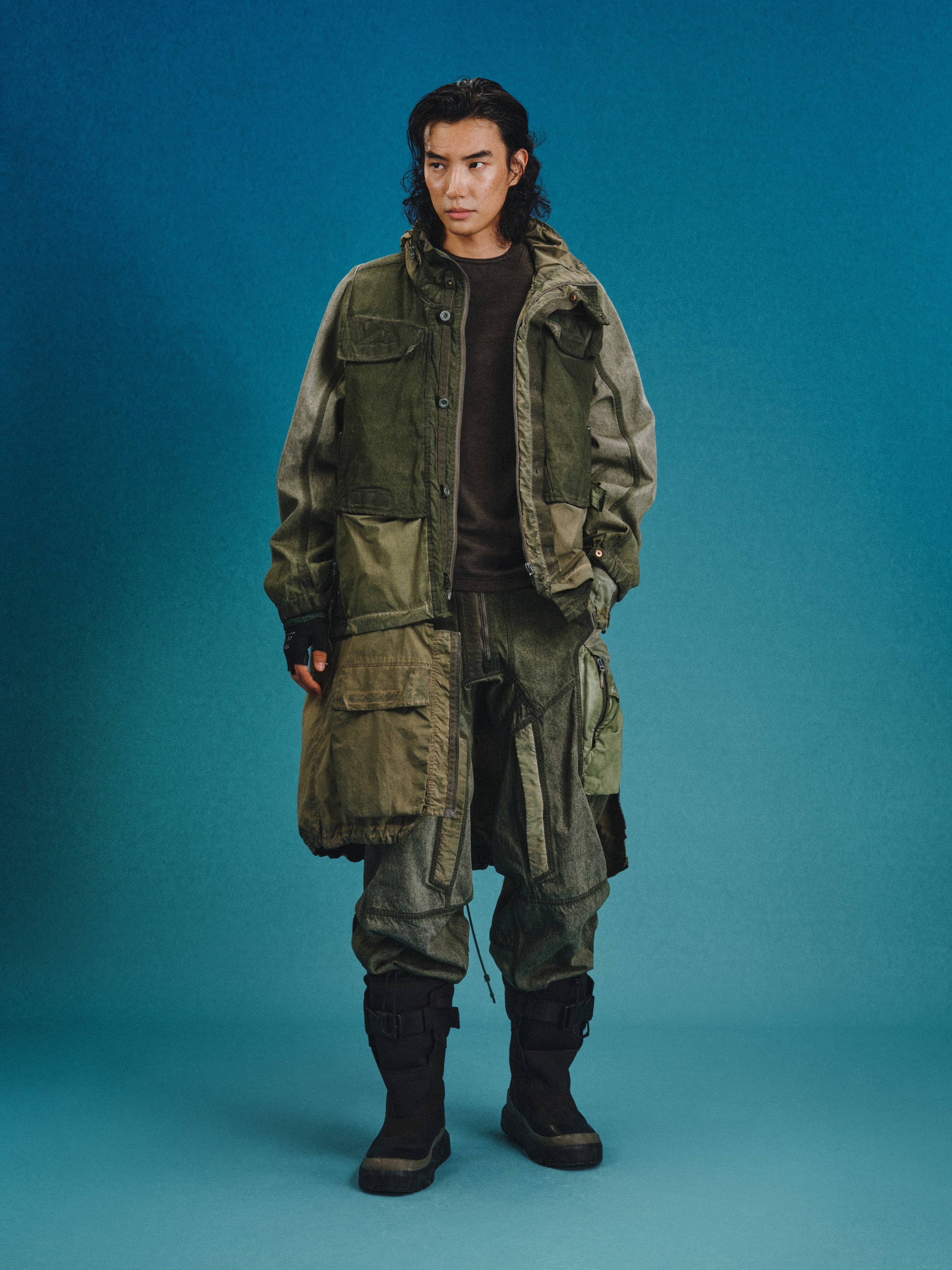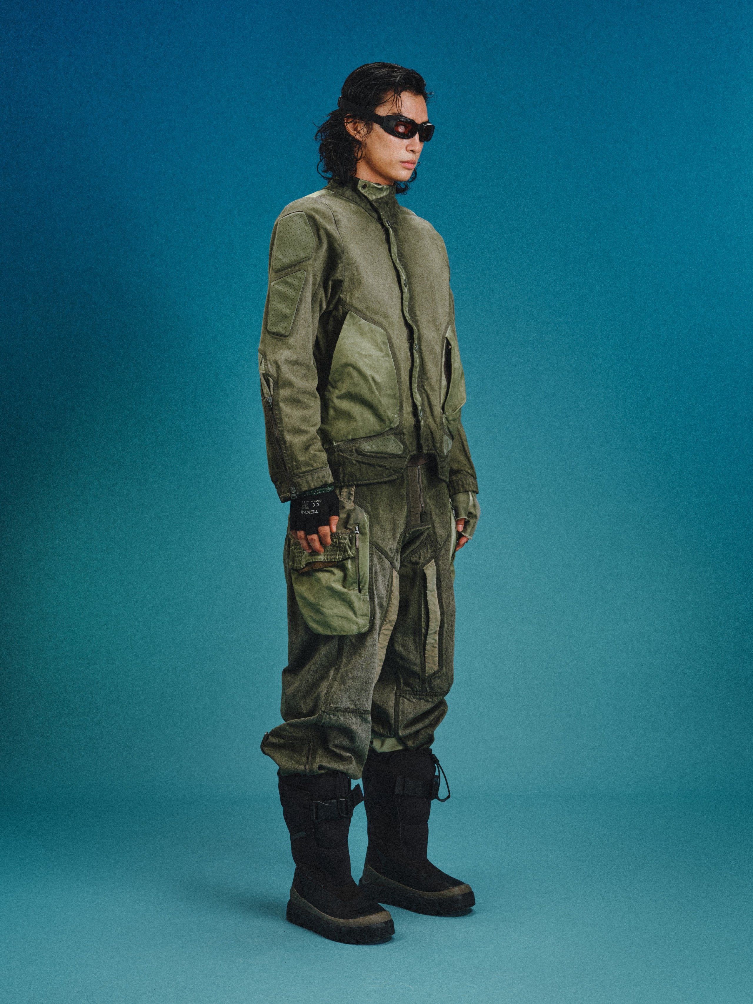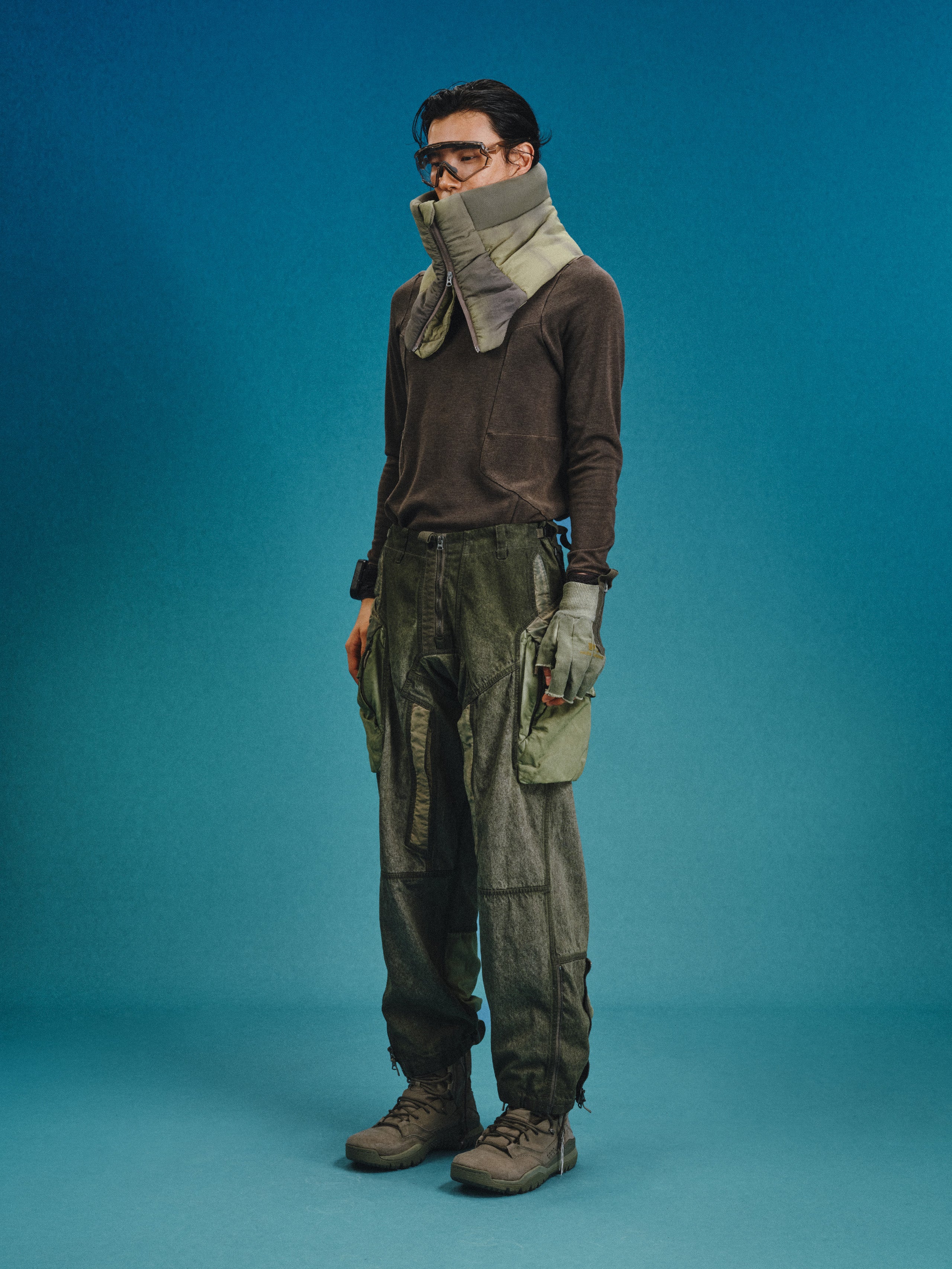 _Cargo pocket panel on each thigh, featuring a stacked configuration of hook-and-loop flap cargo pocket above vertical zippered pocket.