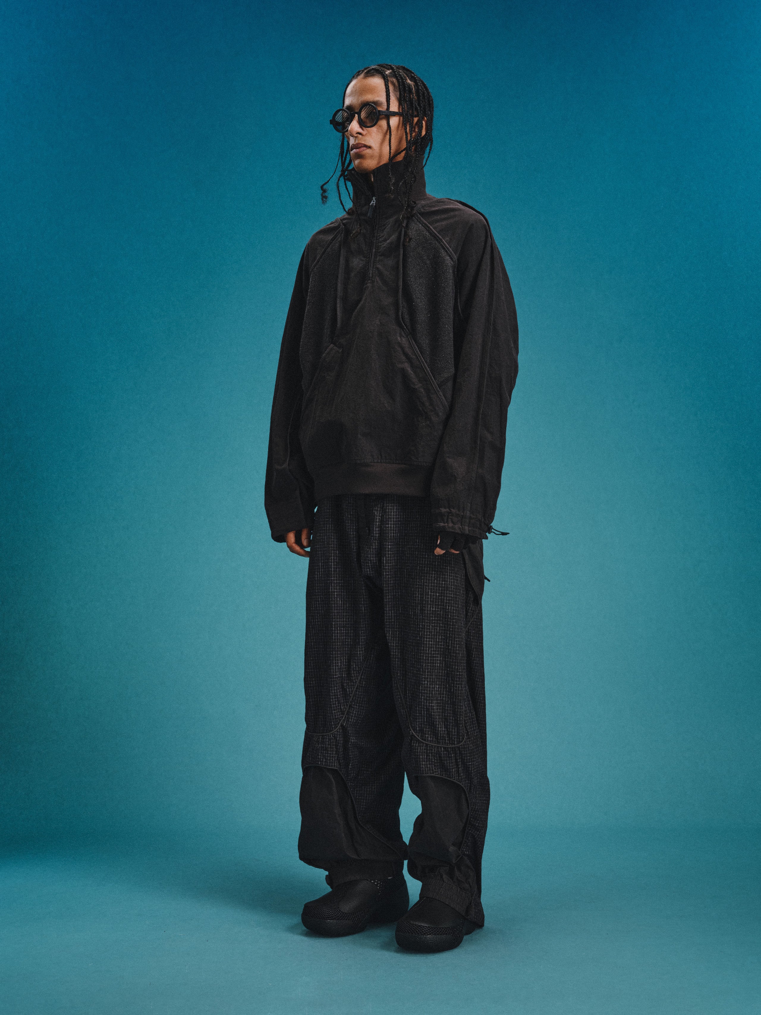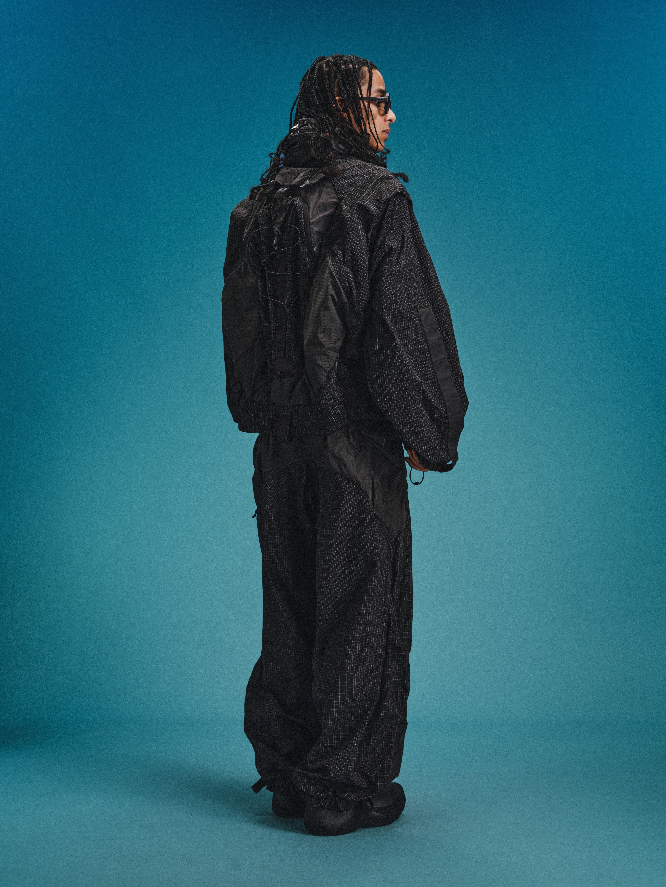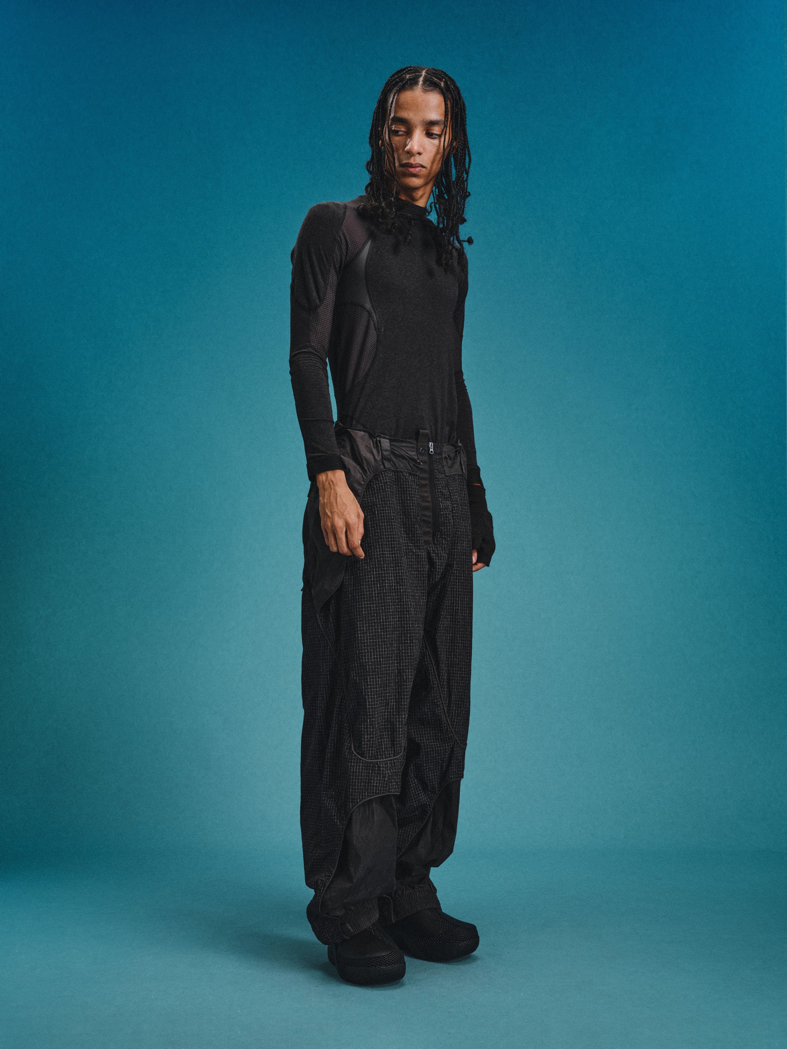 _Invisible zippered expandable structures on the inner and outer thighs, lined with high-density elastic mesh, suitable for ventilation and versatile styling.