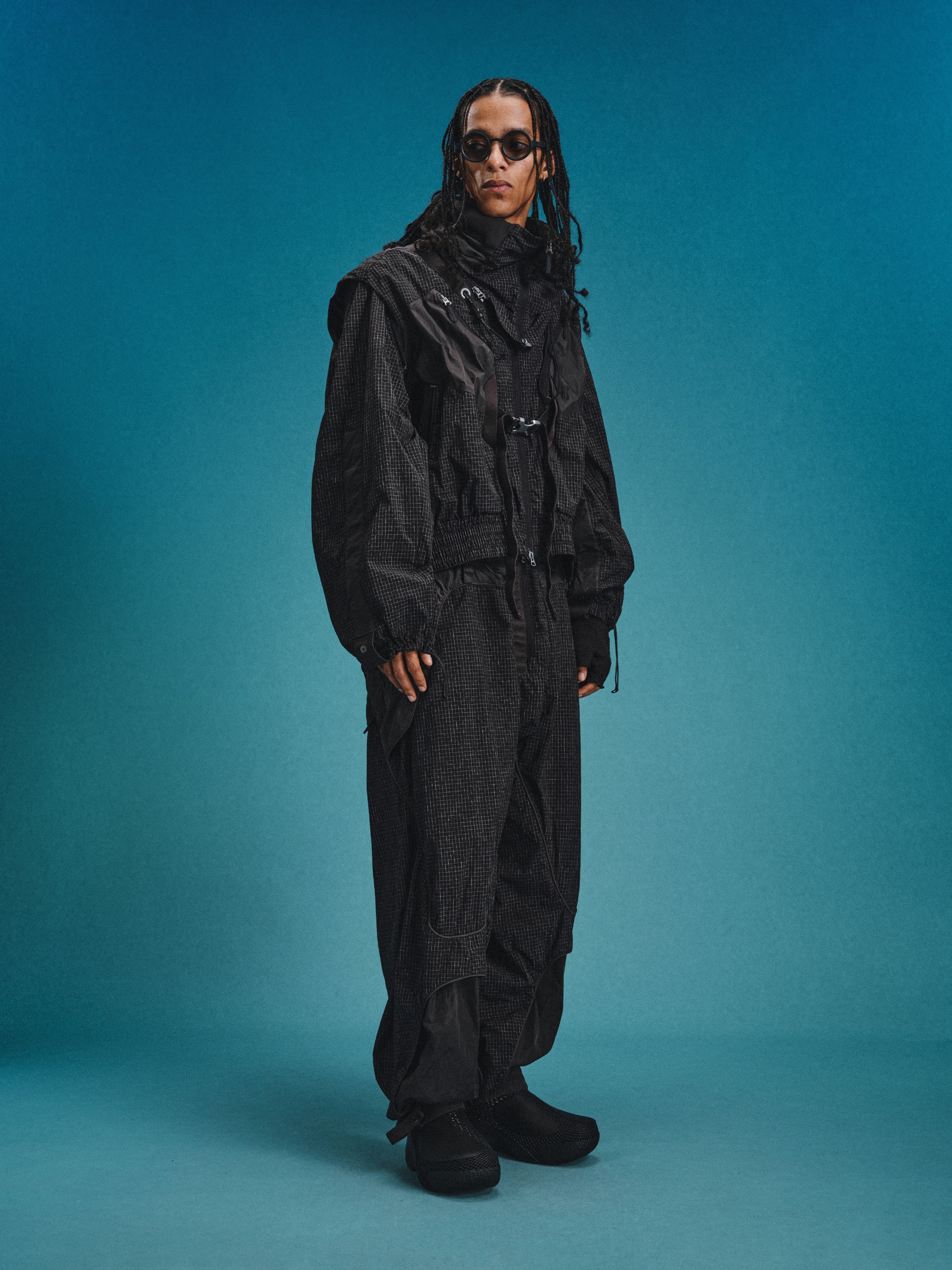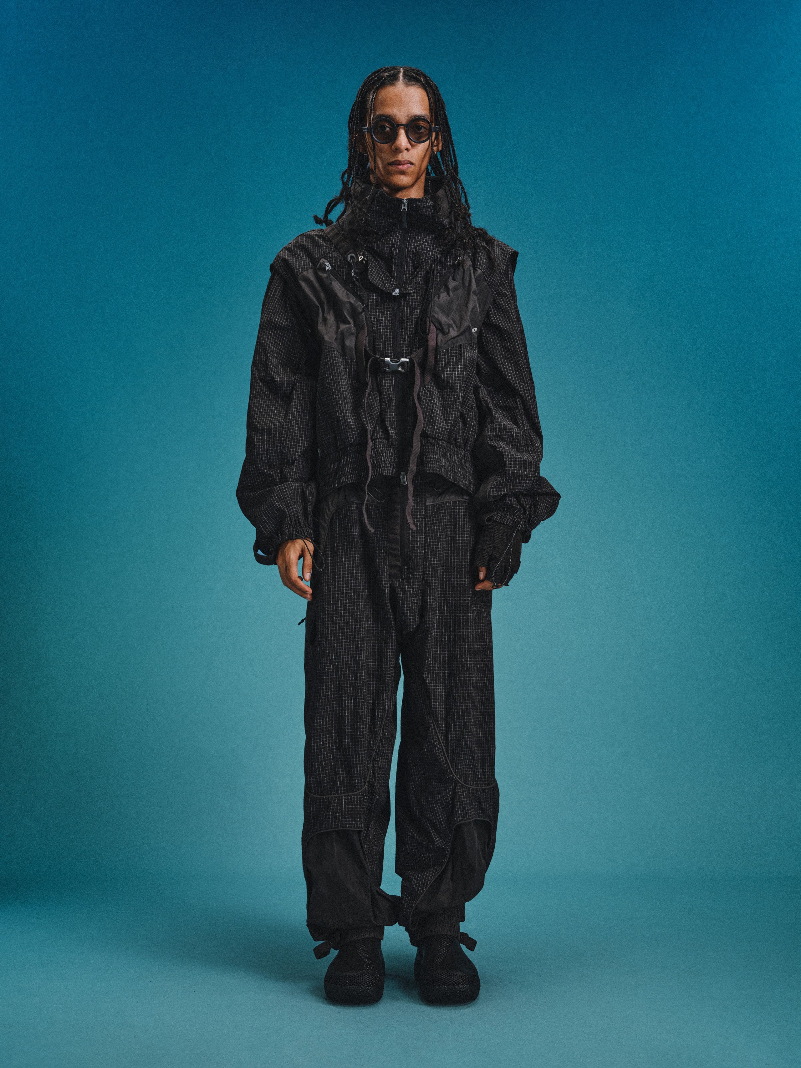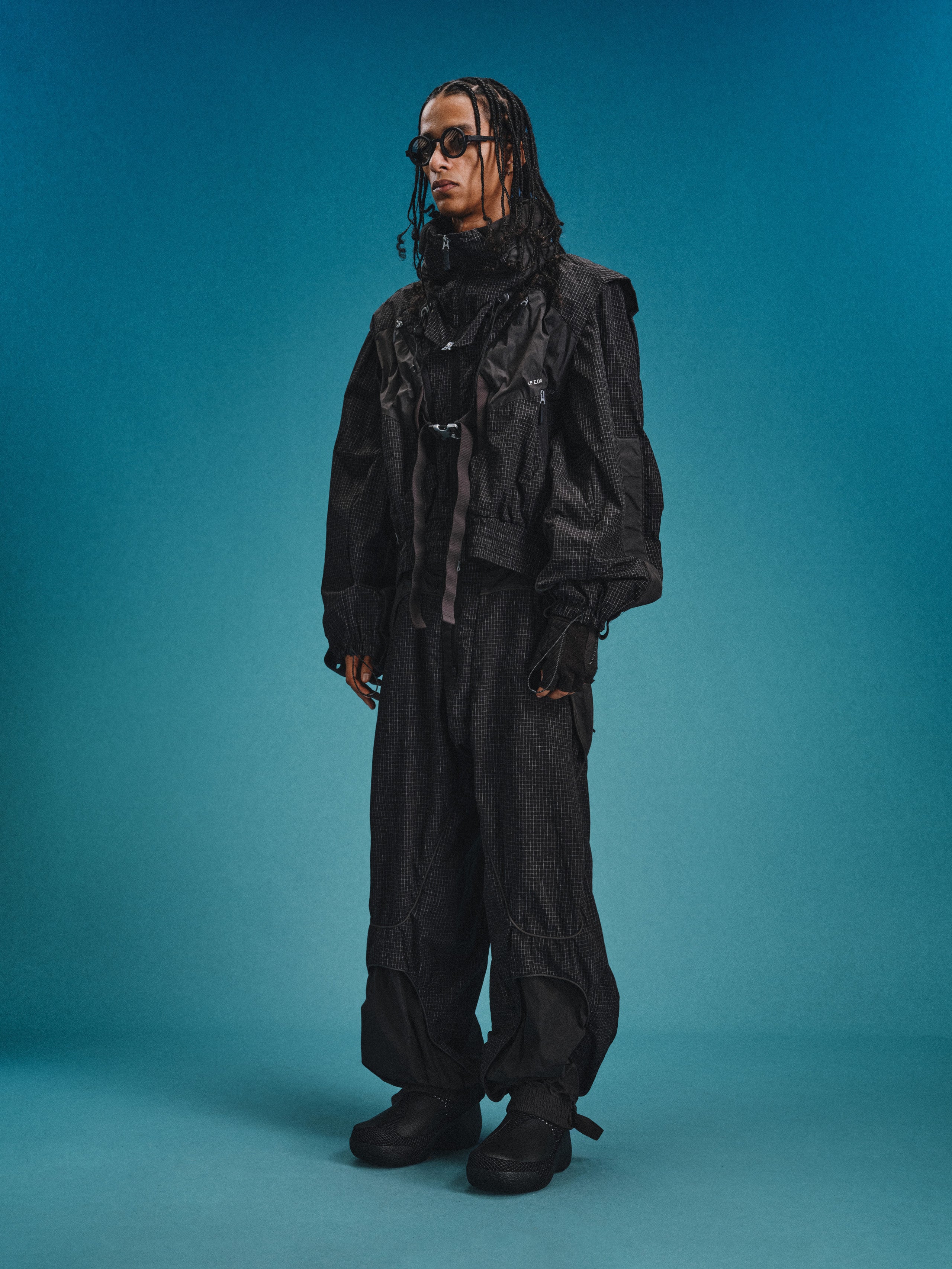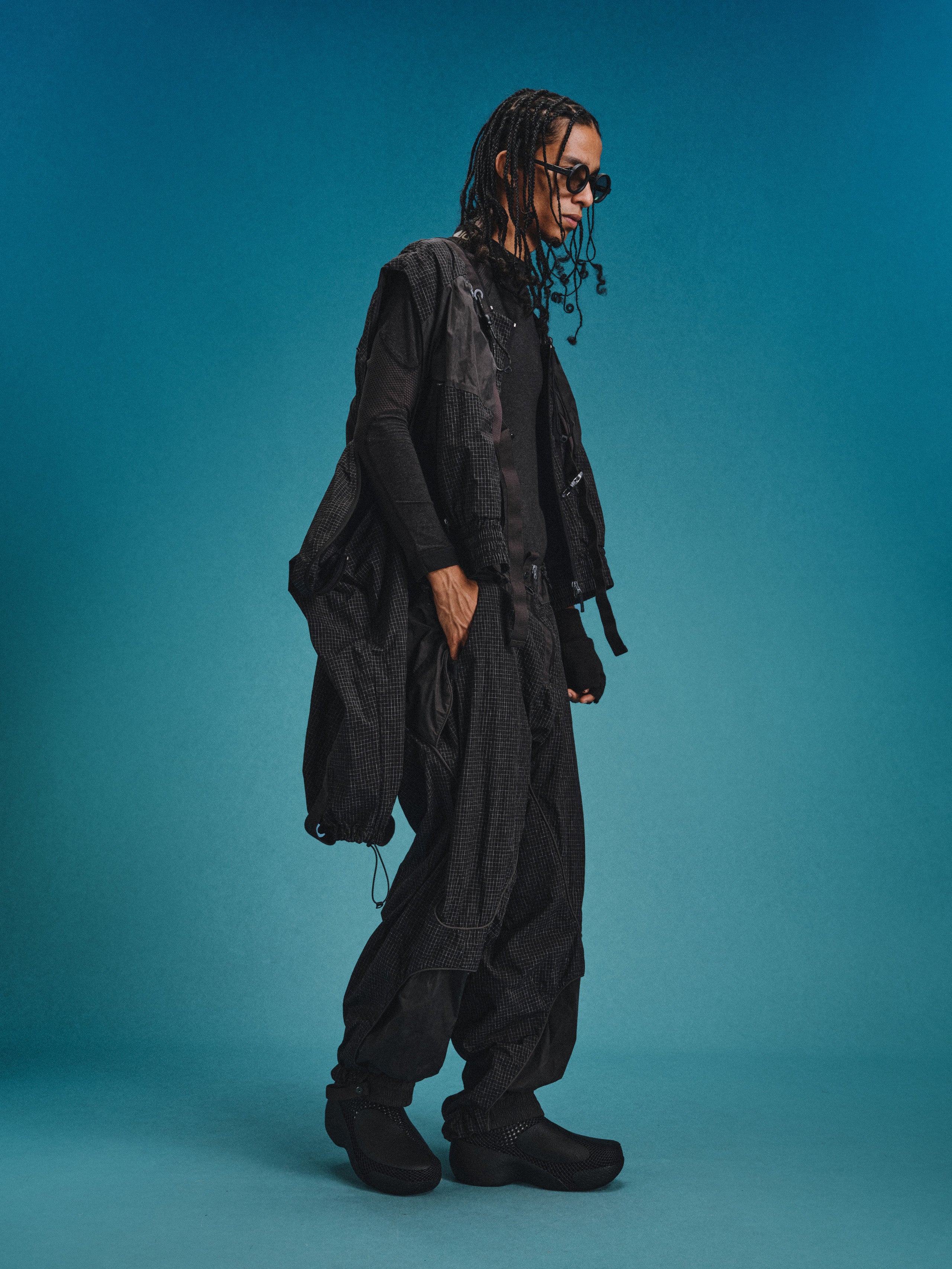 _Invisible zippered expandable structures on the inner and outer thighs, lined with high-density elastic mesh, suitable for ventilation and versatile styling.