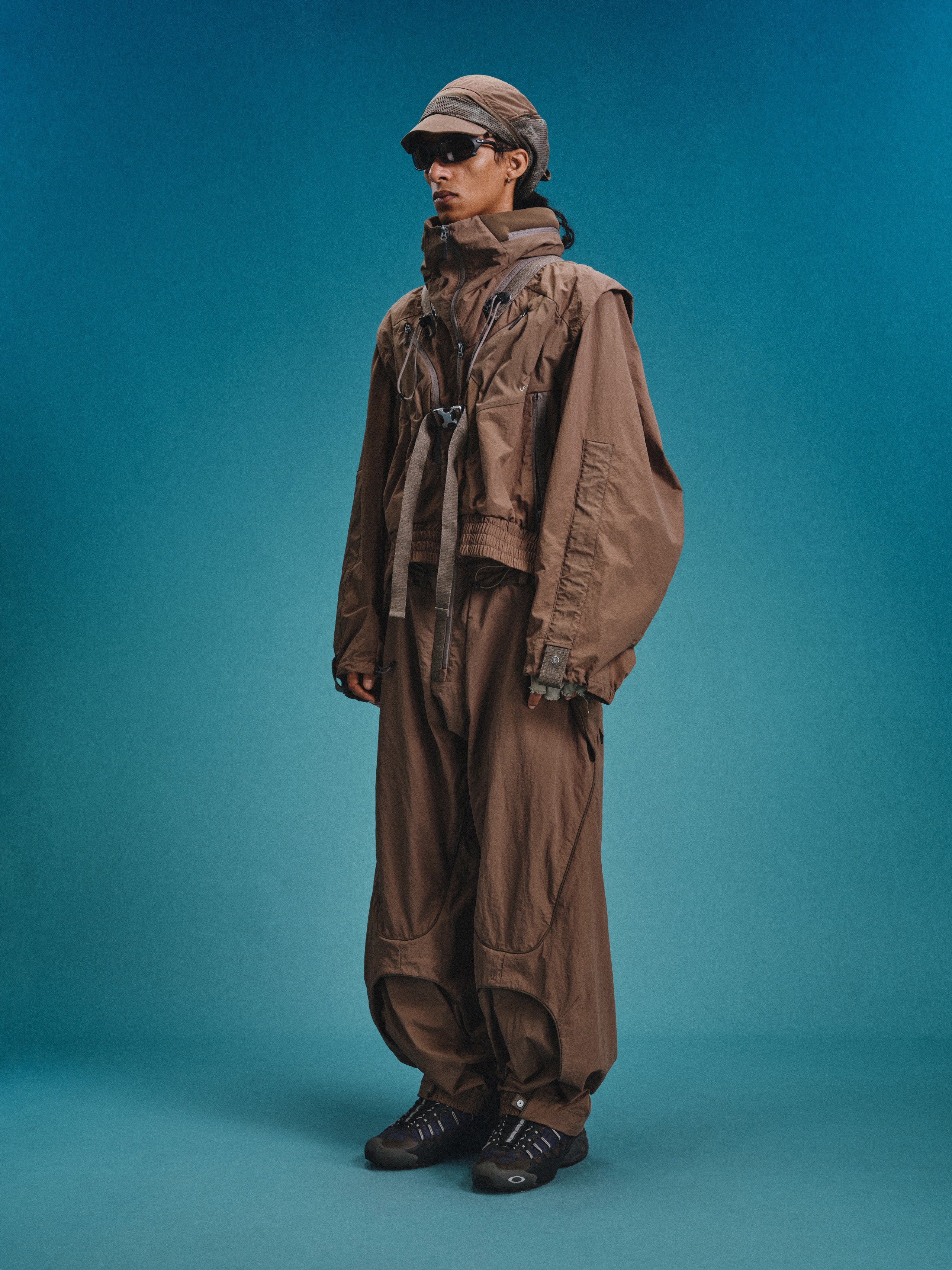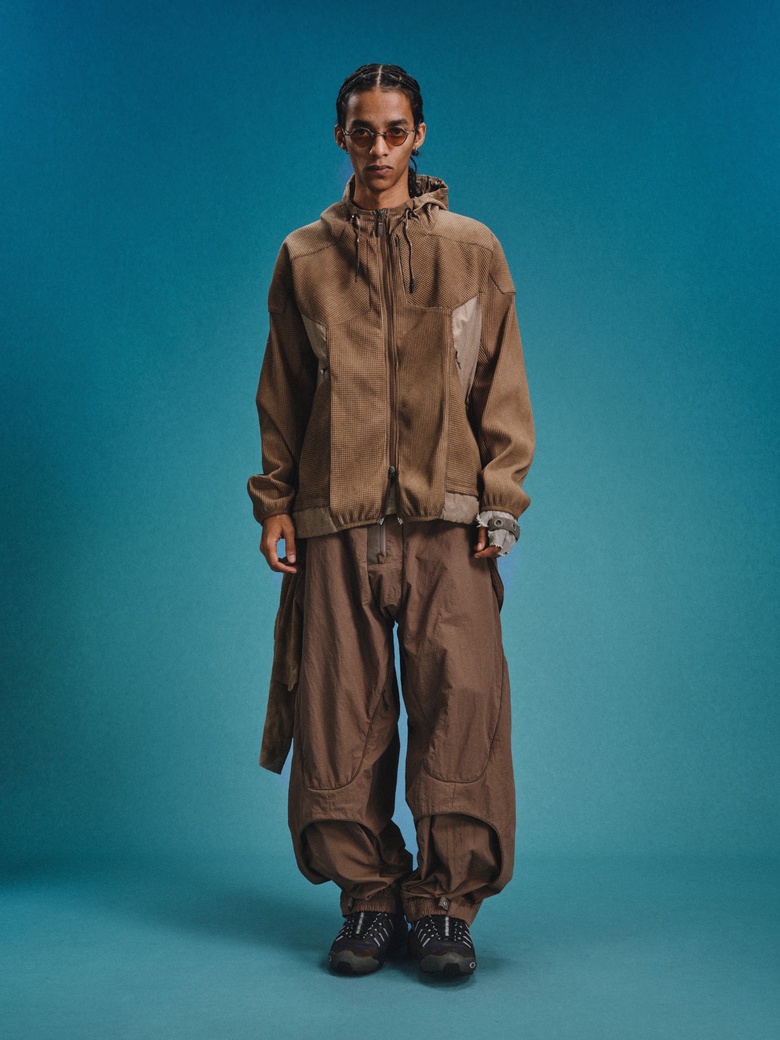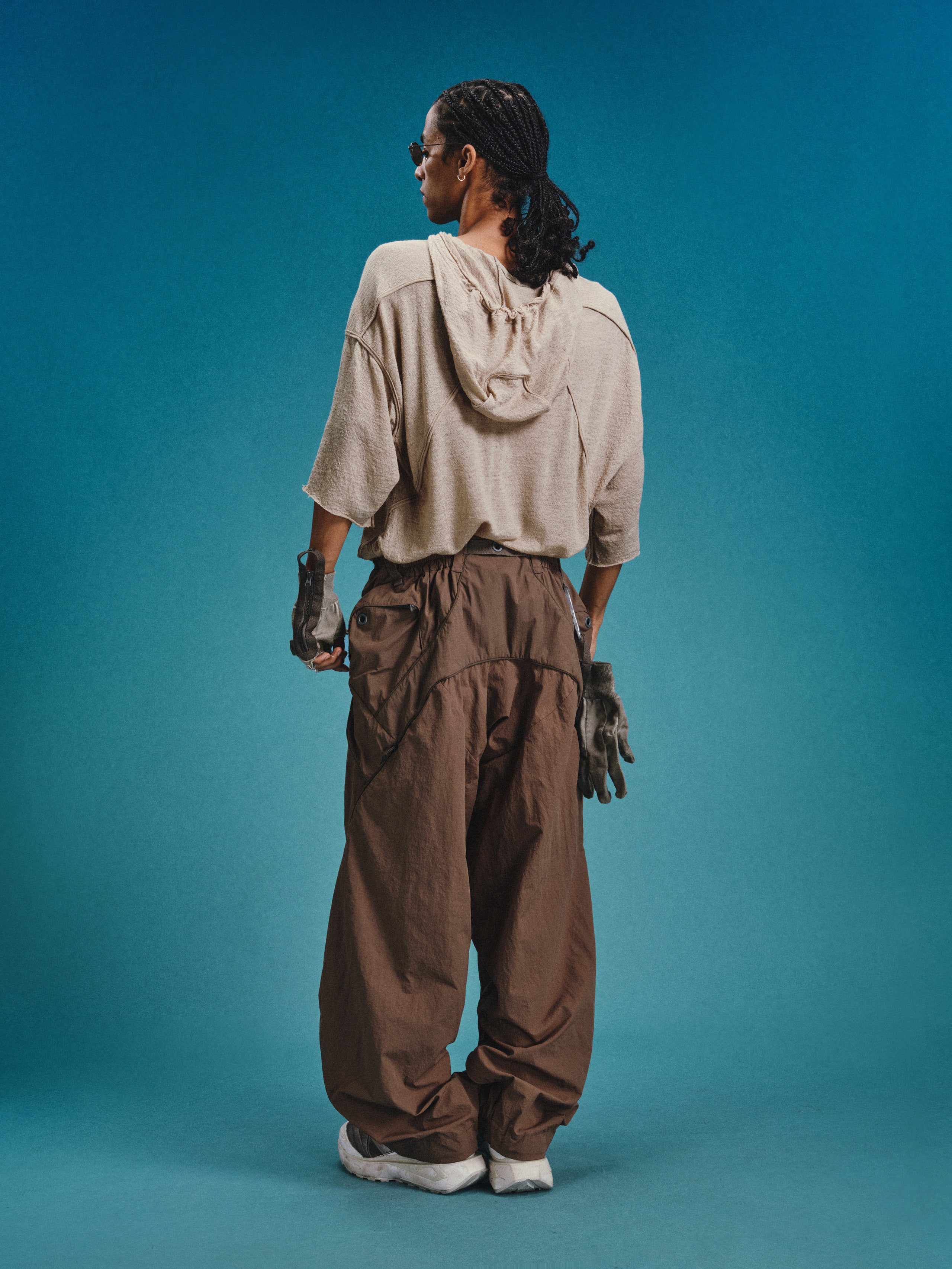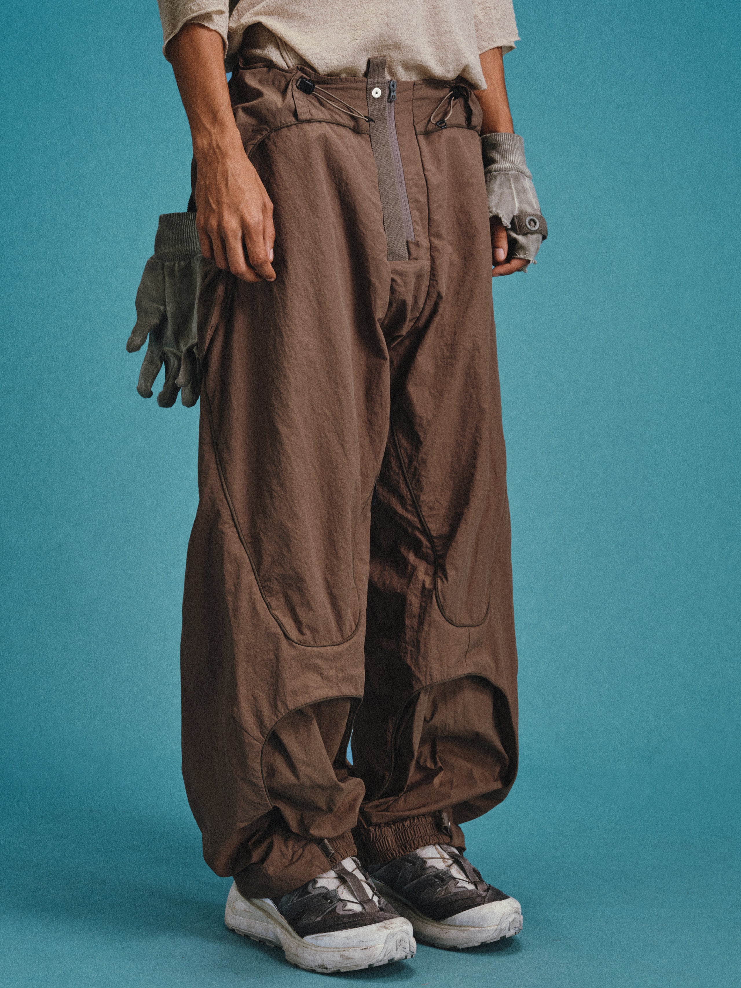 _Invisible zippered expandable structures on the inner and outer thighs, lined with high-density elastic mesh, suitable for ventilation and versatile styling.