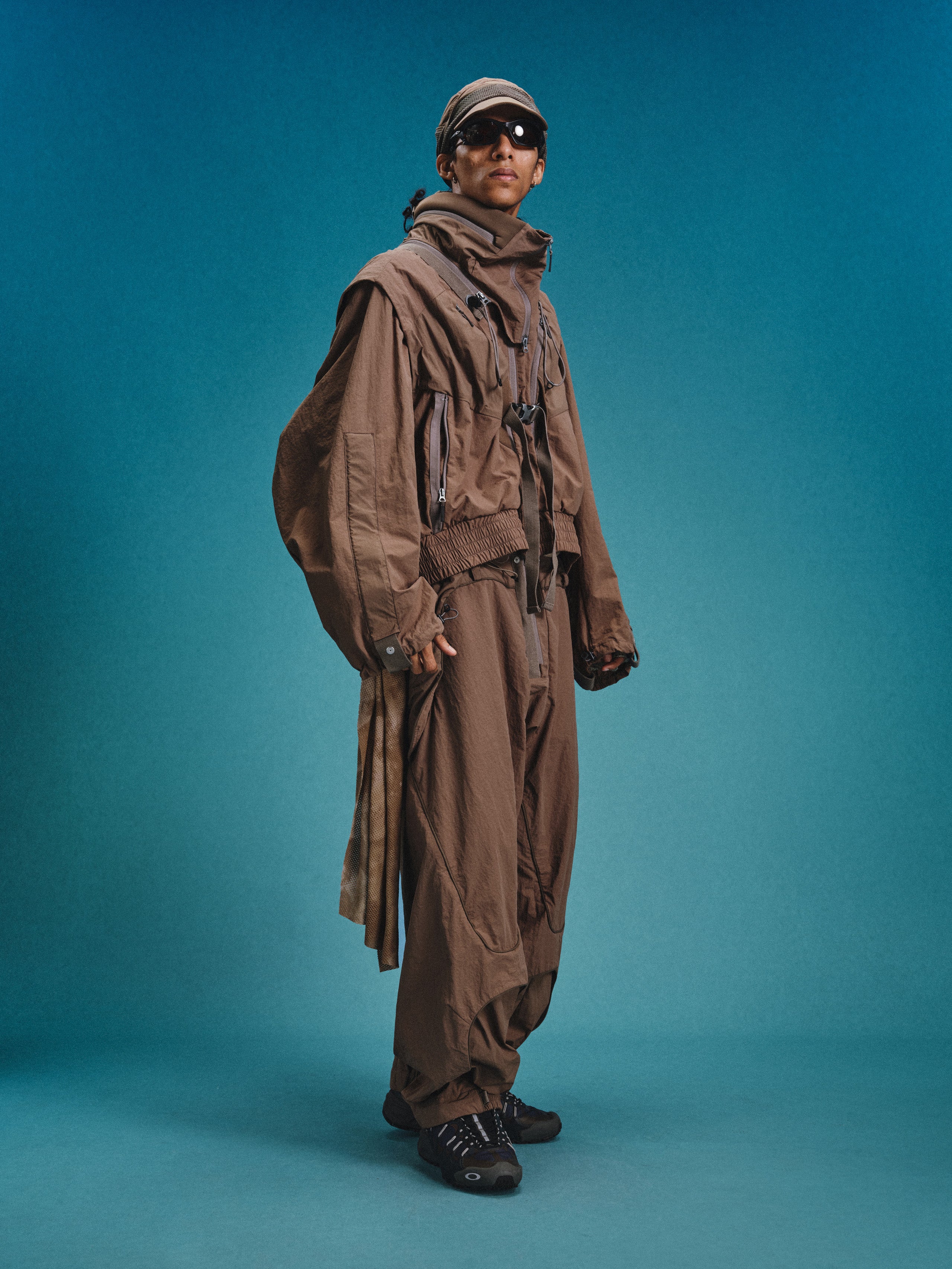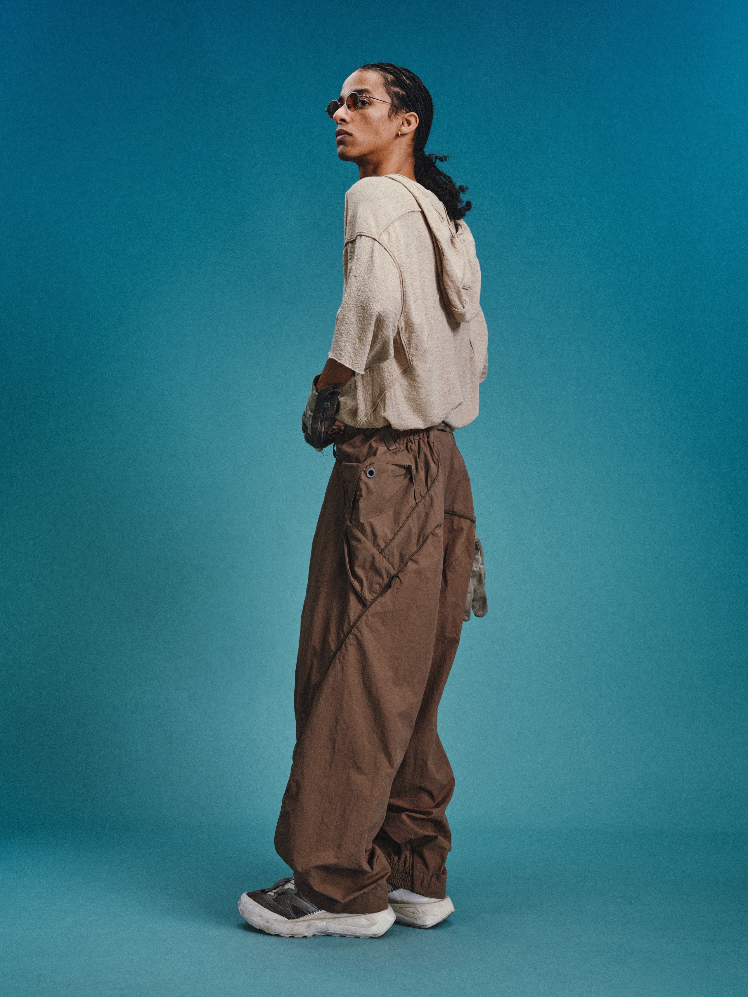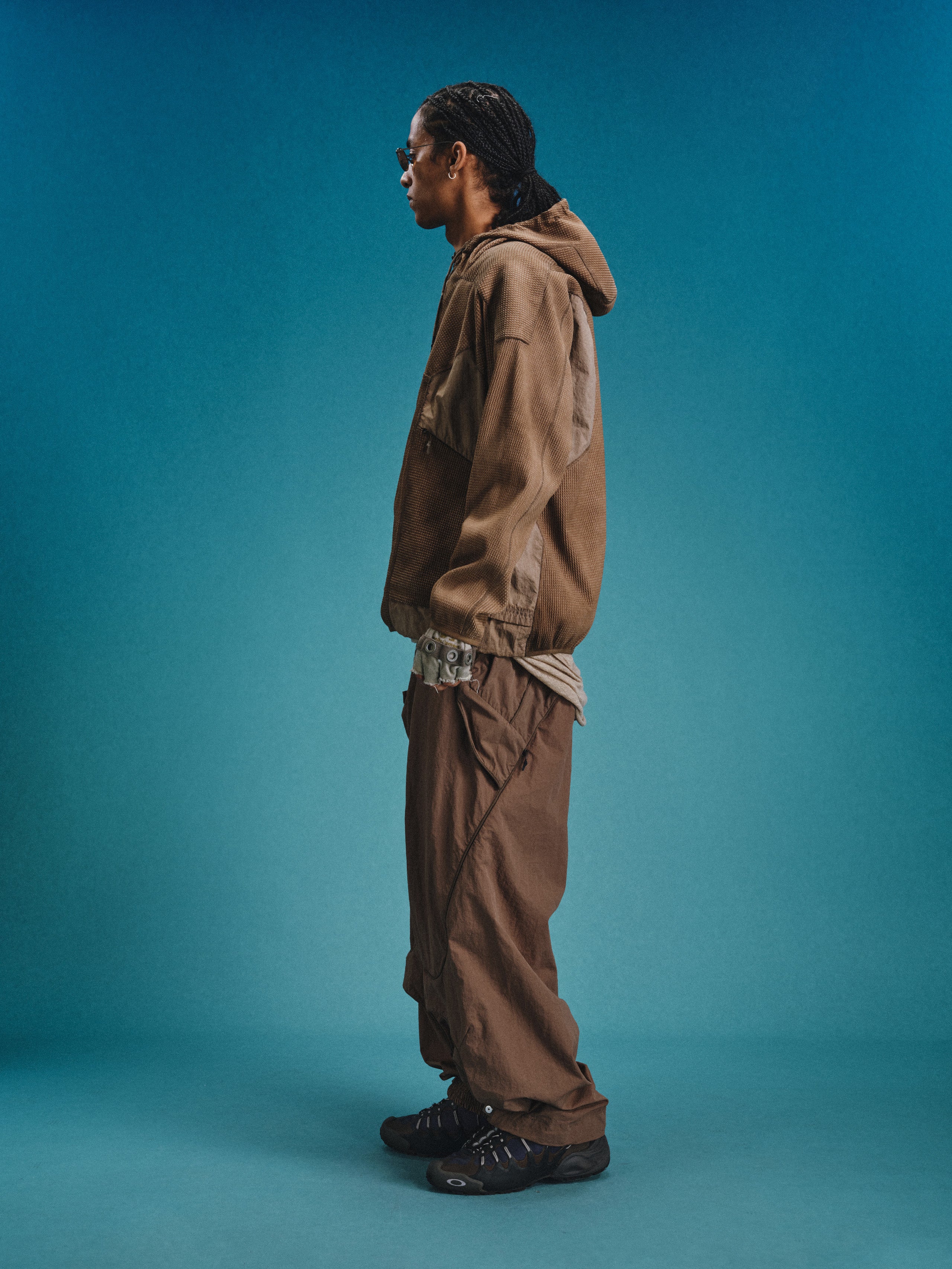 _Invisible zippered expandable structures on the inner and outer thighs, lined with high-density elastic mesh, suitable for ventilation and versatile styling.