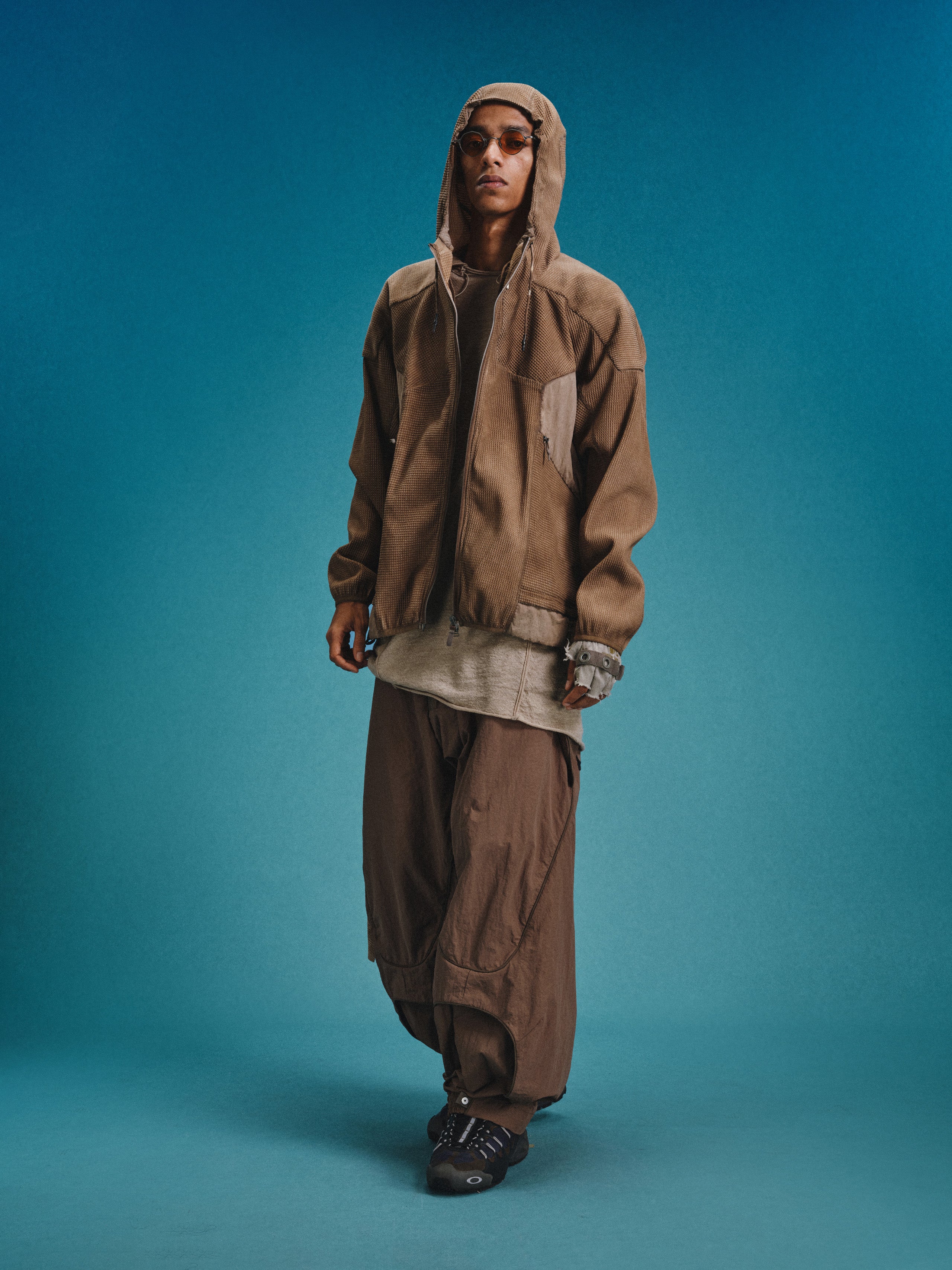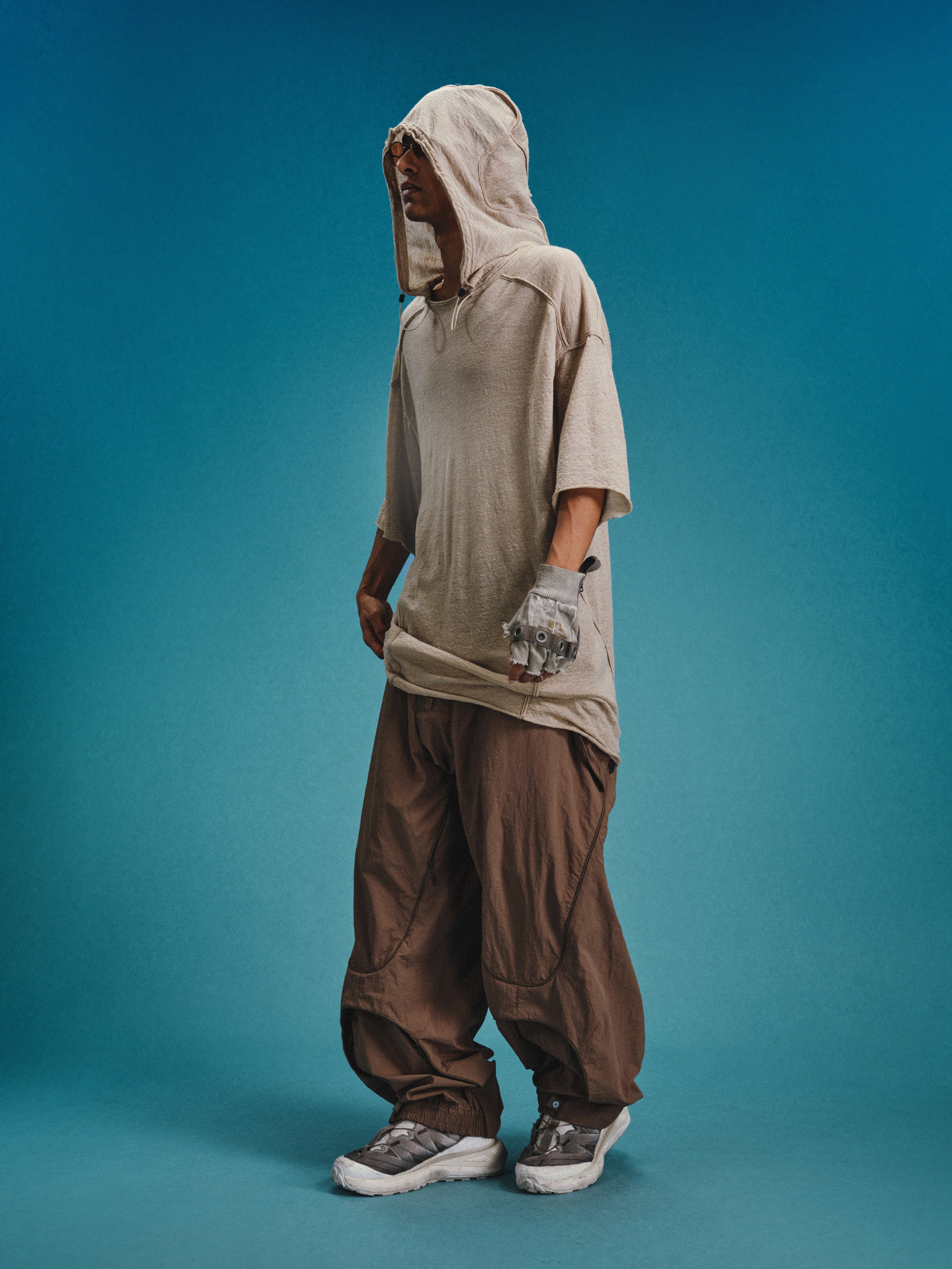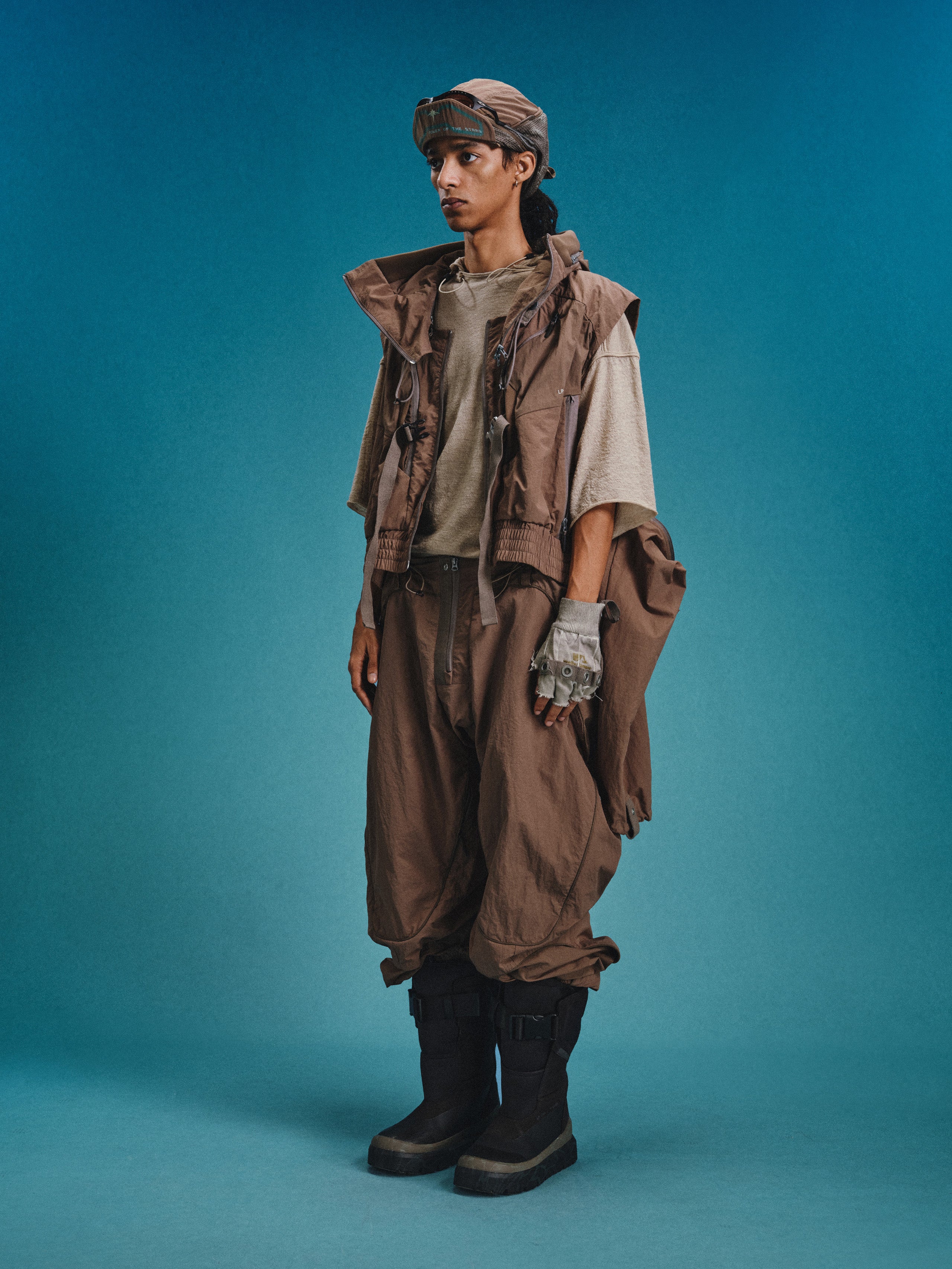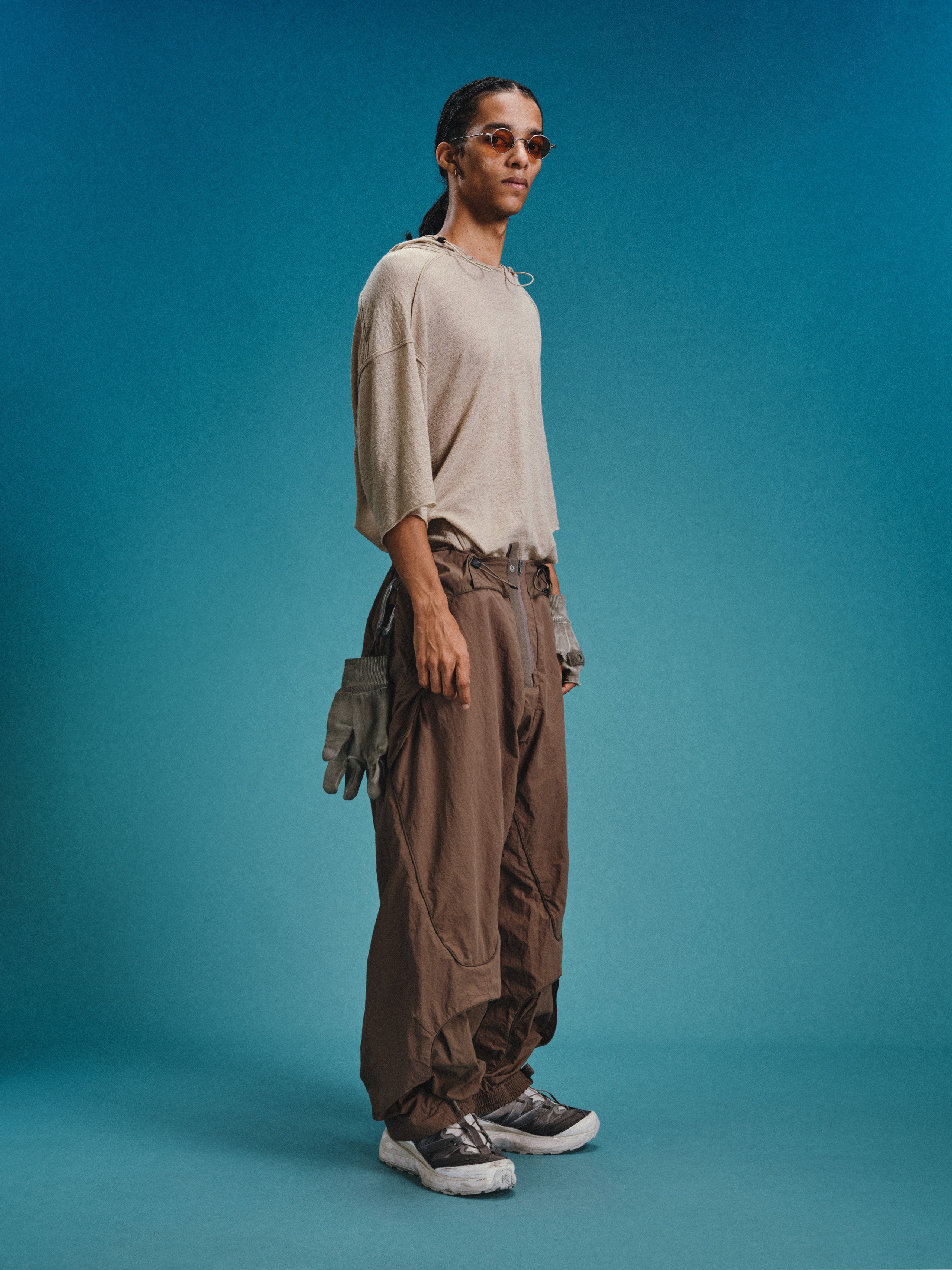 _Invisible zippered expandable structures on the inner and outer thighs, lined with high-density elastic mesh, suitable for ventilation and versatile styling.