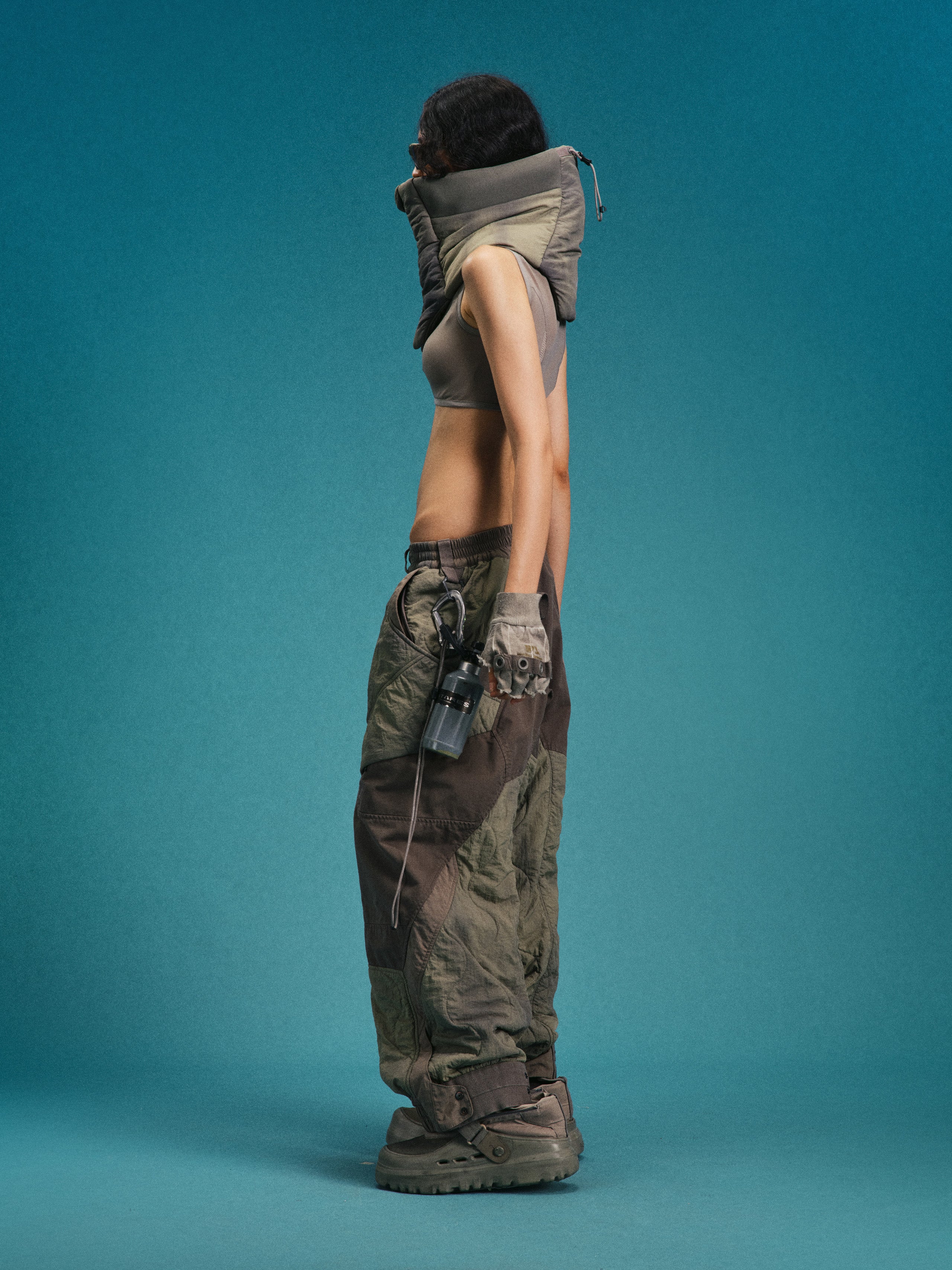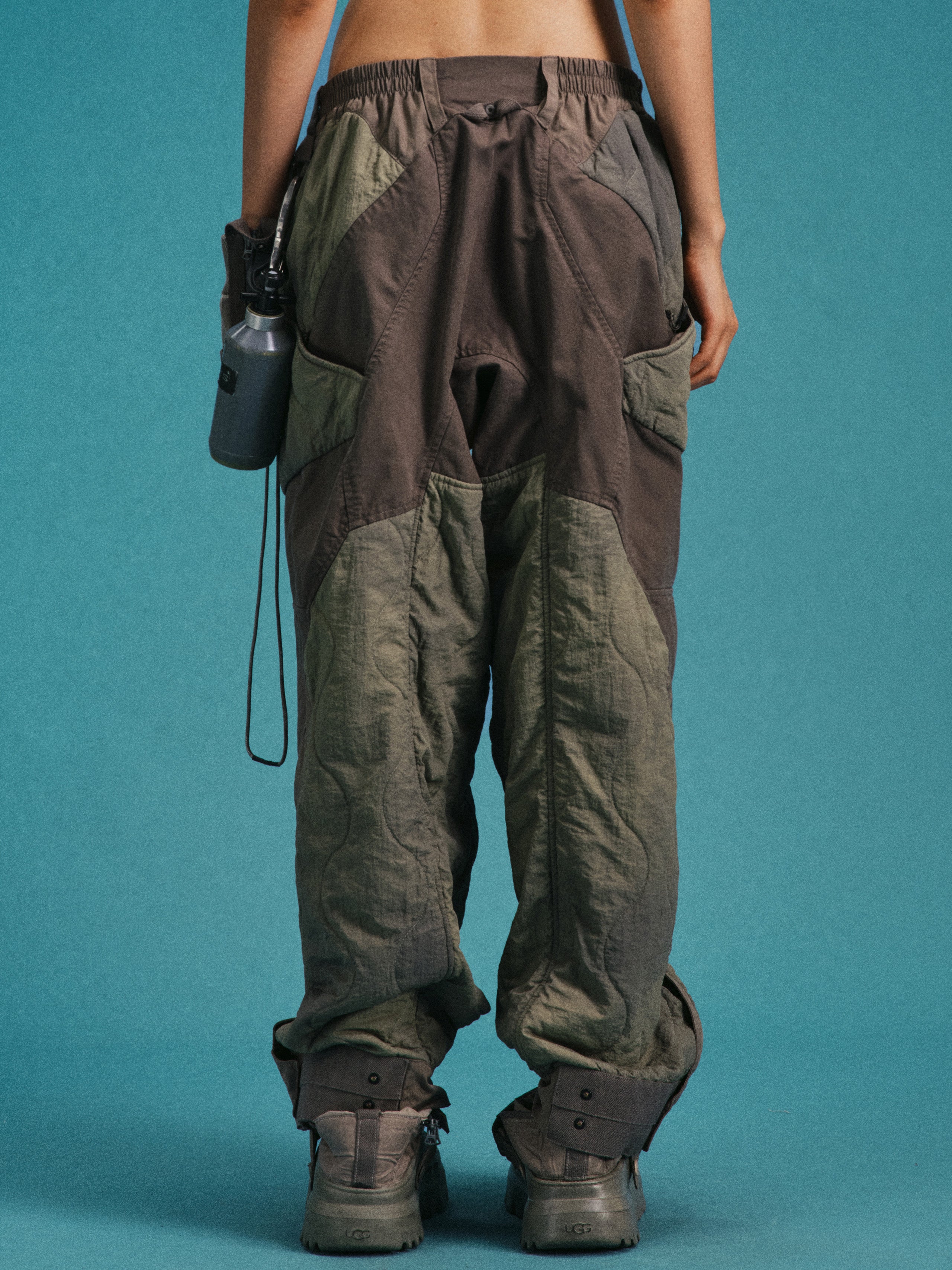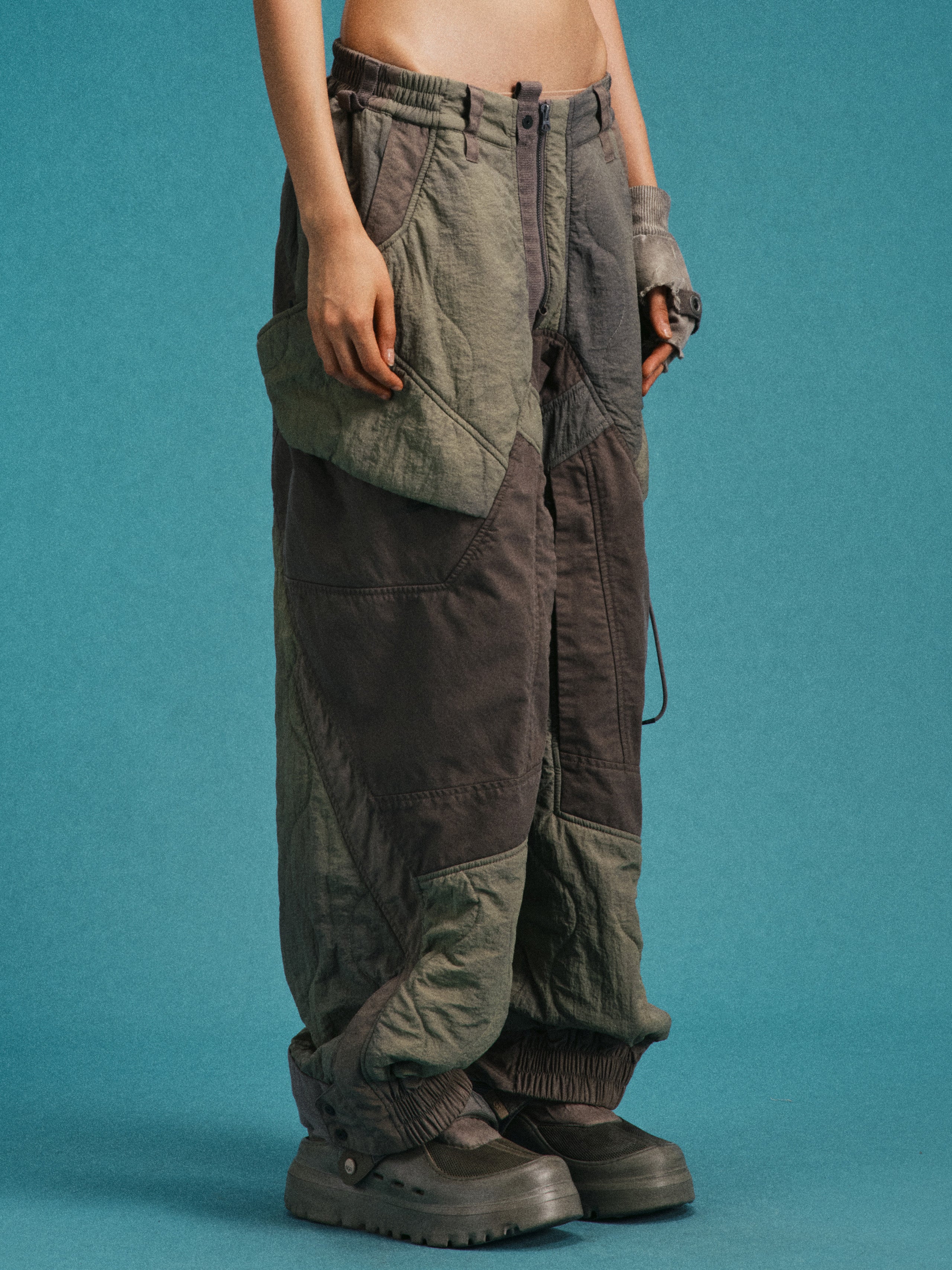 _Adjustable leg openings with snap-secured flaps on both sides for tapering the leg cuffs.