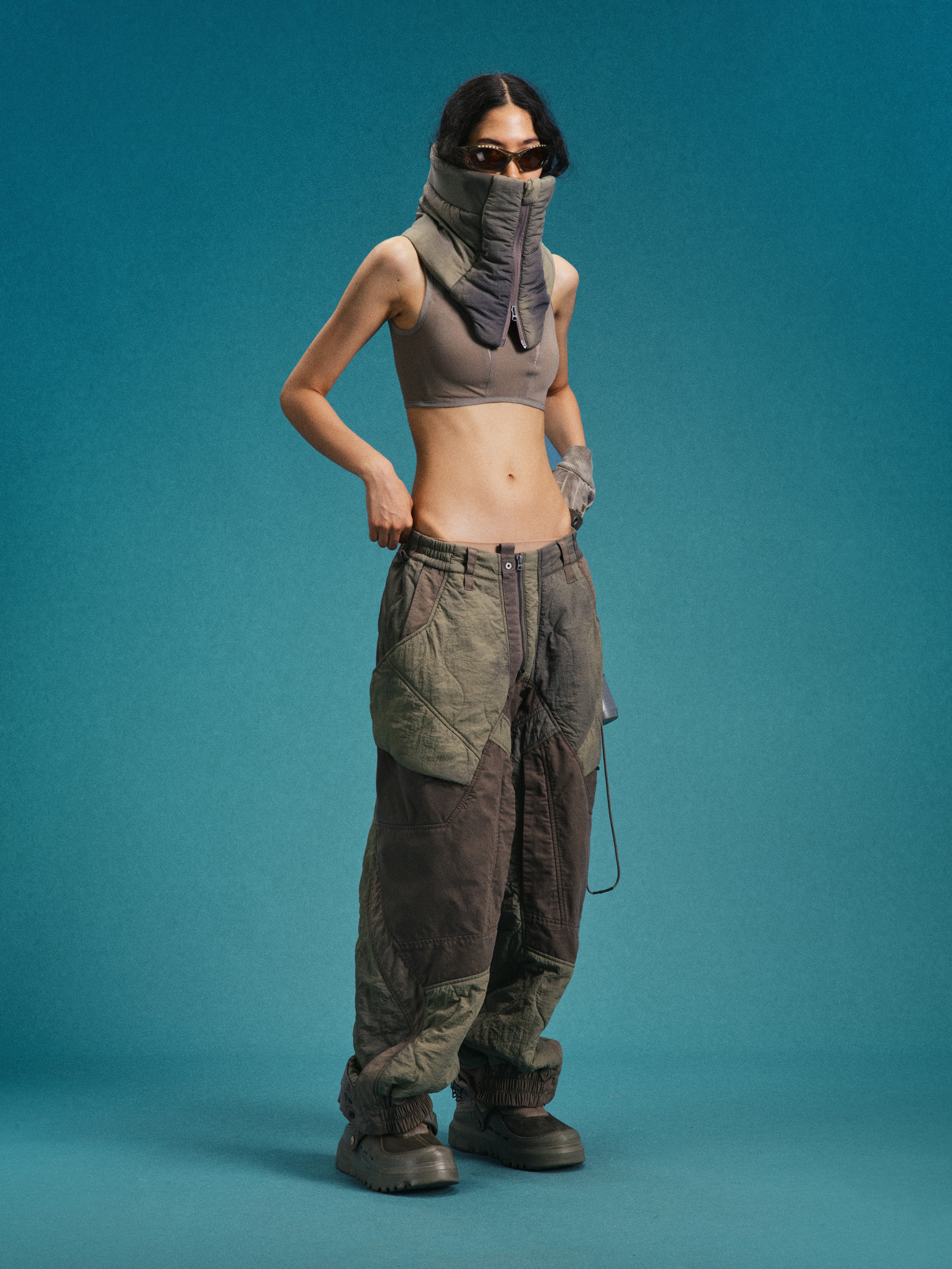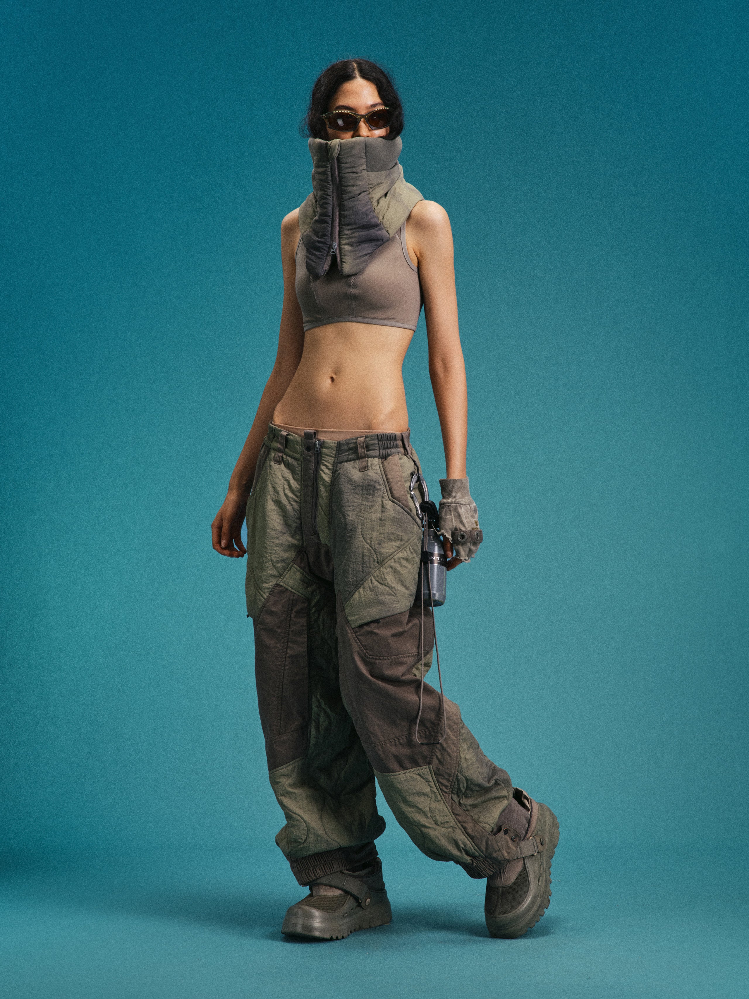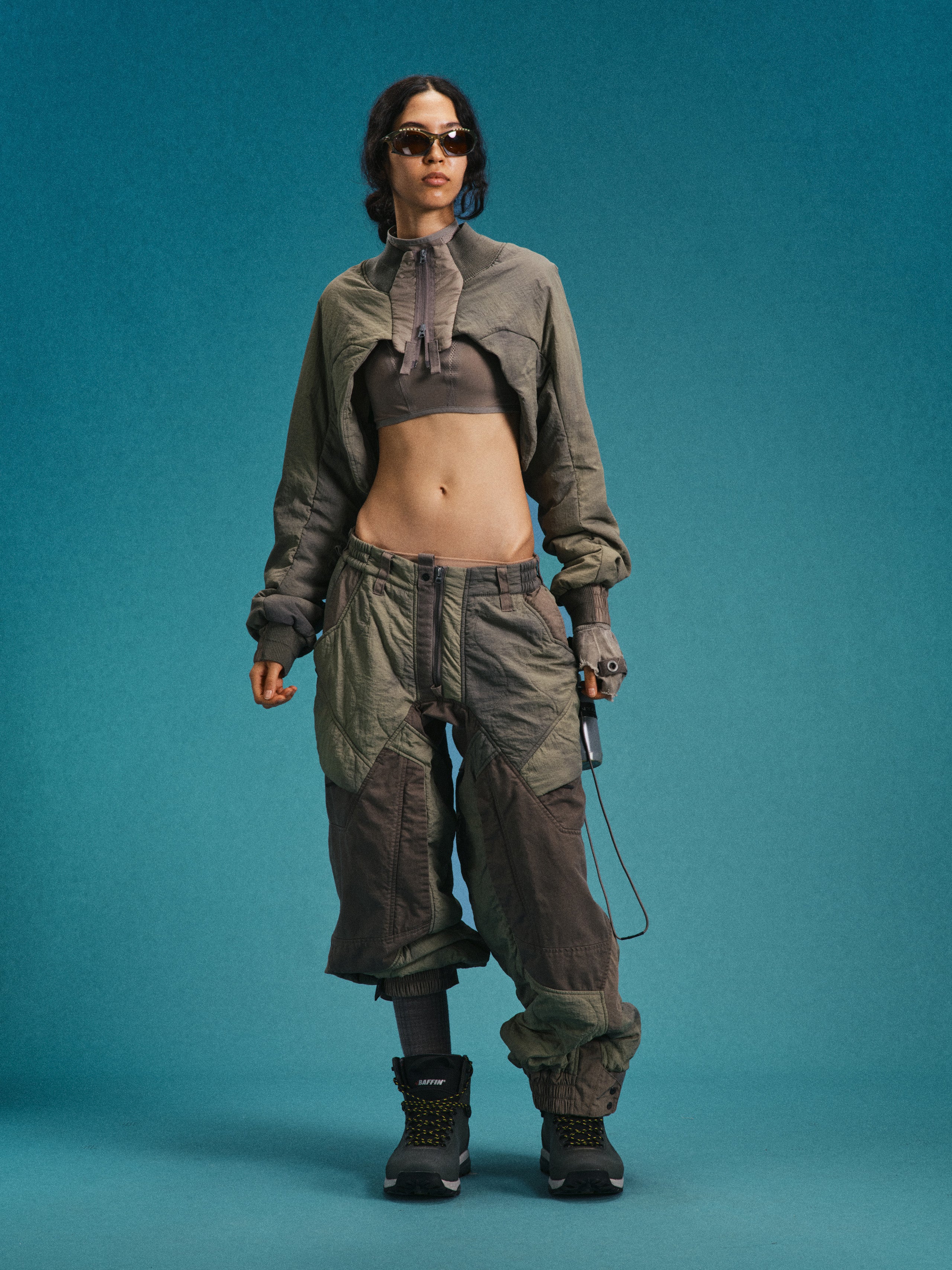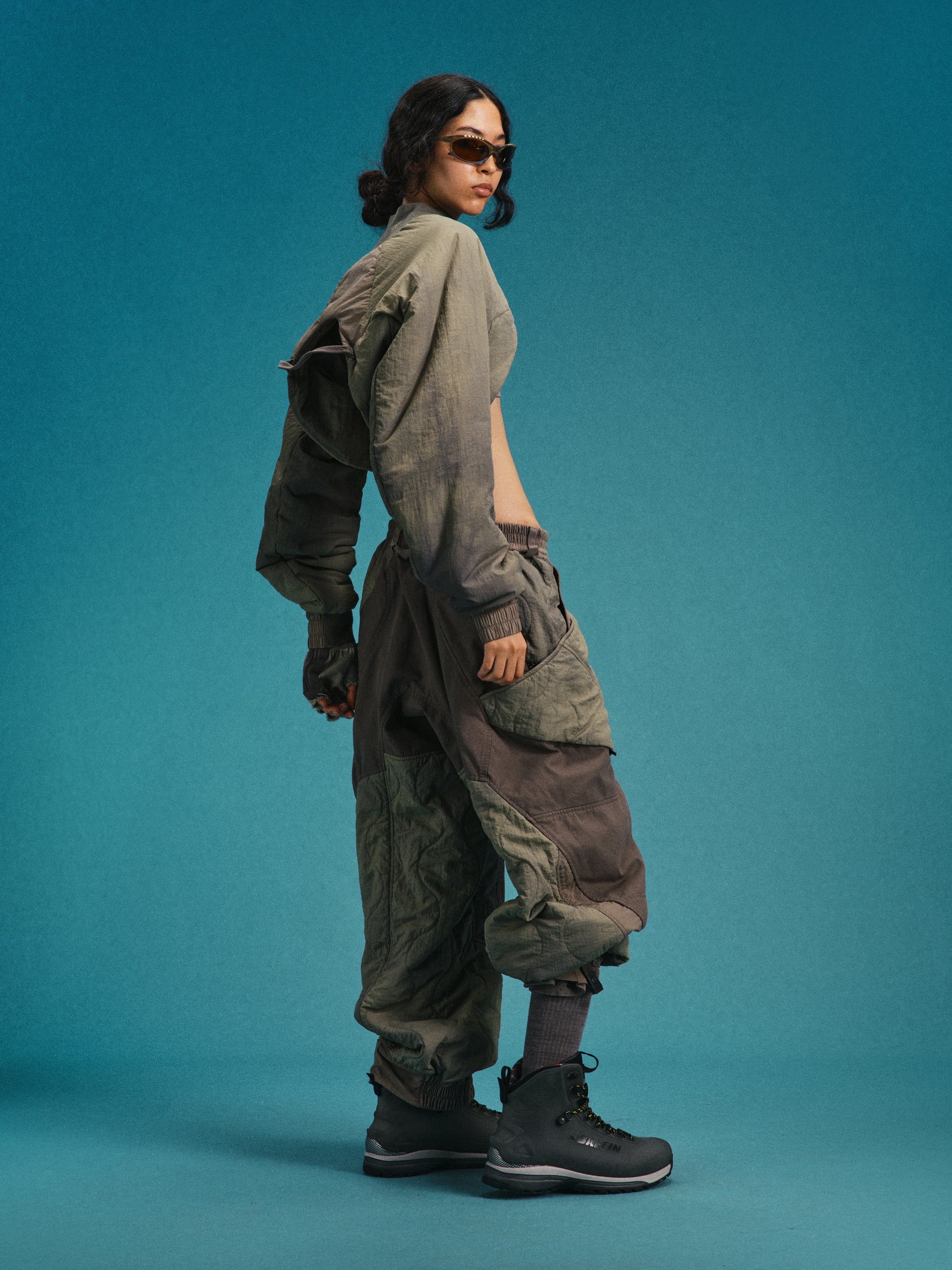 _Adjustable leg openings with snap-secured flaps on both sides for tapering the leg cuffs.