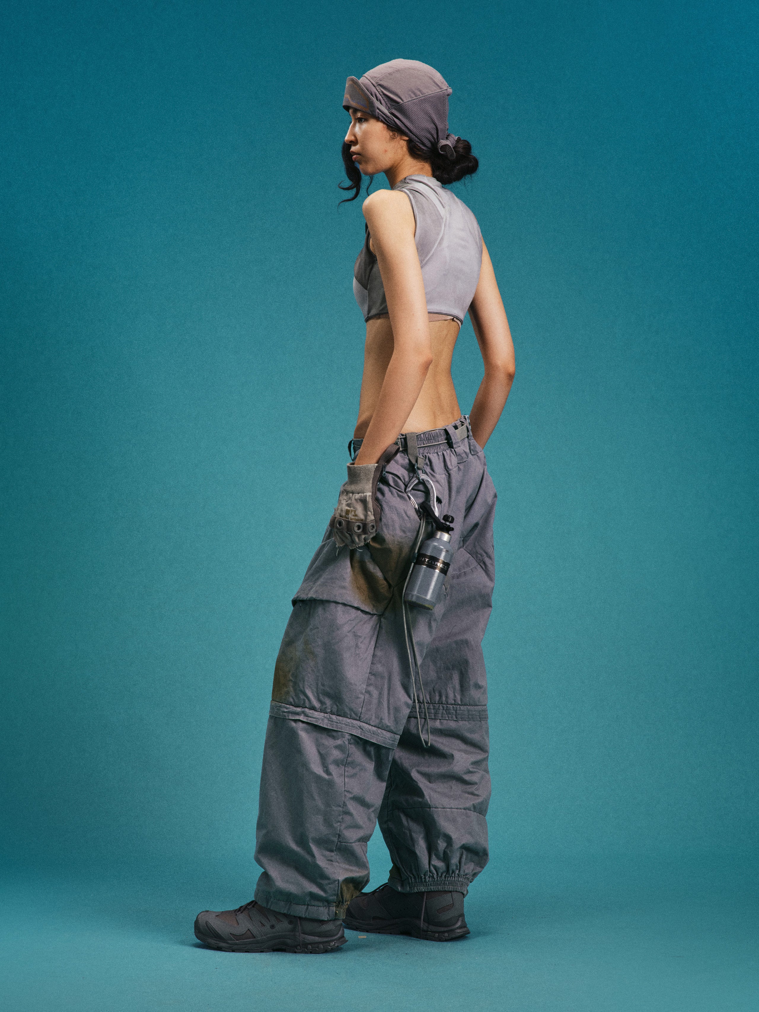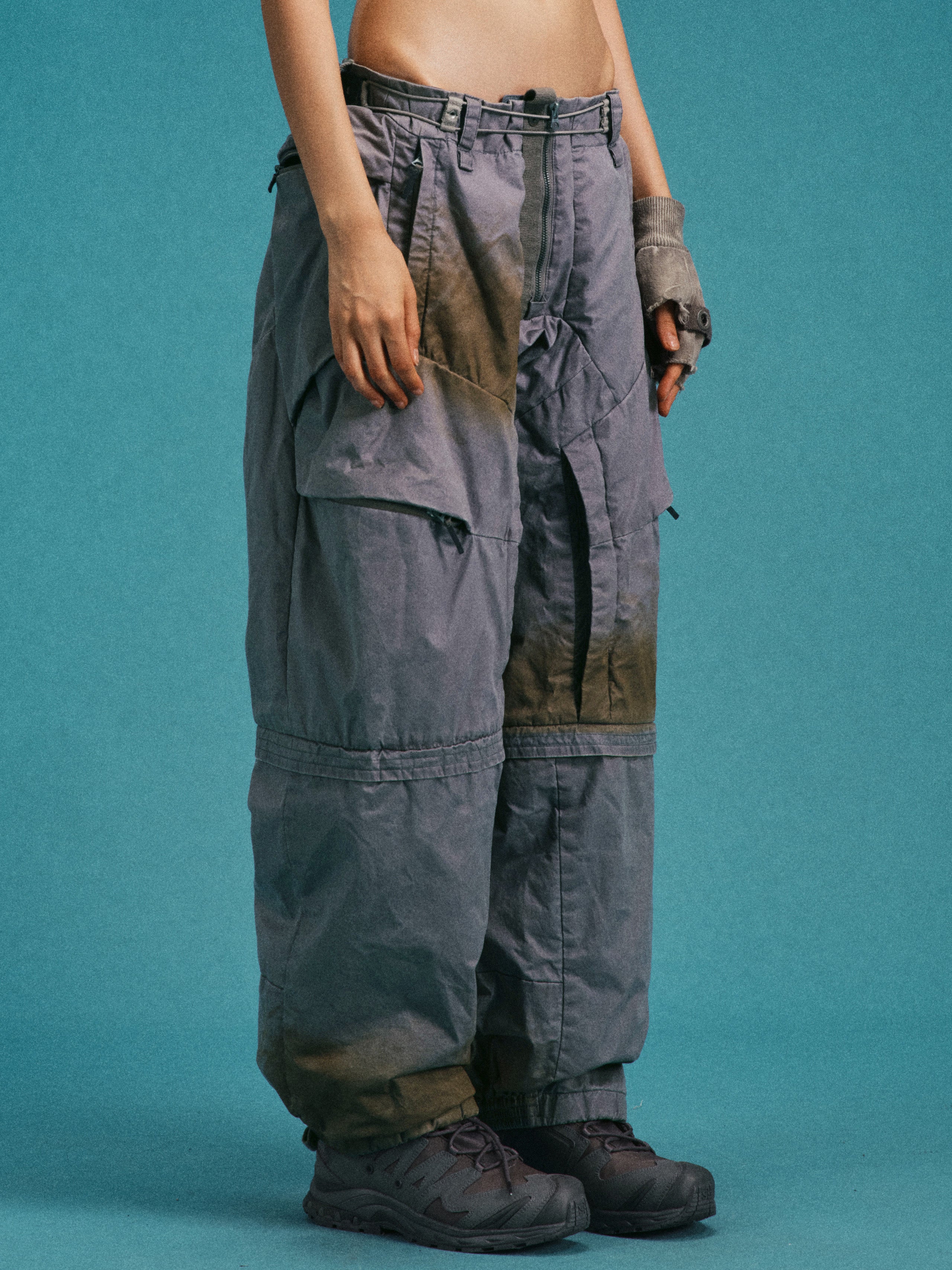 _Detachable leg sections zip-connected below the knee; removing them converts the pants into shorts. This structure allows for the attachment of season-appropriate modular leg panels to adapt to aifferent usage scenarios.