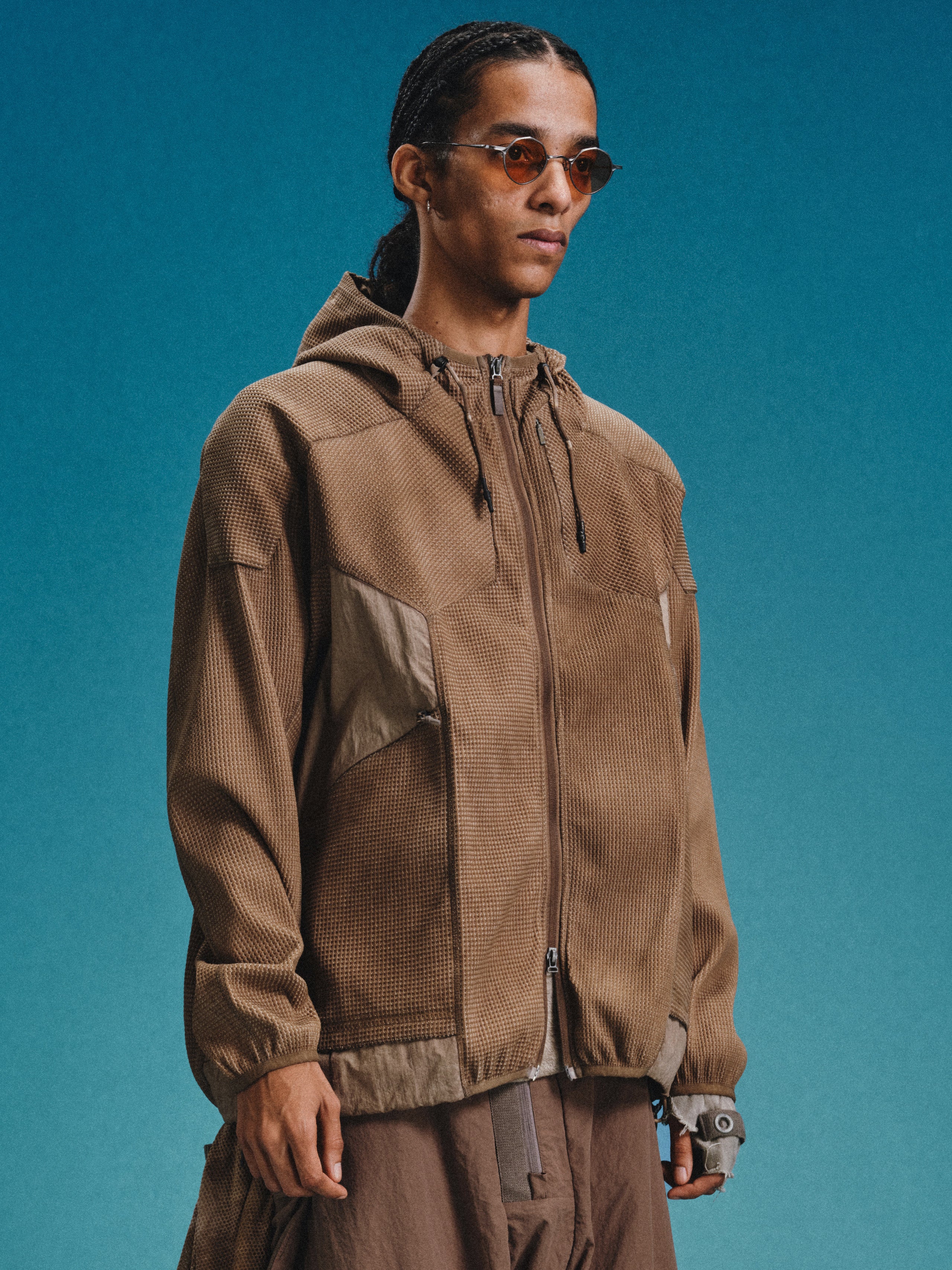 _Stretch waffle-knit panels with lightweight shaping layer.