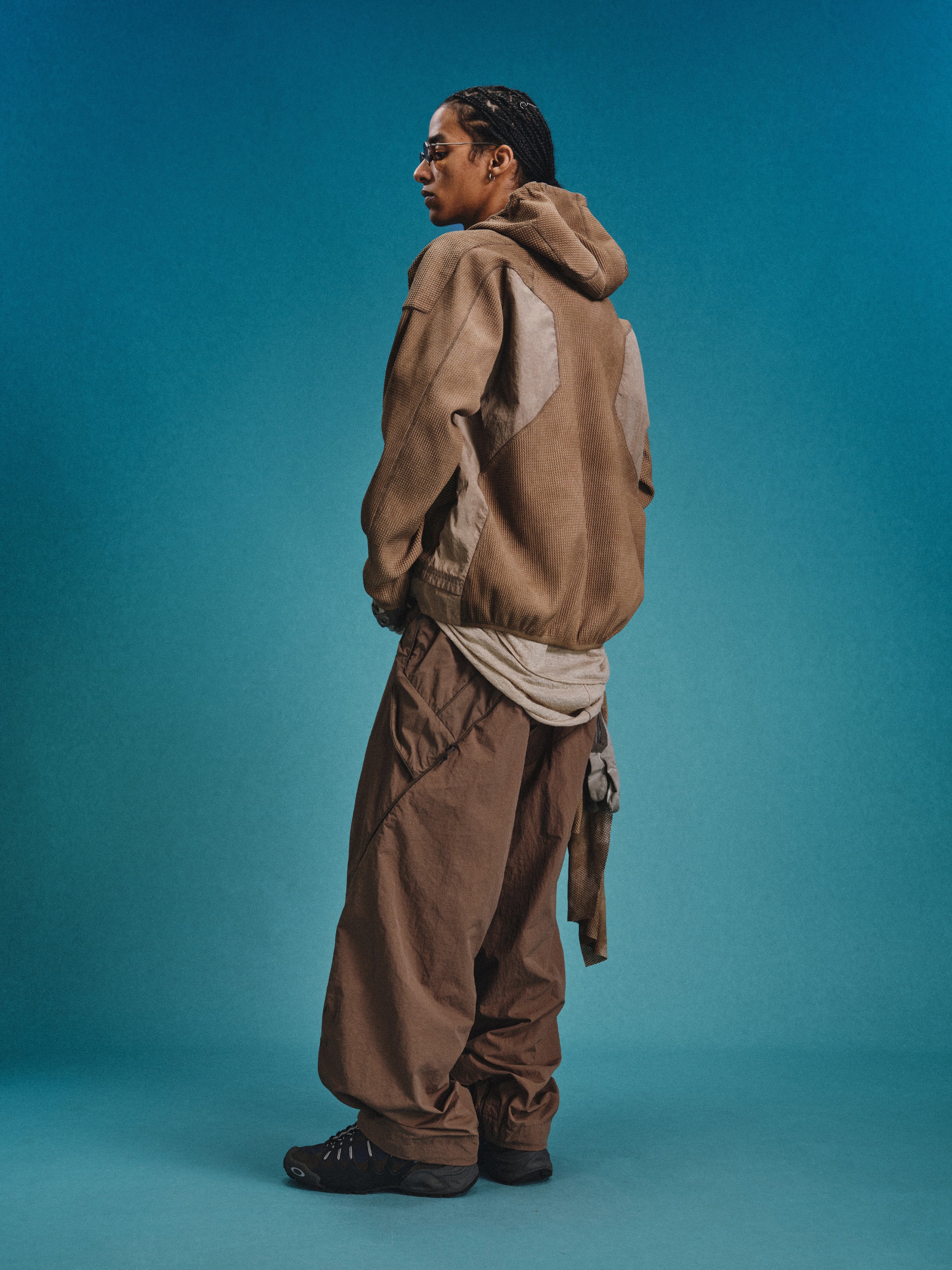 _Invisible zipper slash pockets on both sides of front lower hem.