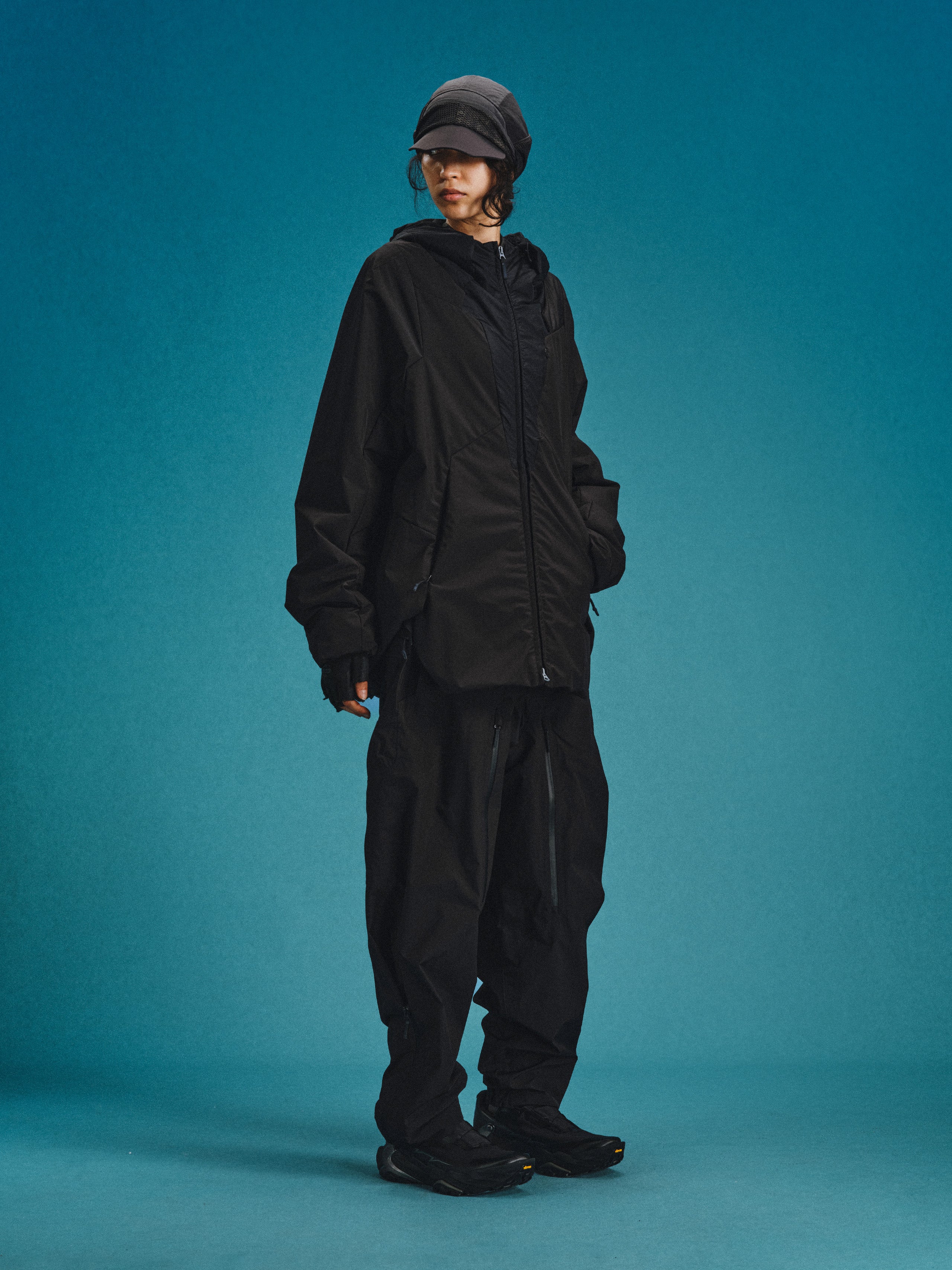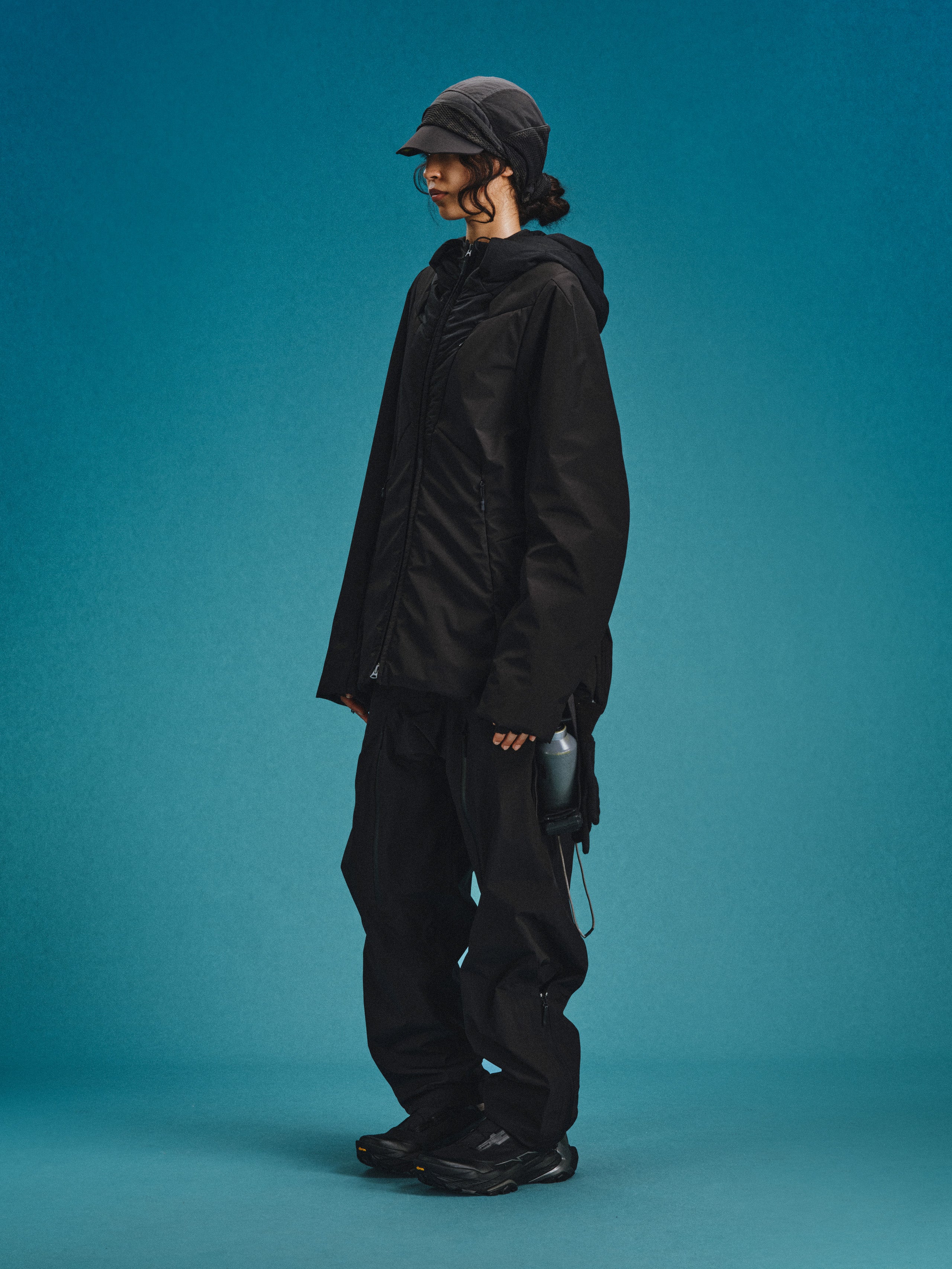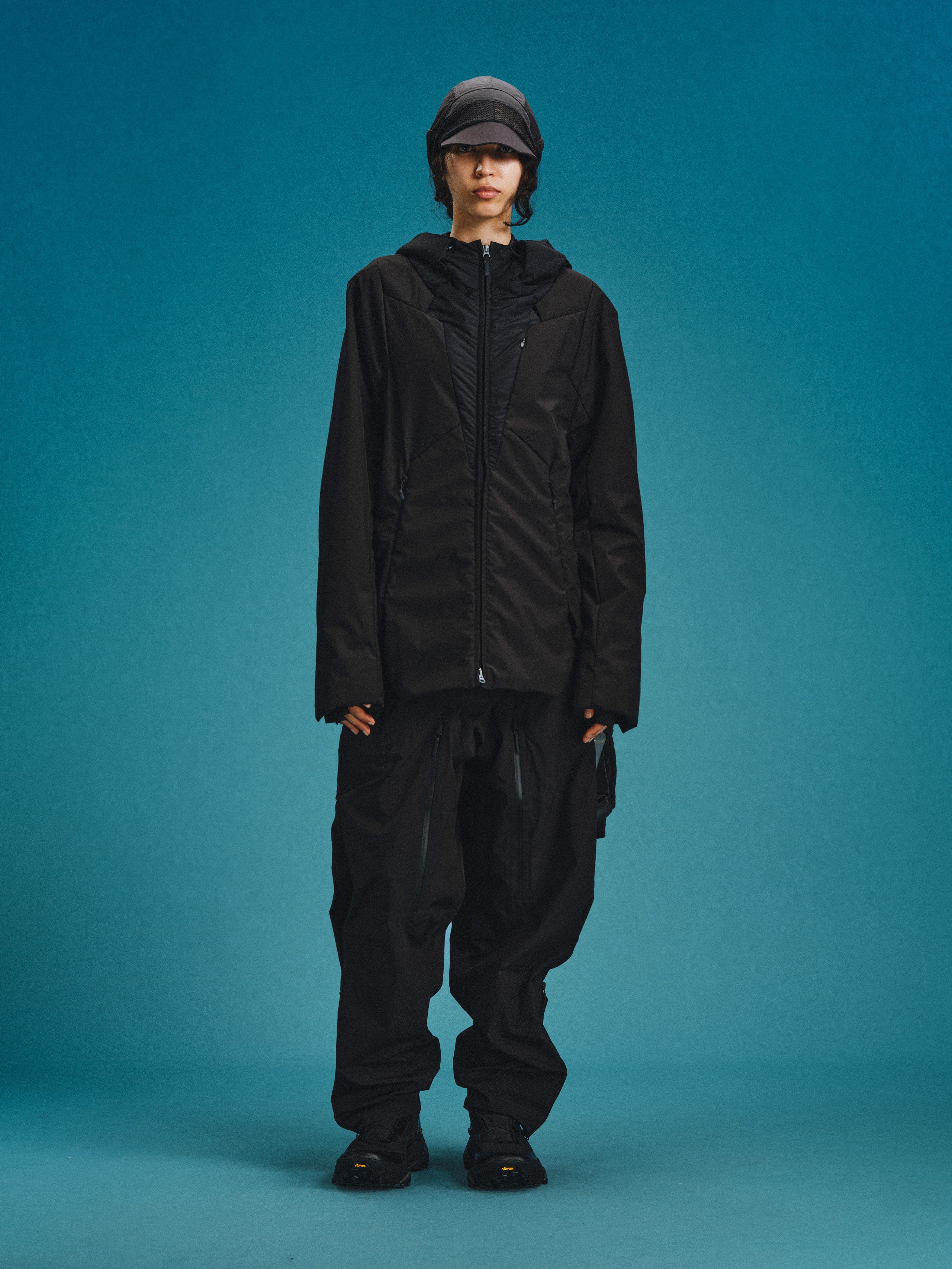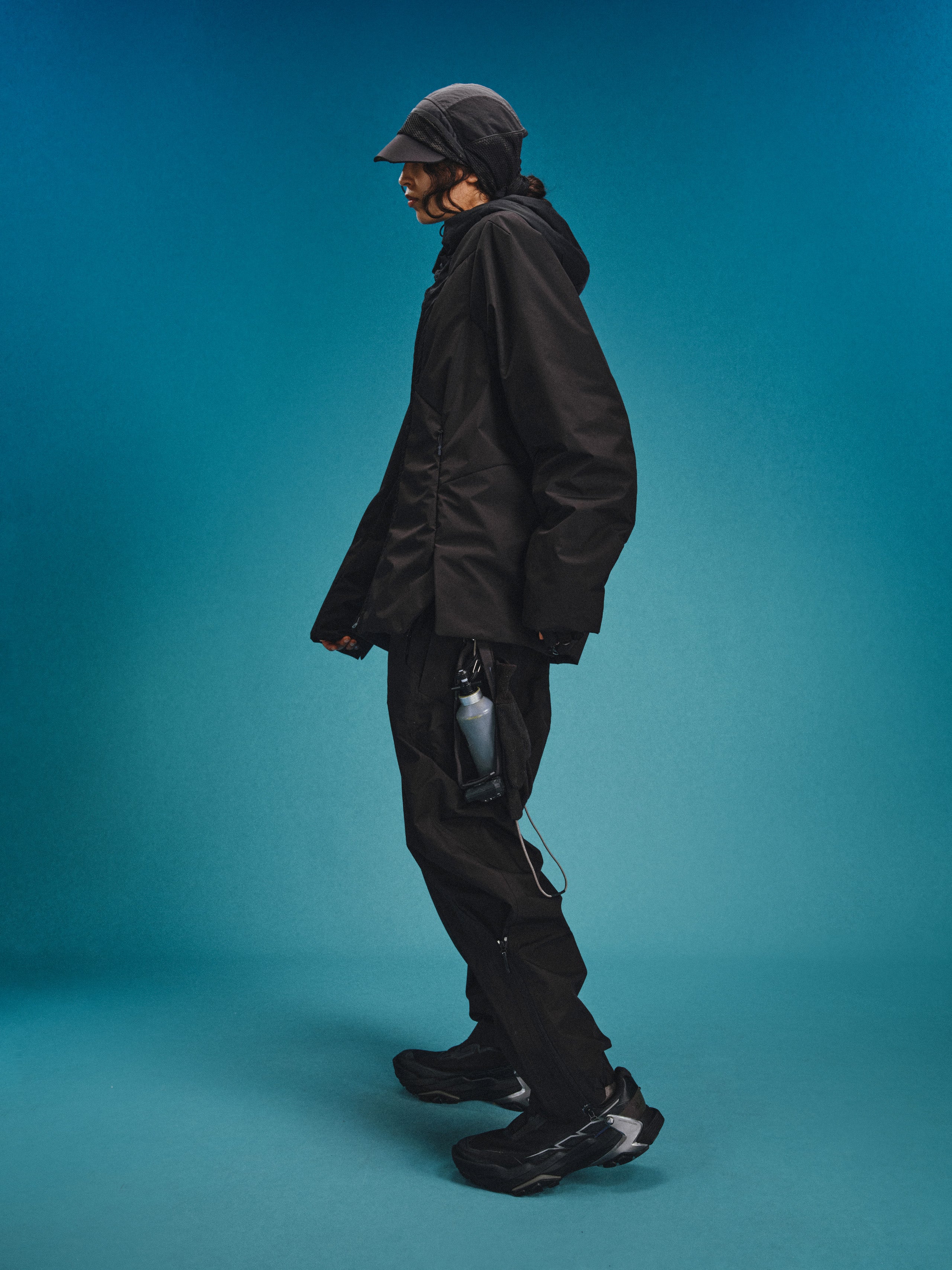 _Fully covered DWR-coated, quilted w/ THERMOLITE Miro insulation layer technology. _2-way zip closure for the front placket. _Drawstring adjuster at collar and hood for collar and hood circumference adjustment. _Invisible zippered card pocket on left chest. _2 invisible zippered pockets on the lower front panel. _Layered hem vent with hidden zippers on both sides to open the hem. _Exposed cartilage module padding panels distributed across the back.