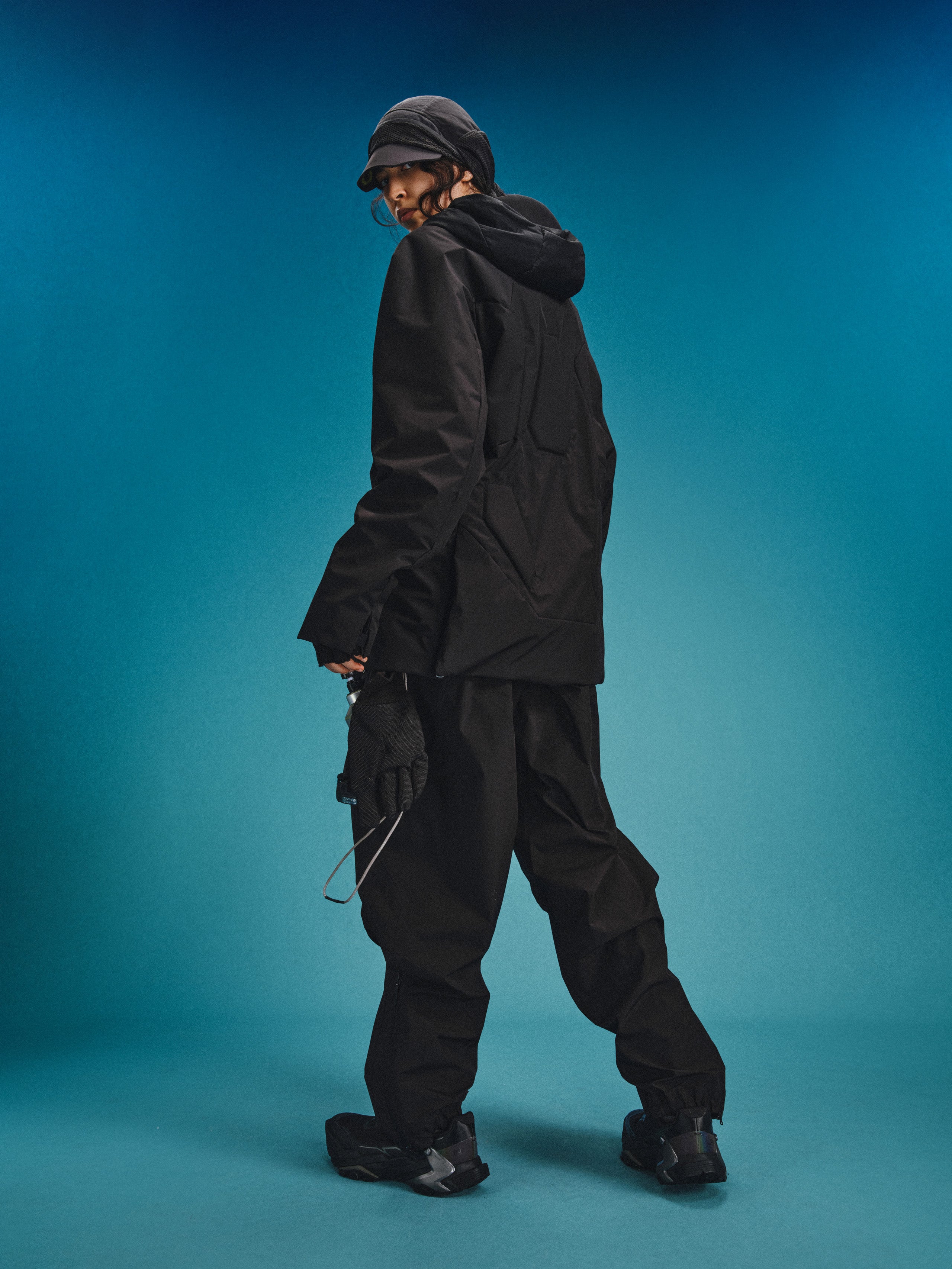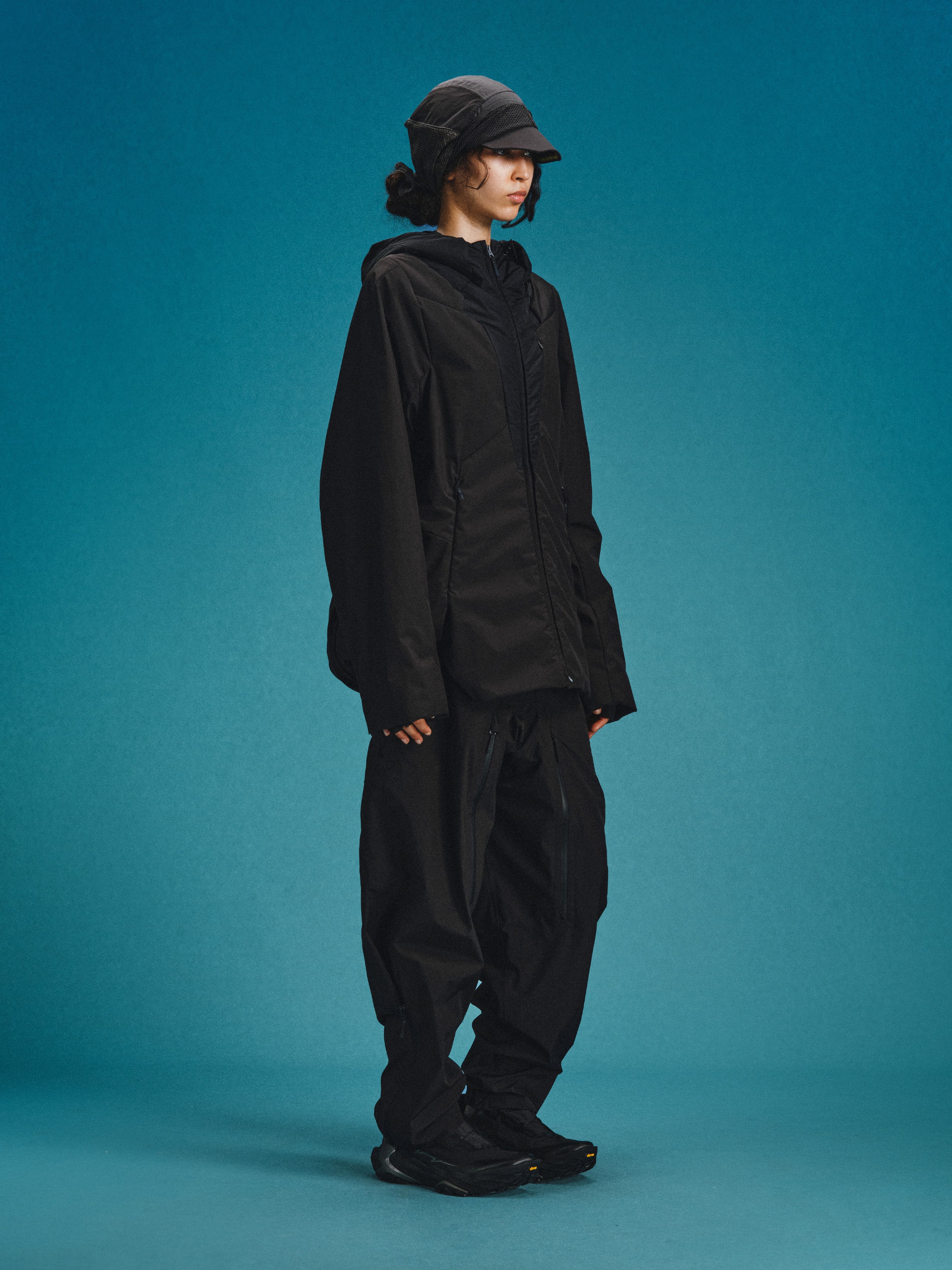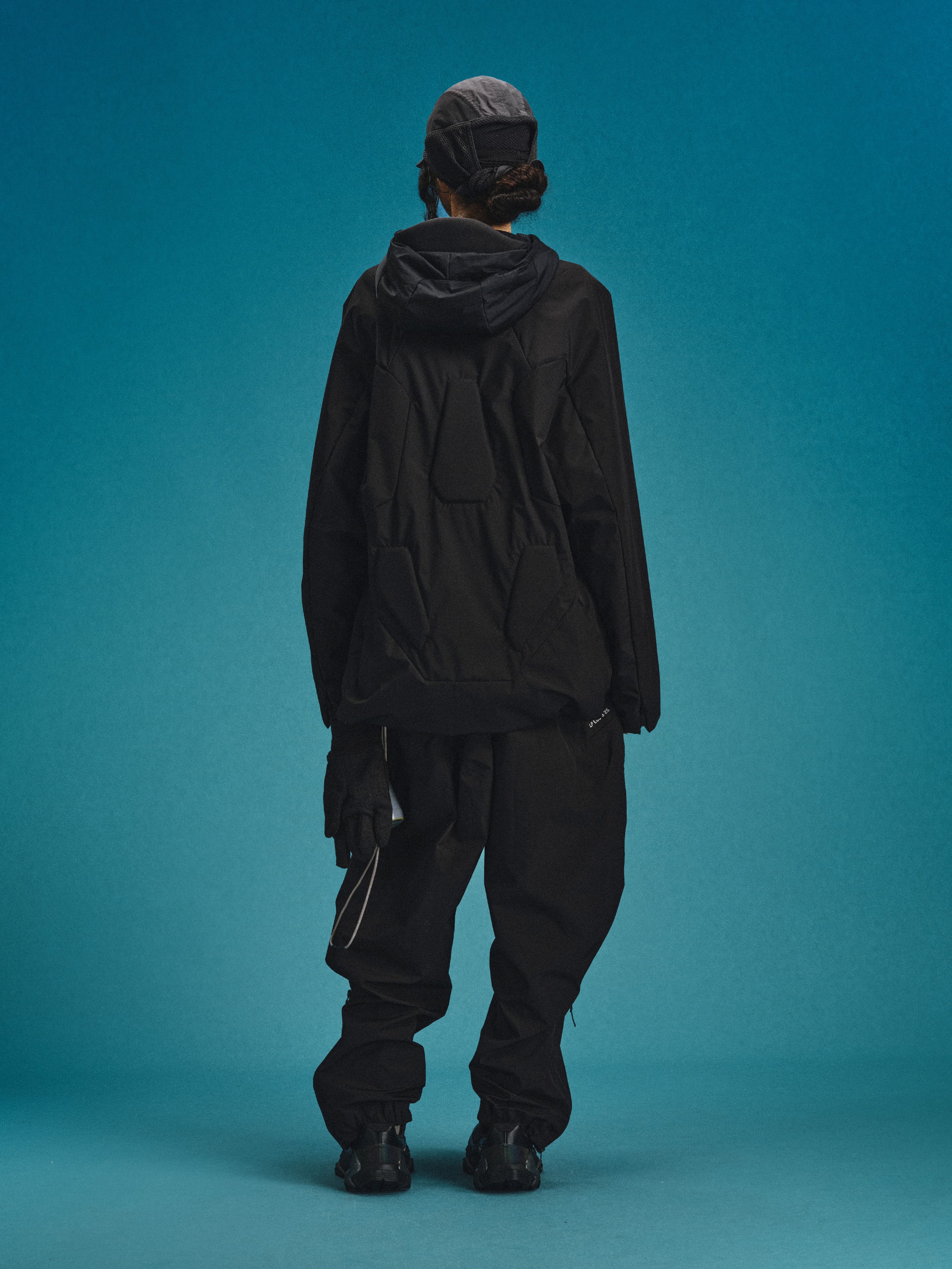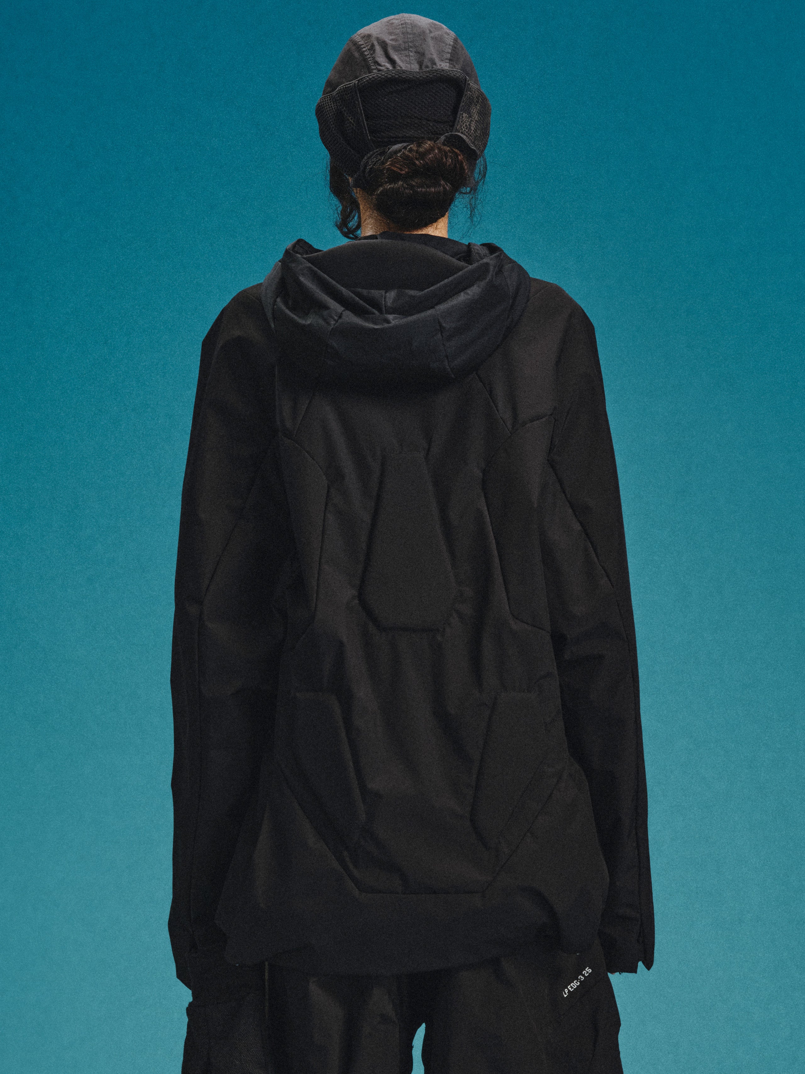 _Fully covered DWR-coated, quilted w/ THERMOLITE Miro insulation layer technology. _2-way zip closure for the front placket. _Drawstring adjuster at collar and hood for collar and hood circumference adjustment. _Invisible zippered card pocket on left chest. _2 invisible zippered pockets on the lower front panel. _Layered hem vent with hidden zippers on both sides to open the hem. _Exposed cartilage module padding panels distributed across the back.