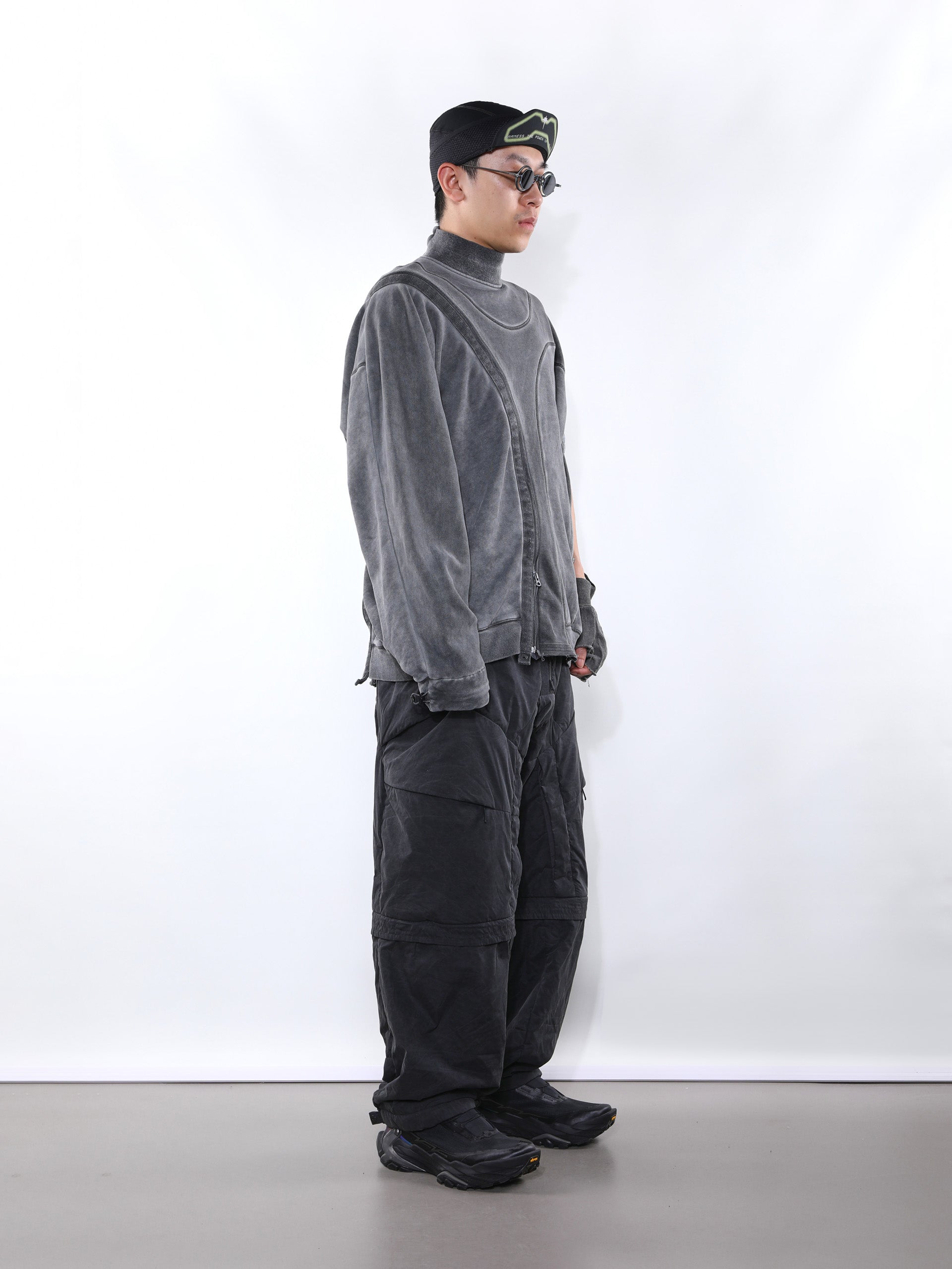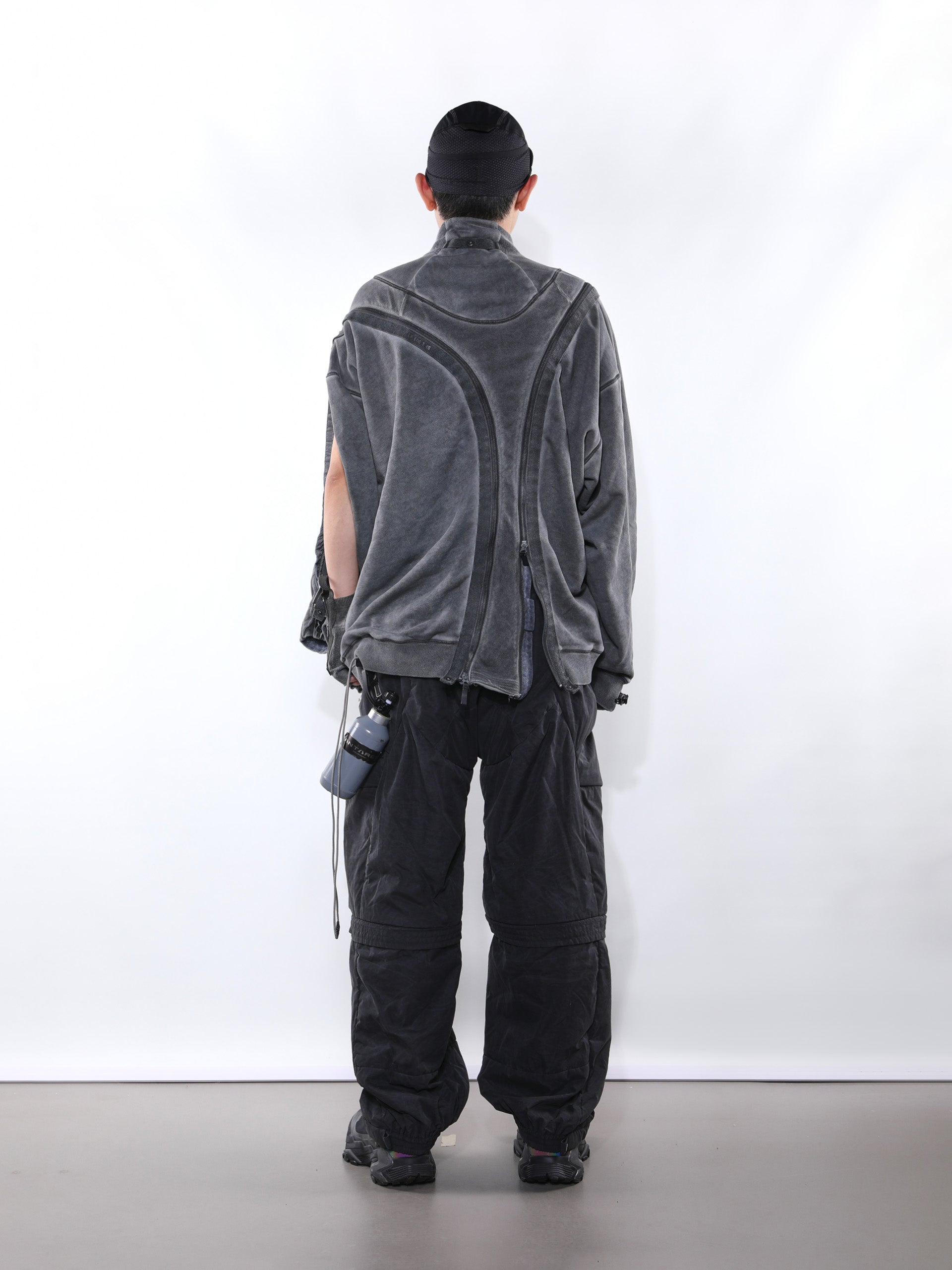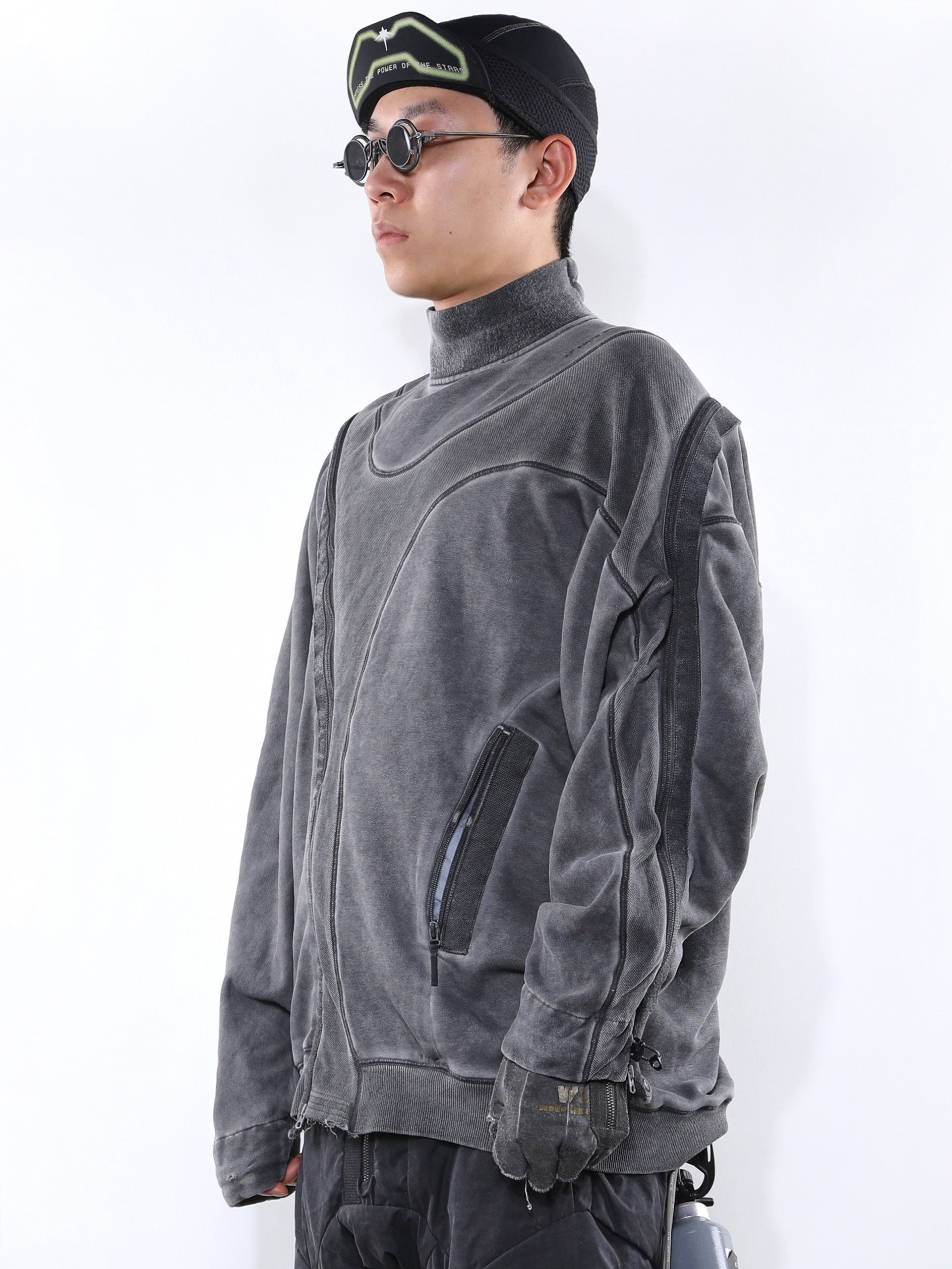 _Two long zippers wrap around the body and run along the sleeves for versatile styling.
