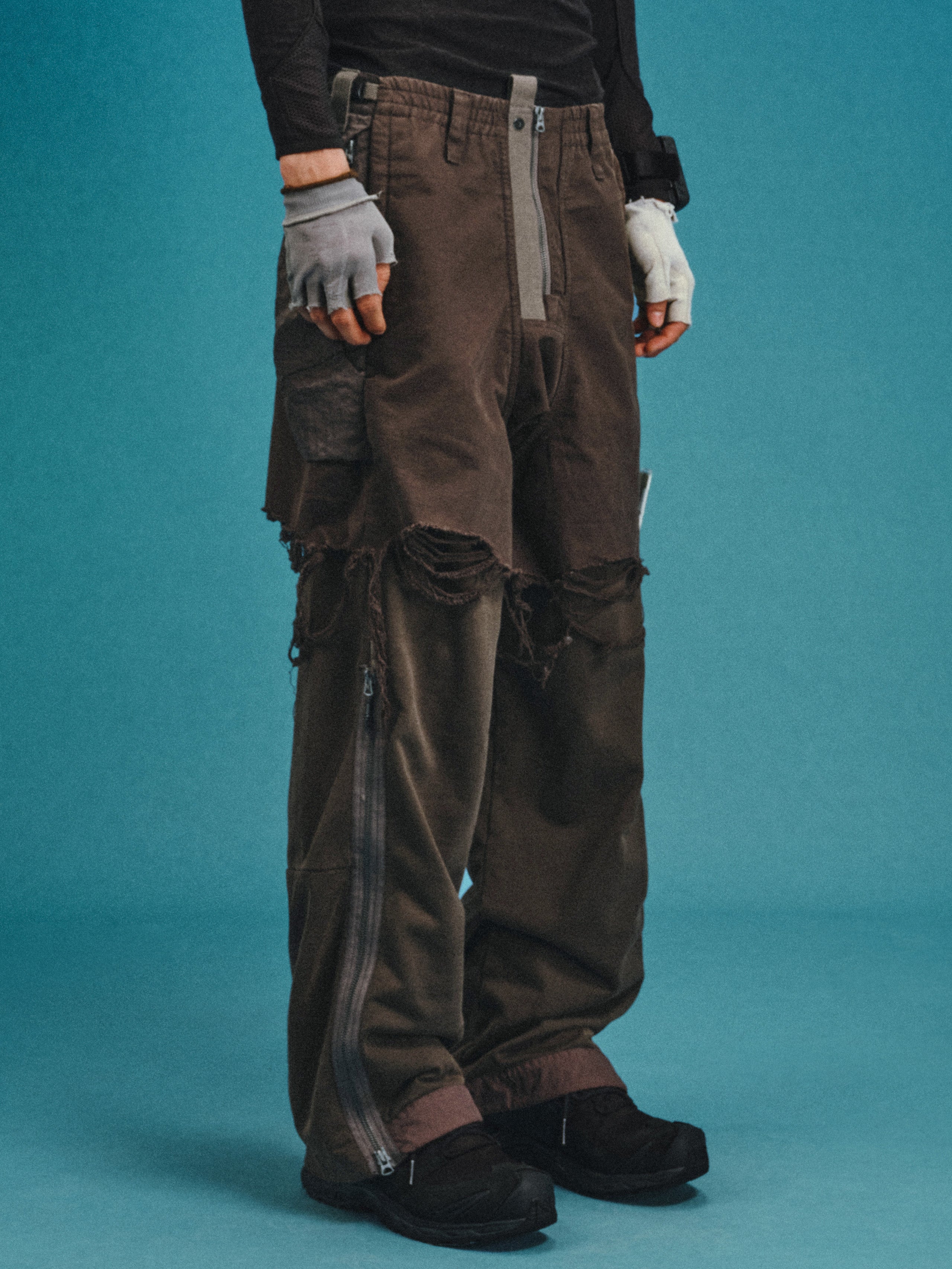 SUM / Laborer‘s Faux-Layered Distressed Sweats