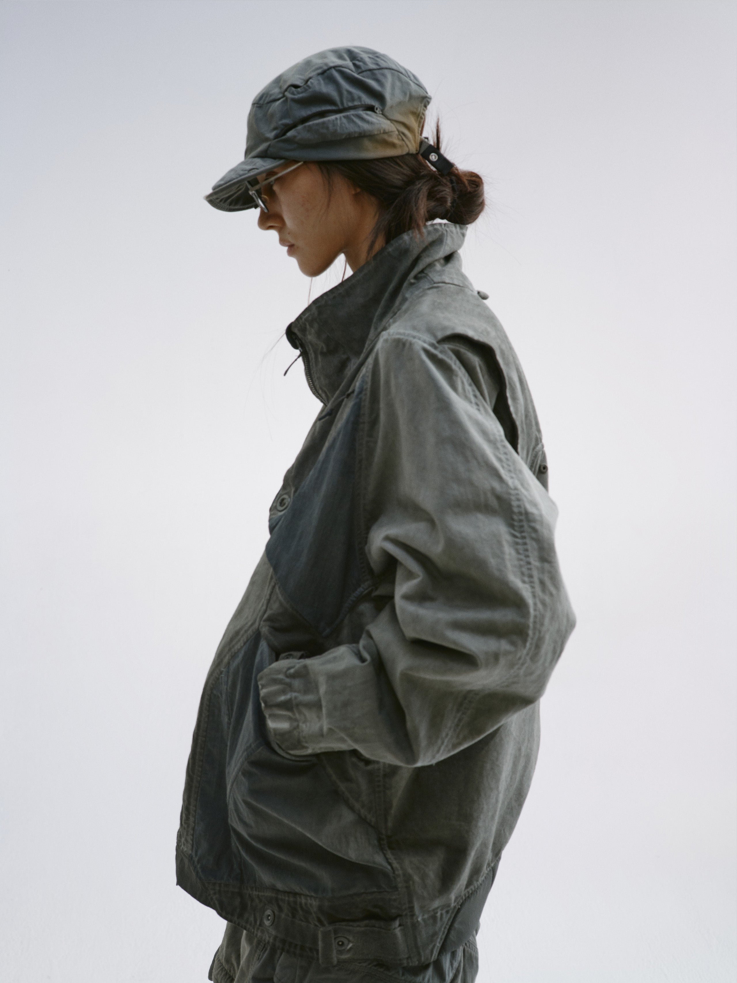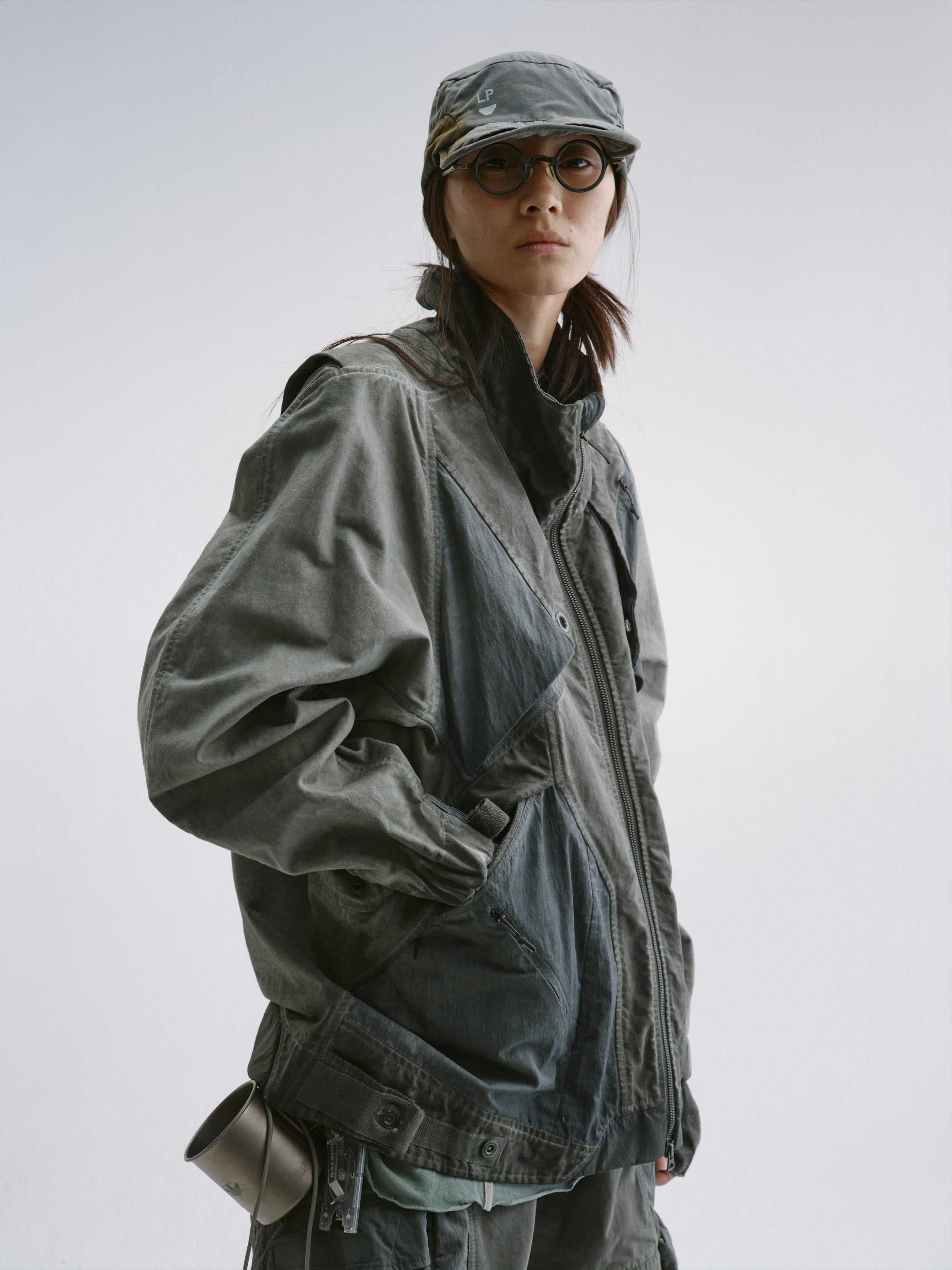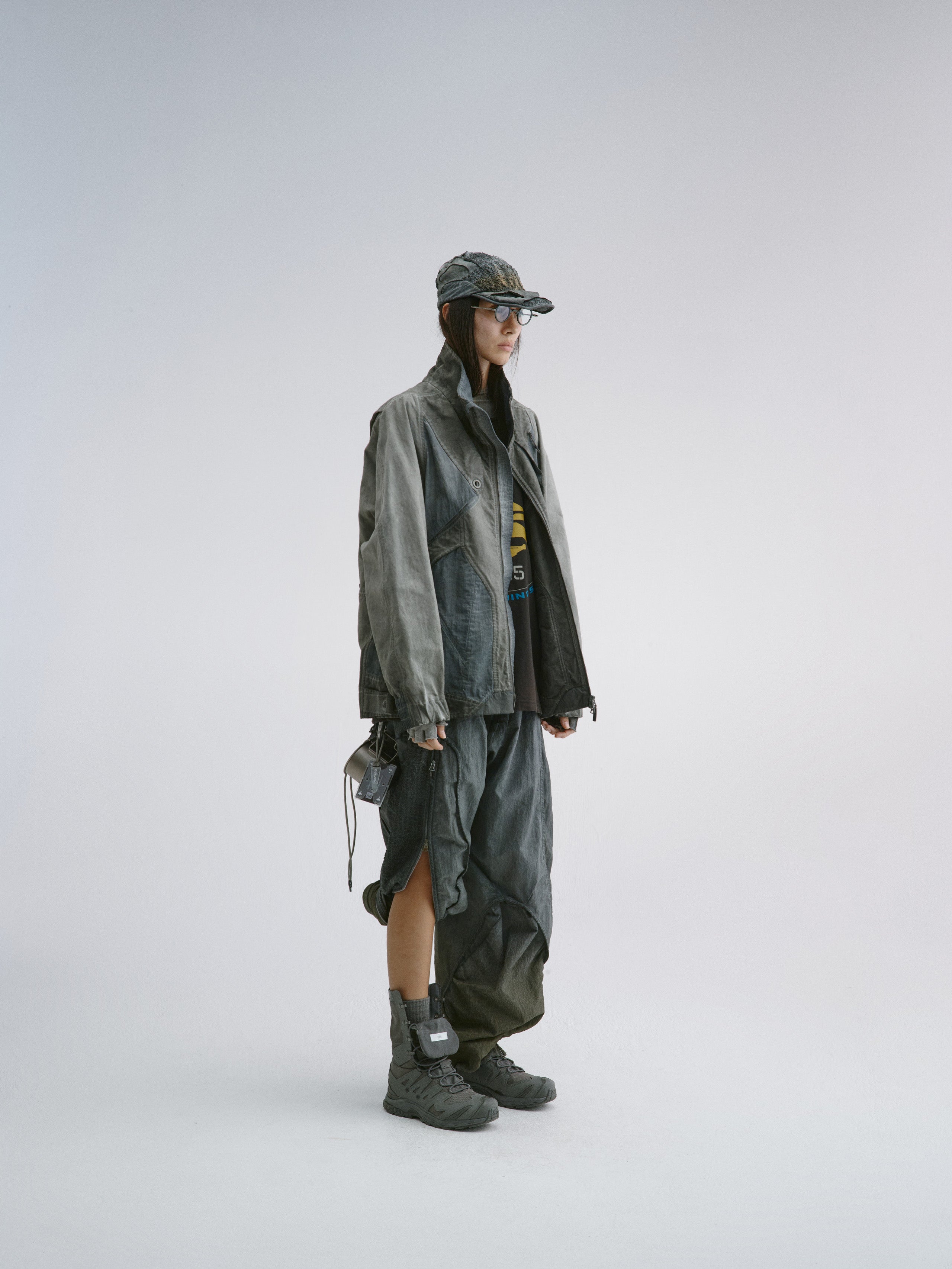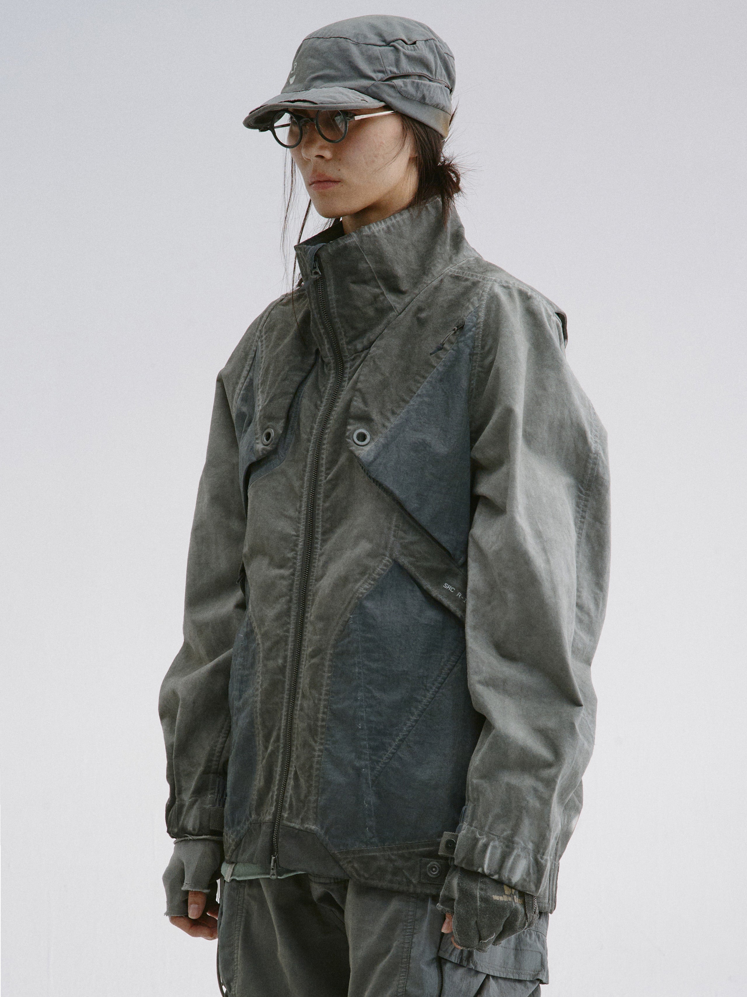 _Dual-way zipper closure on the front placket, extending up to the collar.